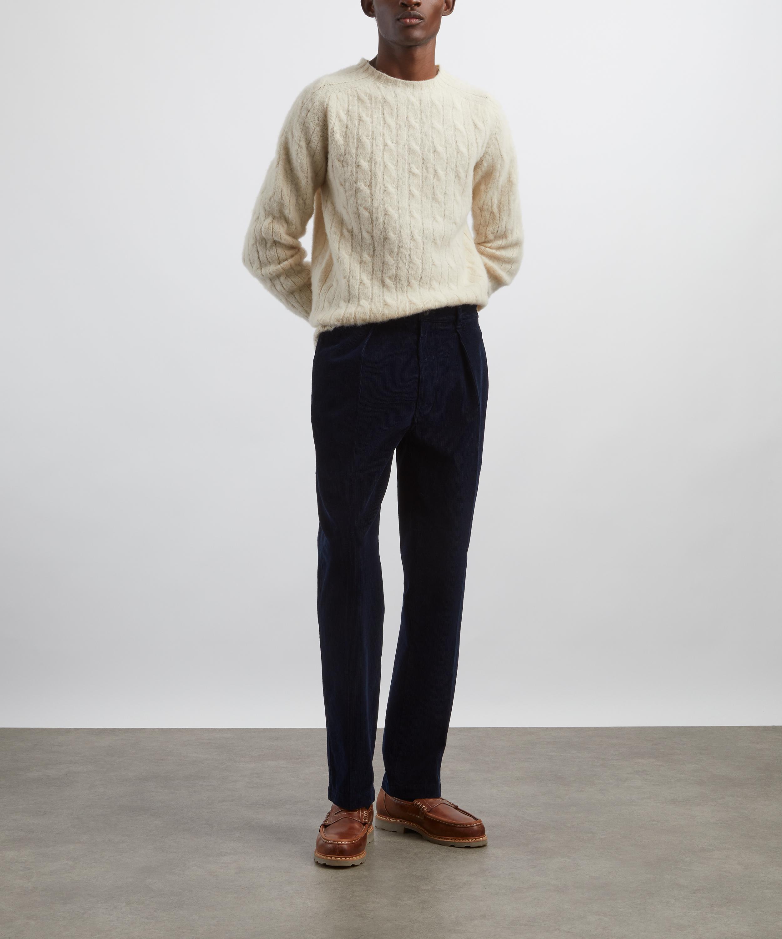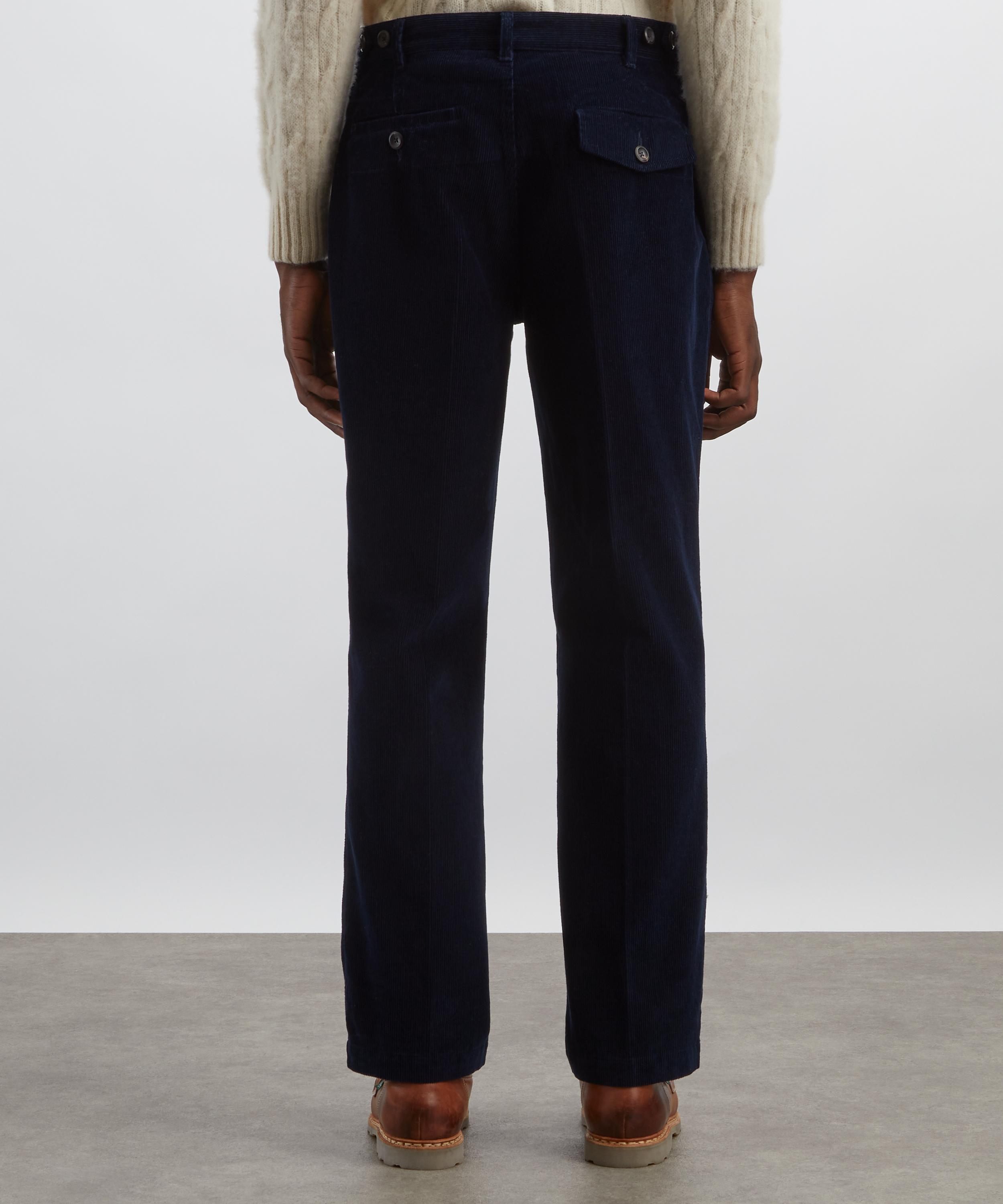 Drake’s Navy Cotton Corduroy Games Trousers present the brand’s flair for contemporary British classics.