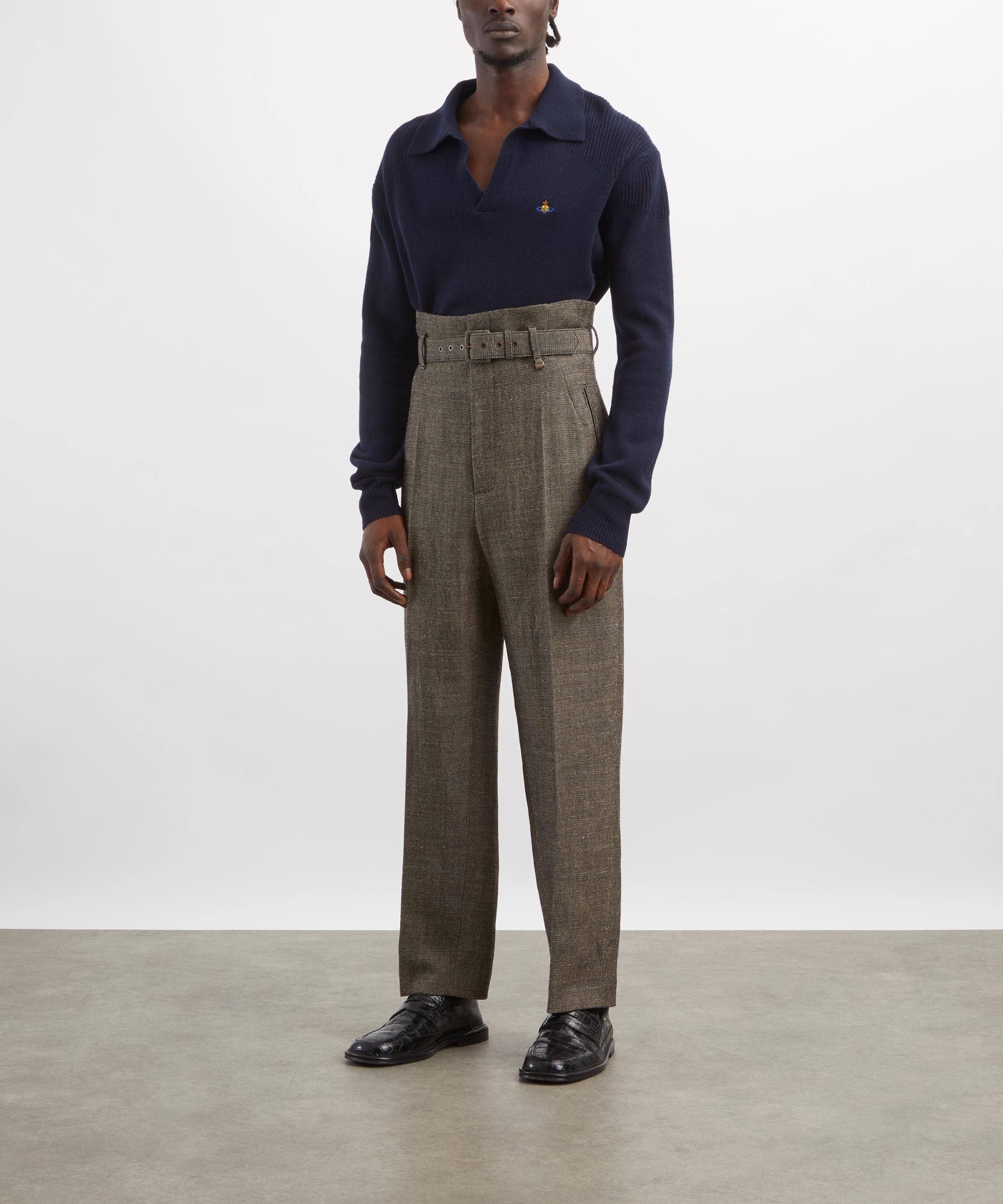 Meticulously crafted in Italy from a luxurious wool and cashmere blend, this navy polo features an open V-neckline and flat-knit collar, complemented by long sleeves with a subtle, relaxed slouch. It’s finished with an embroidered orb at the chest for a refined signature touch.