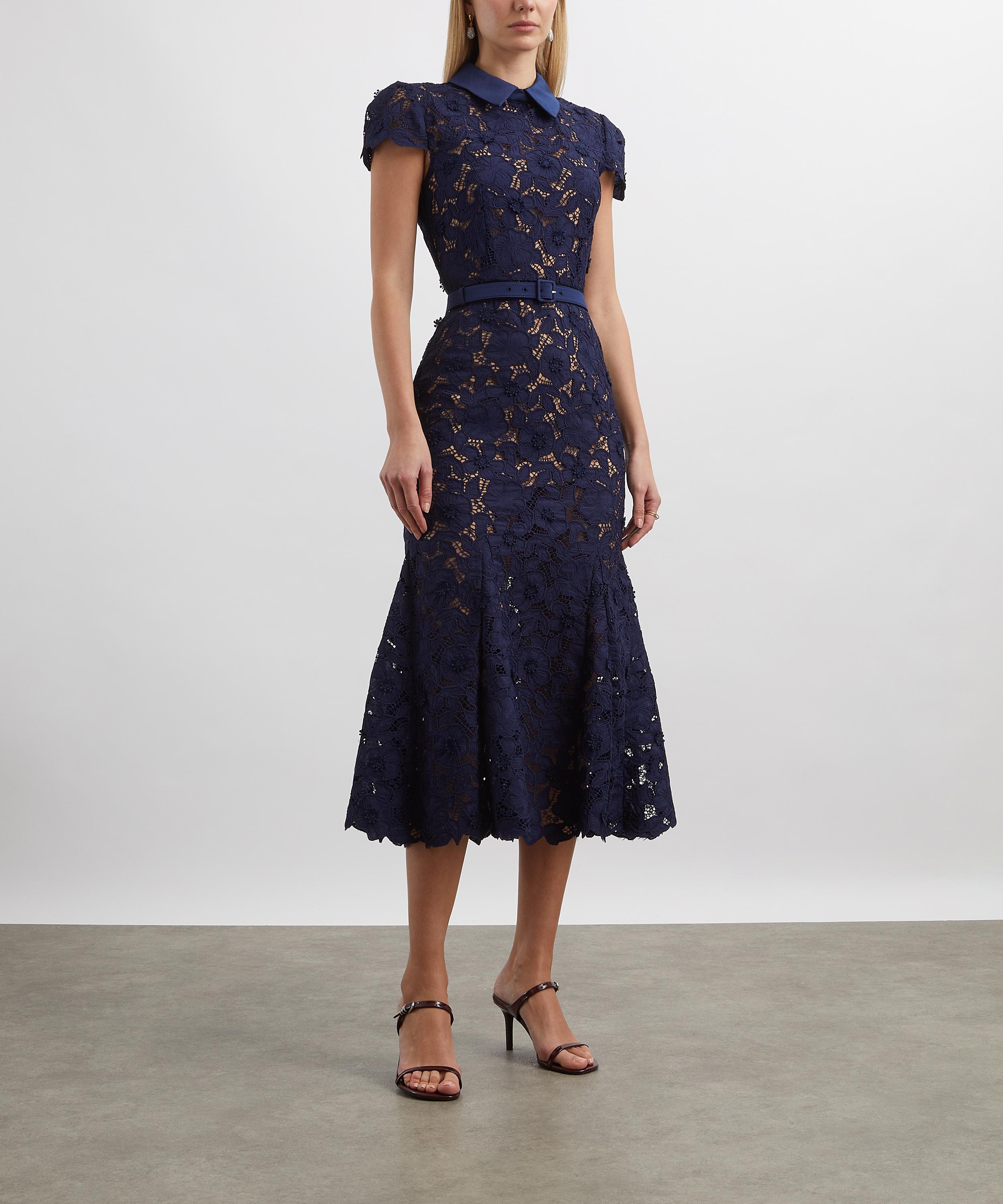 Classically feminine, the Navy Guipure Lace Midi Dress from Self-Portrait defines effortless elegance.