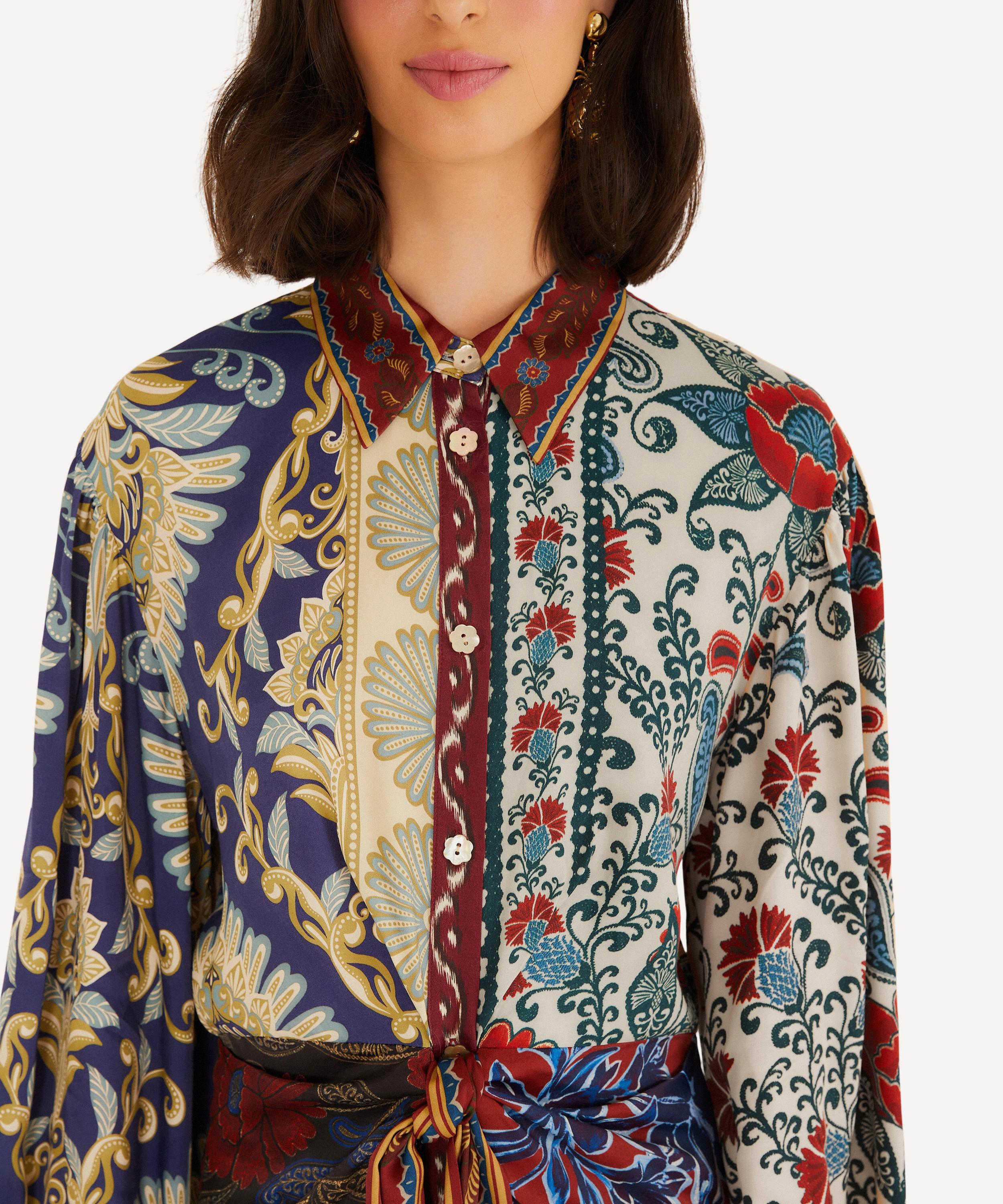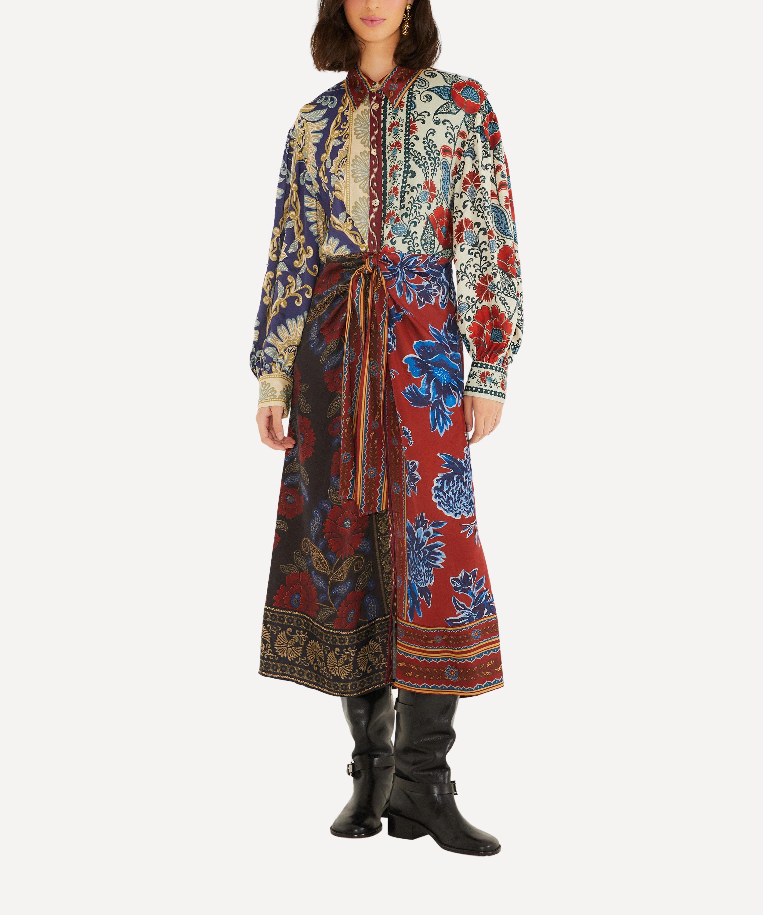 Flowing with a rich patchwork of navy, rust, and cream, this midi dress blends floral and paisley prints in an artful mix. Crafted from Lenzing™ Ecovero™ viscose, it drapes softly with a structured collar, billowing sleeves, and a self-tie waist that flatters the silhouette - bringing warmth, charm, and a touch of FARM Rio’s joyful spirit to winter days.