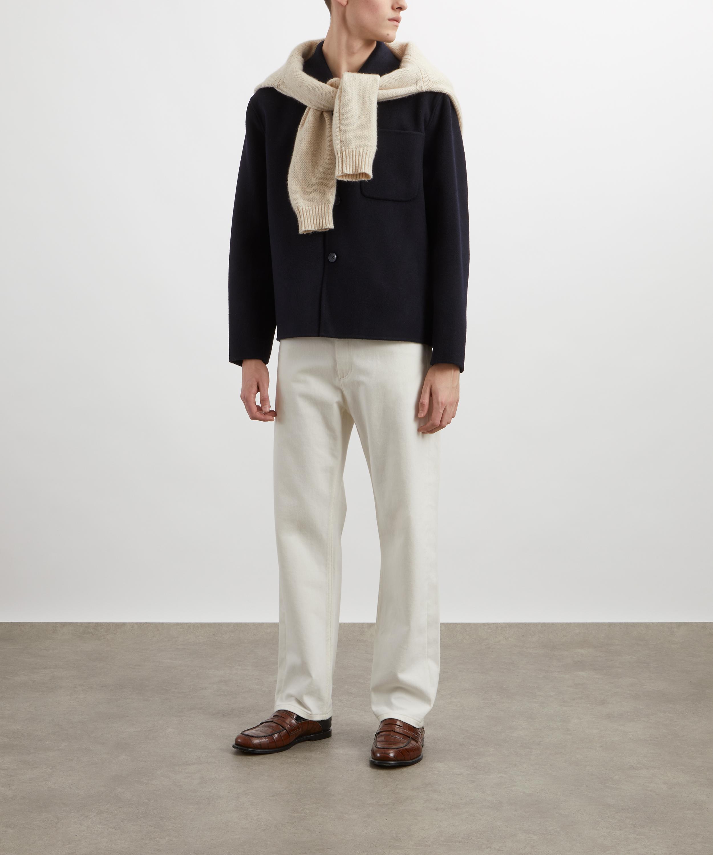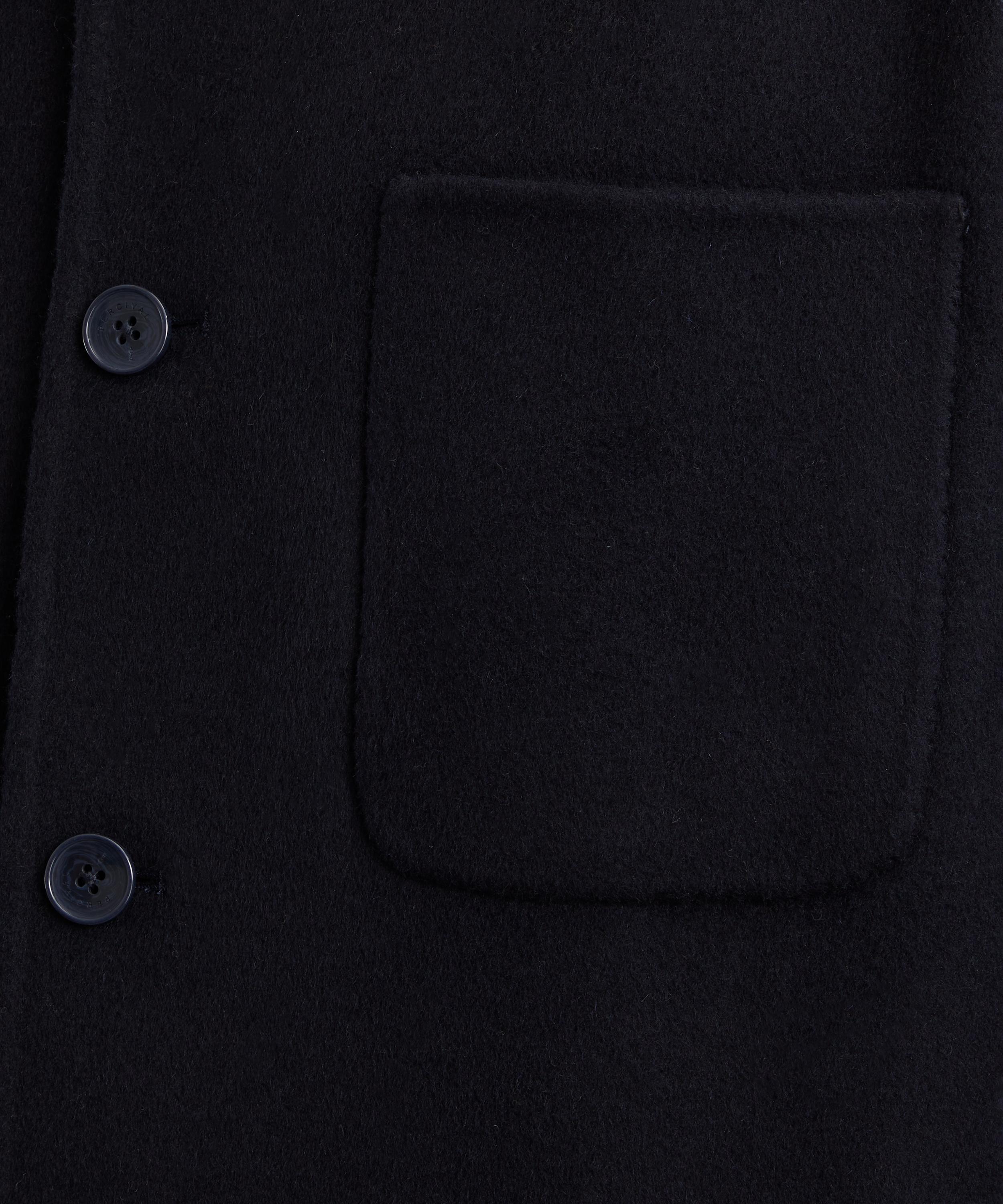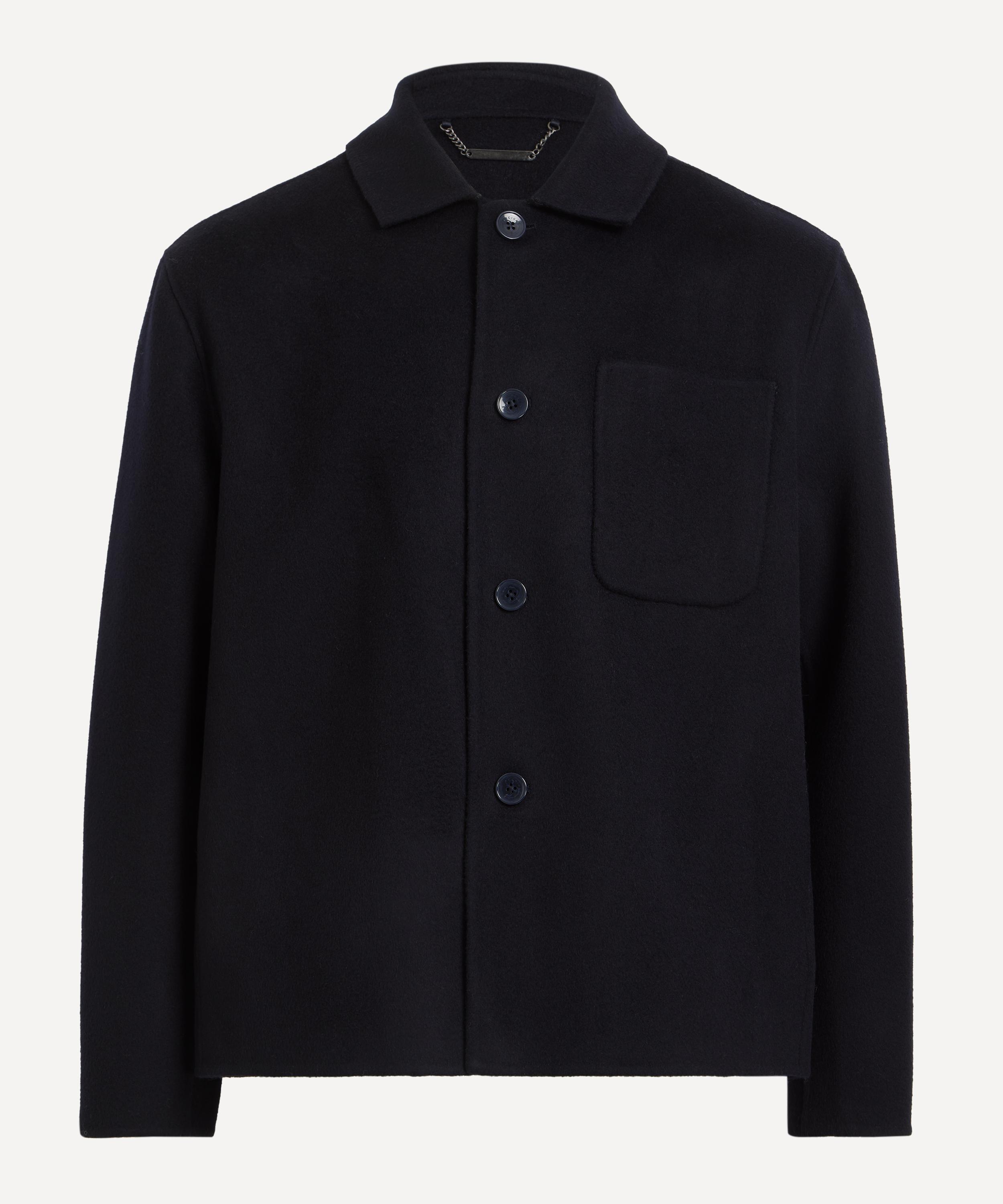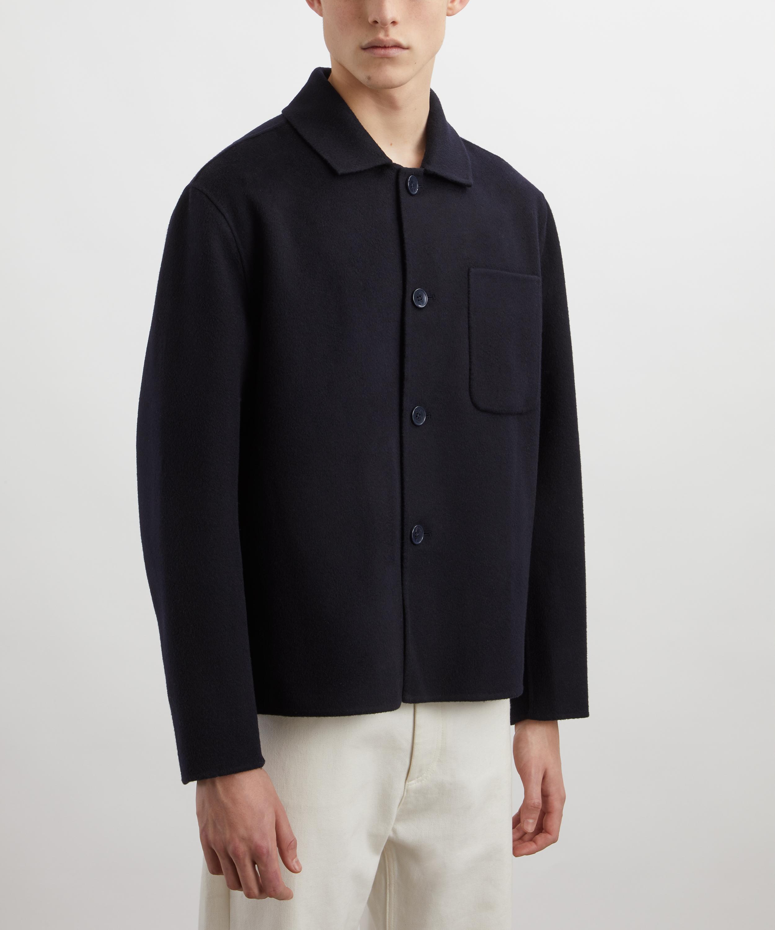 Crafted from premium wool, this navy overshirt is designed with a boxy fit. Drawing inspiration from classic workwear styles, it has a spread collar, front button fastening, and a single patch pocket on the chest for a truly utilitarian finish.