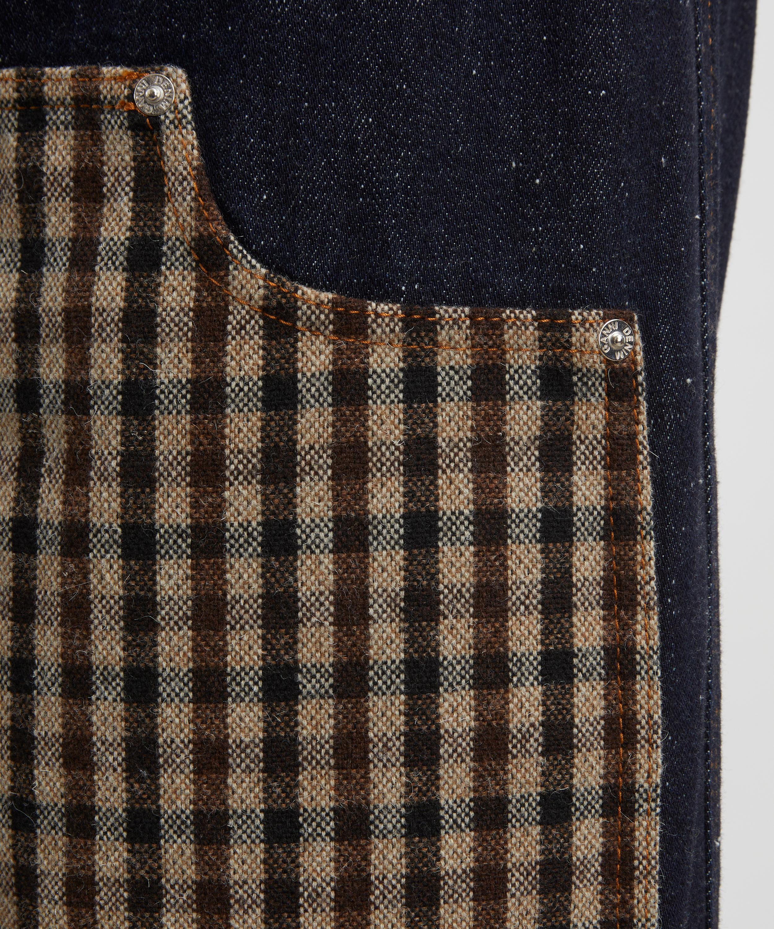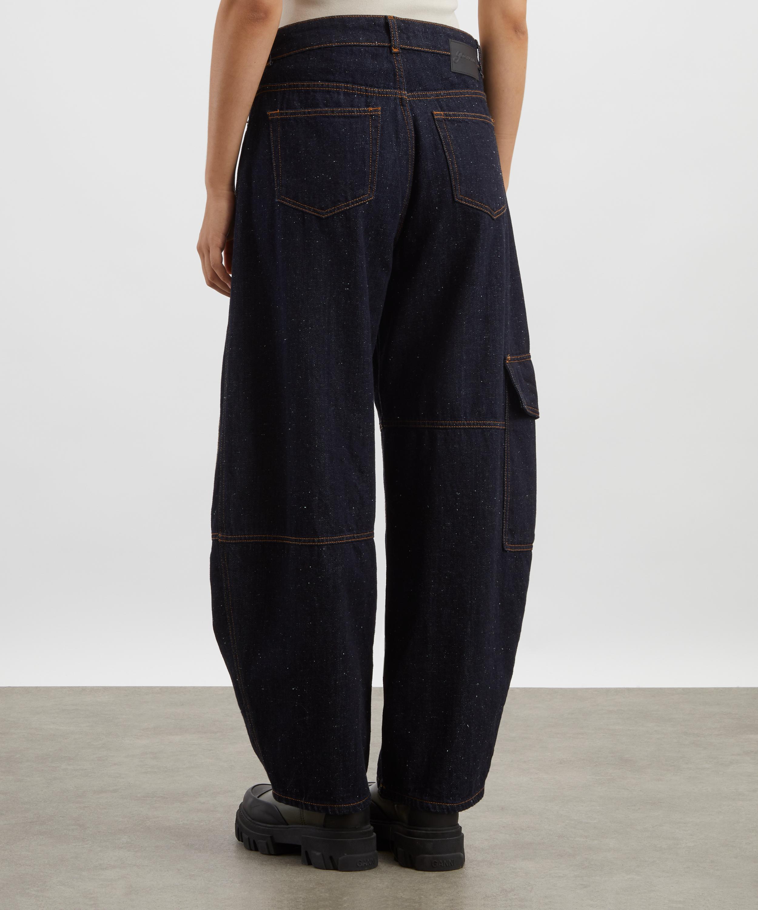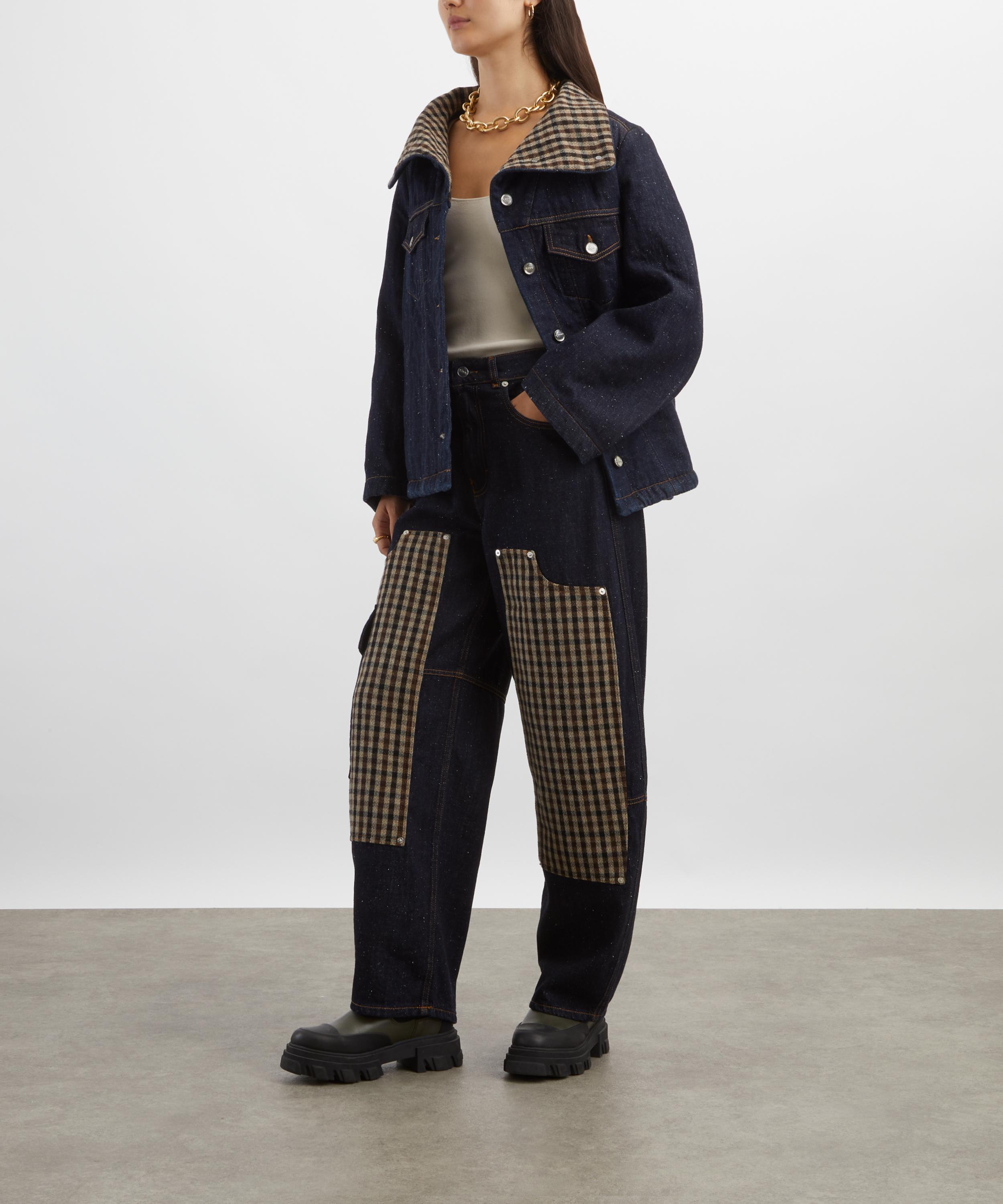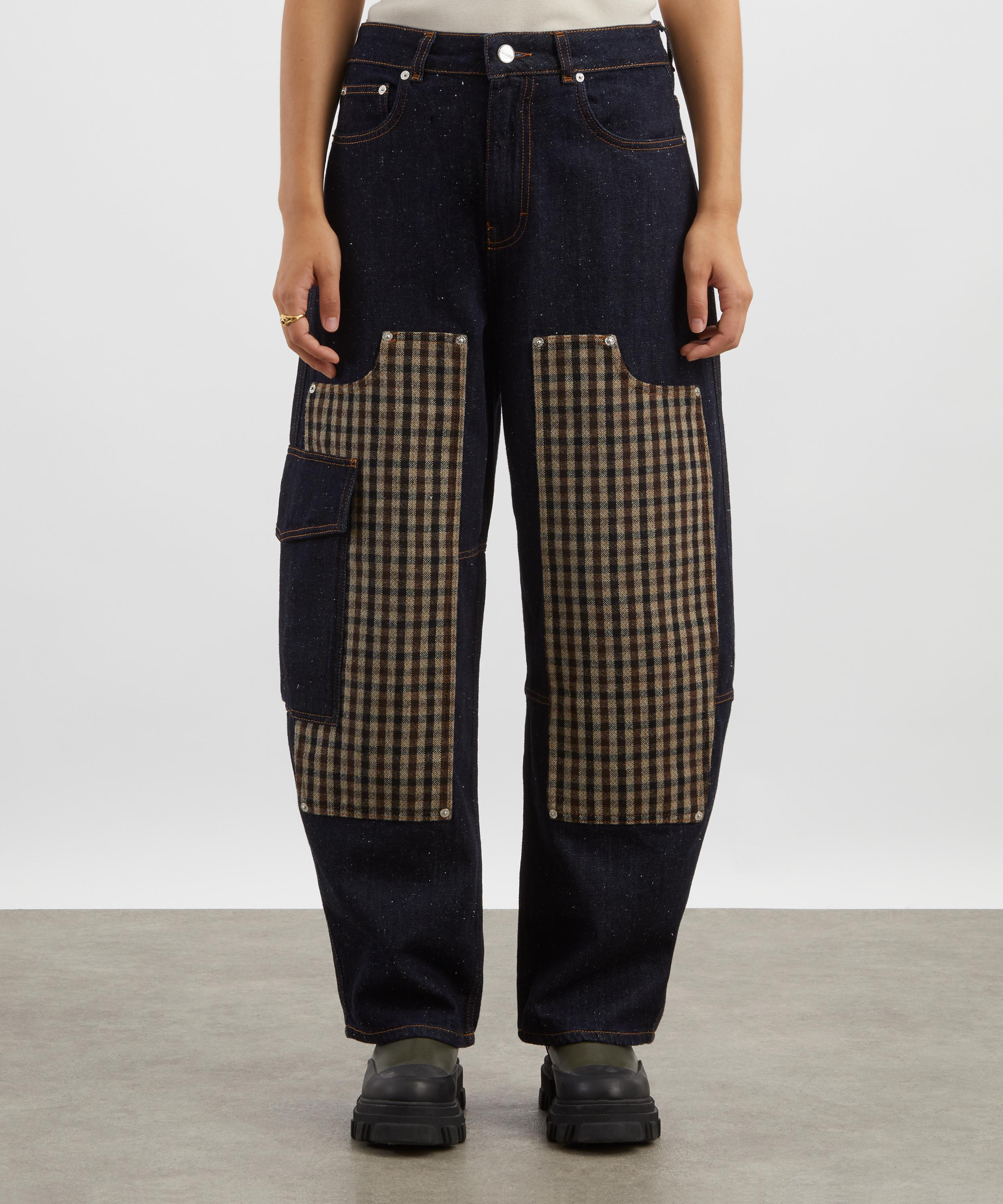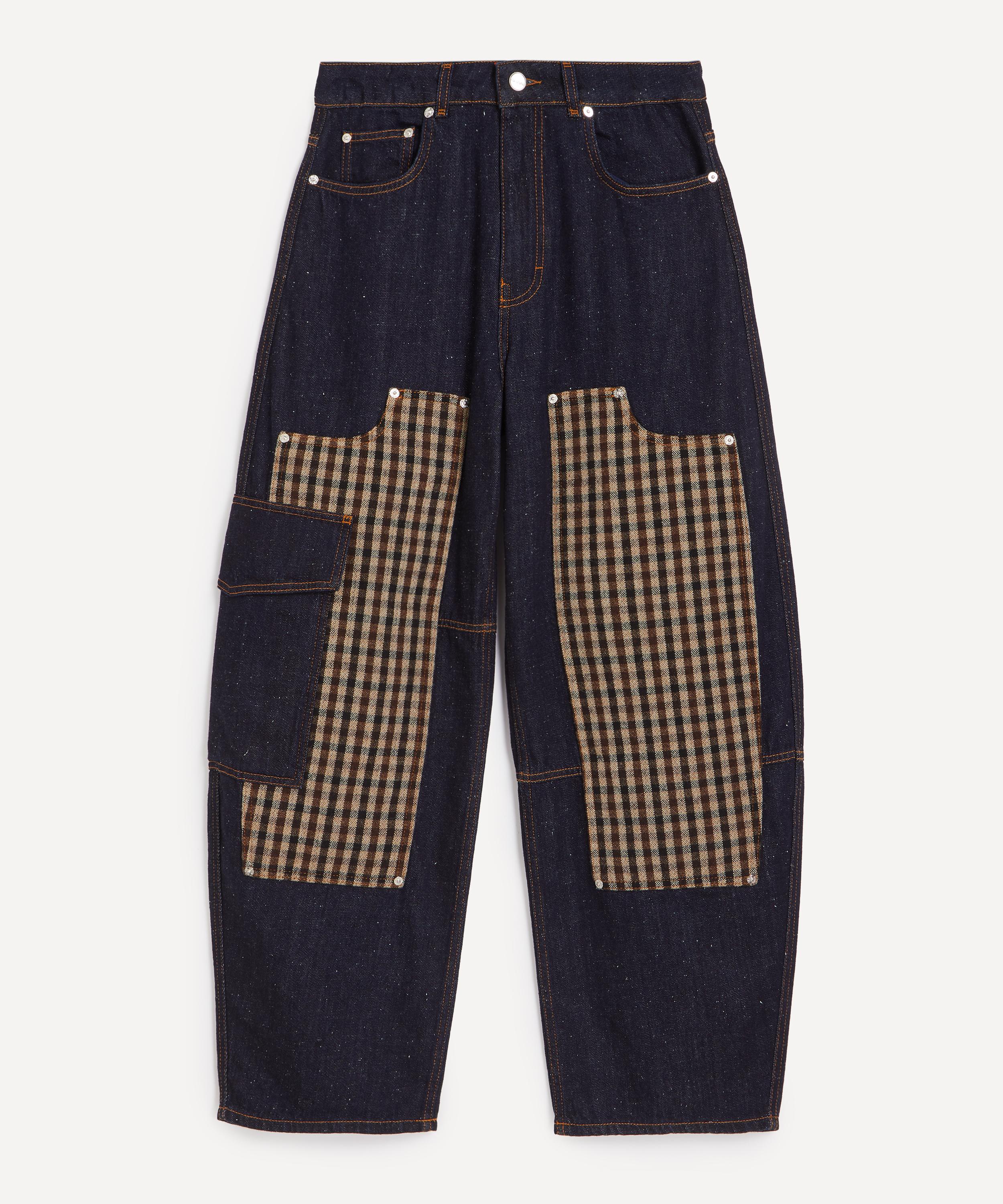 Crafted from dark blue stone-washed denim, these relaxed carpenter-style jeans offer a fresh take on utilitarian classics with contrast check-print panels. Finished with cargo pockets and a GANNI logo patch at the back, they strike the perfect balance between practical and stylish.