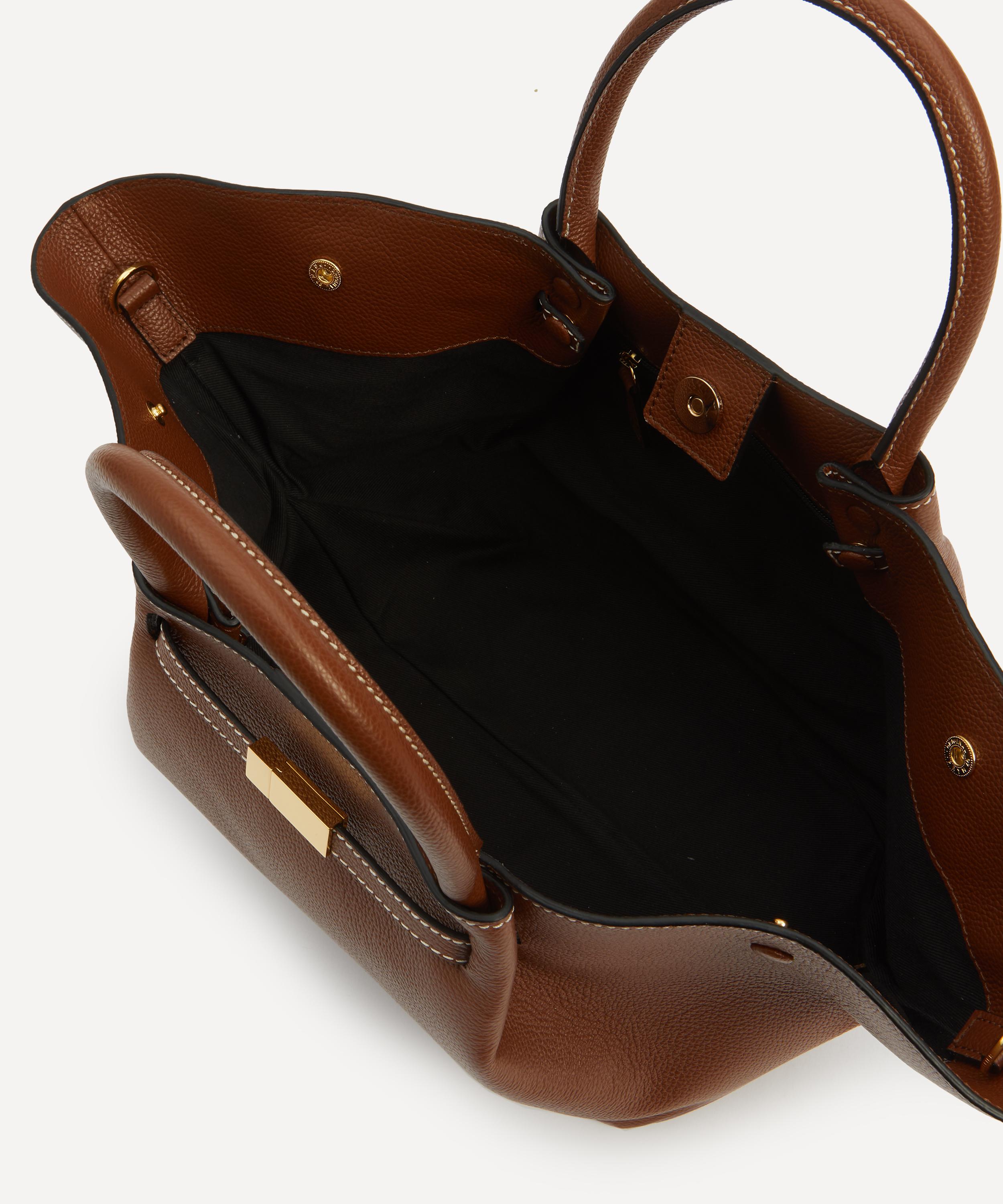 Handcrafted with integrity from soft grained leather by skilful artisans in Southern Spain, the Midi New York is inspired by the energy, architecture and people of the city. Showcasing a modern yet timeless trapeze silhouette with its gold belted front detail and triangular top folds, its double tubular top-handles sit comfortably in the crook of your elbow. The perfect size to carry all your essentials, its roomy interior includes an internal magnet closure to keep the interior safely closed off.