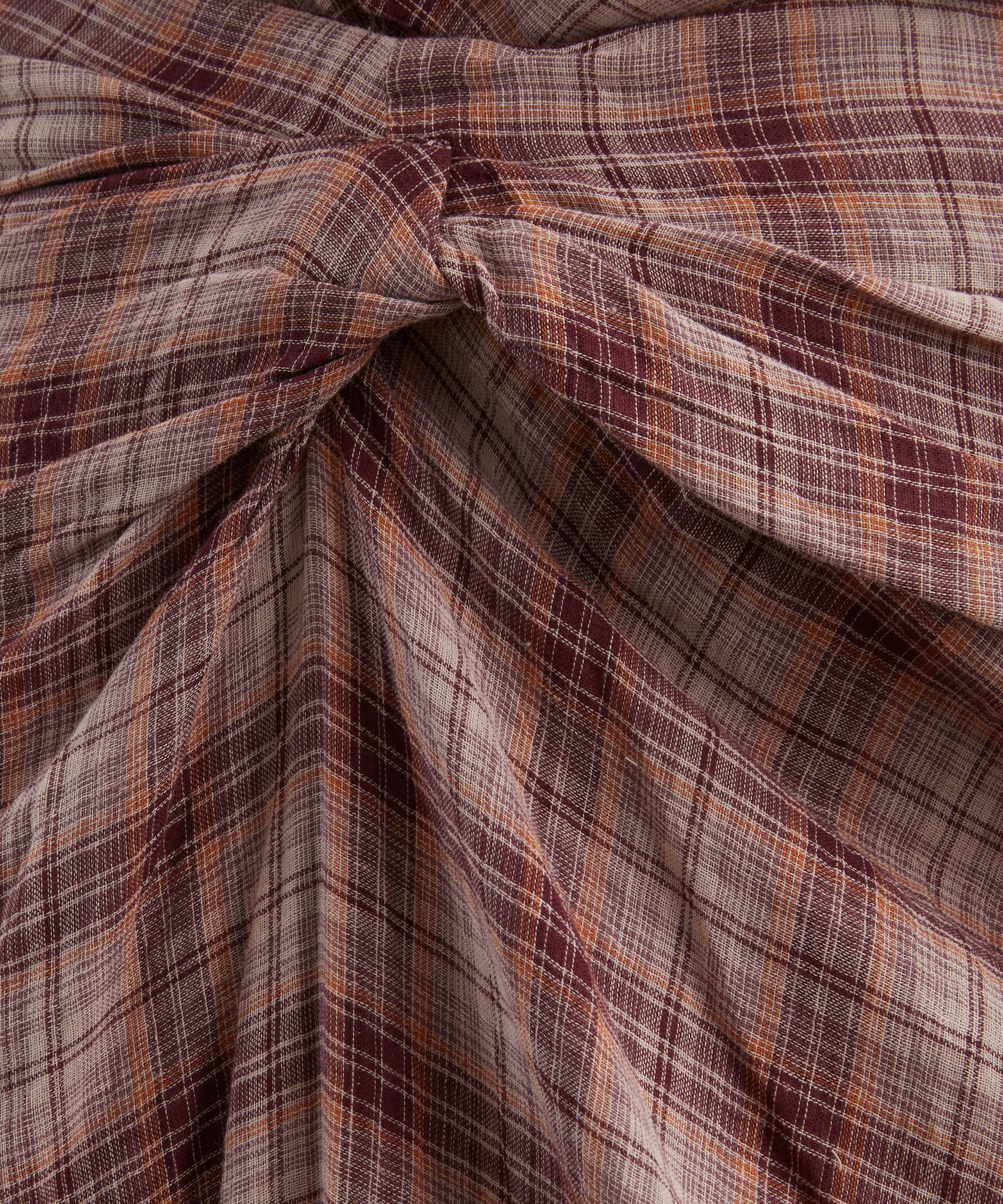 Crafted from checkered cotton, this midi skirt features a flowing A-line silhouette with gathered front draping for added volume and shape.