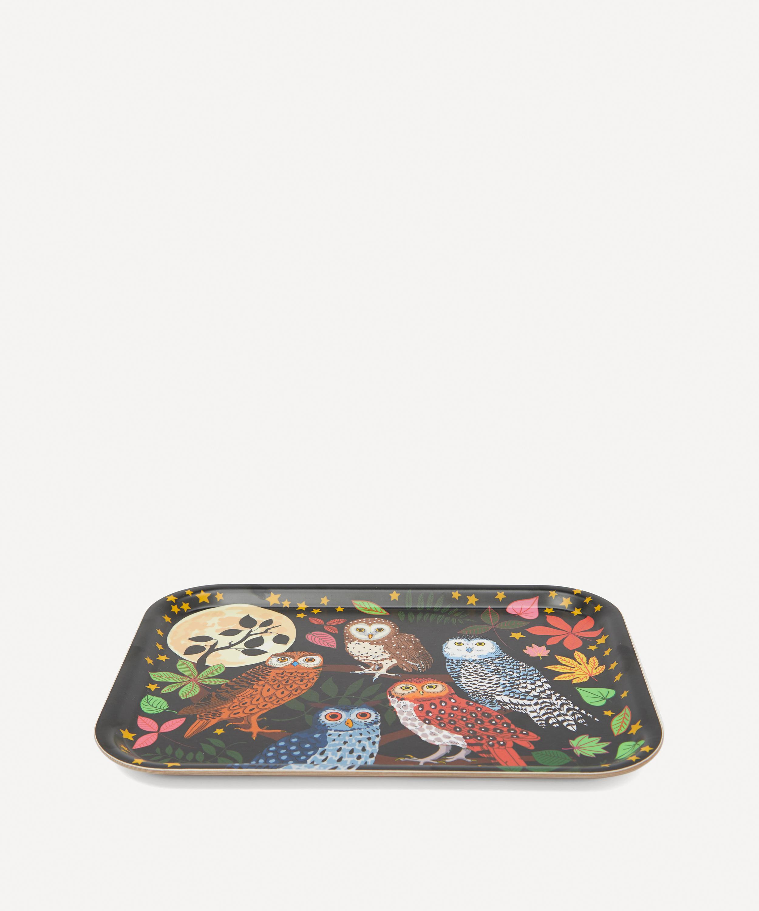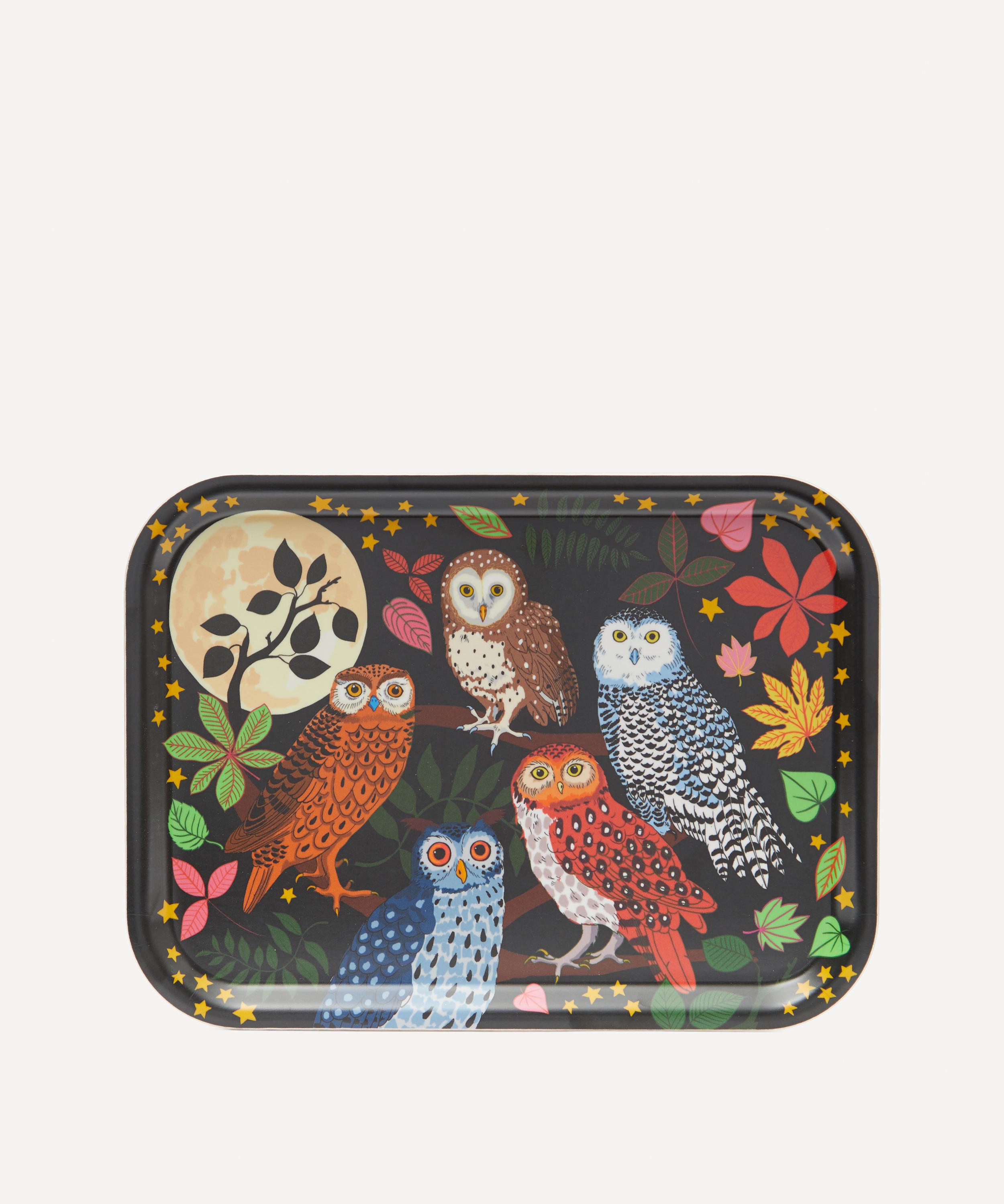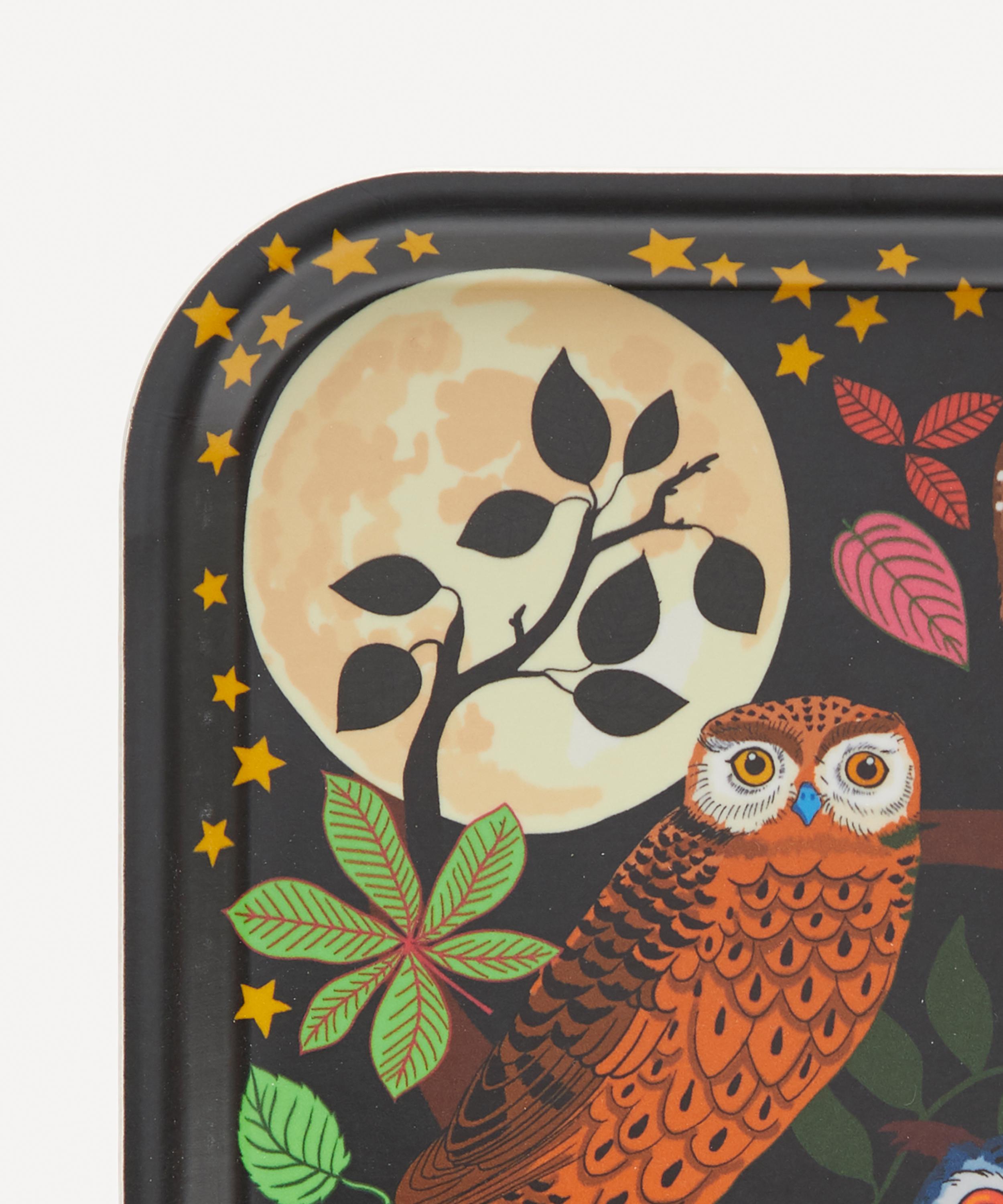 Known for her imaginative designs, Karen Mabon brings her artful illustrations to this rectangular tray. Crafted from durable birch laminate, it features a group of night owls in a beautifully whimsical scene. Perfect for children’s parties, or for those with a fondness for curious creatures and earthly delights, mix and match with other pieces from the collection for a light-hearted aesthetic.