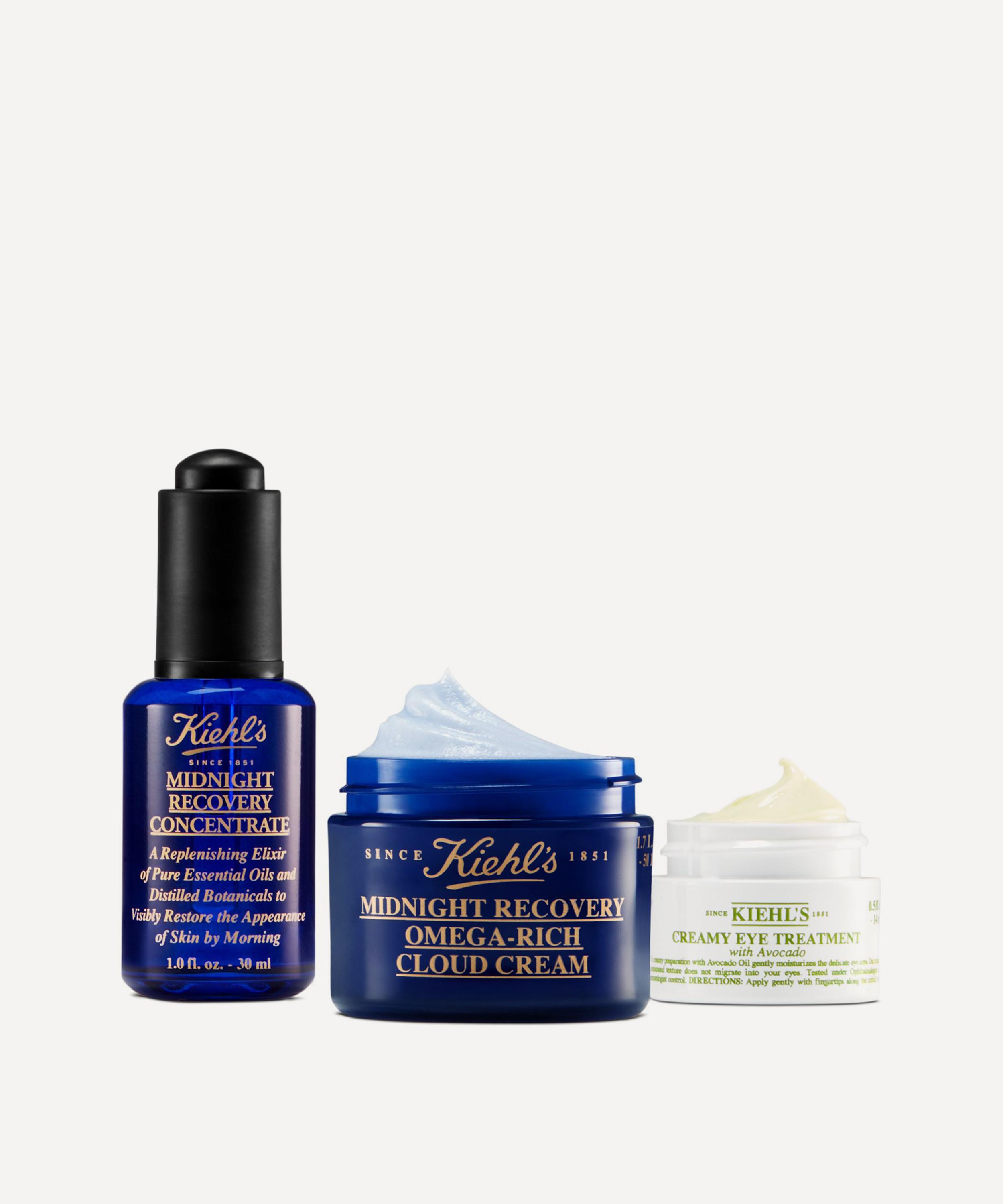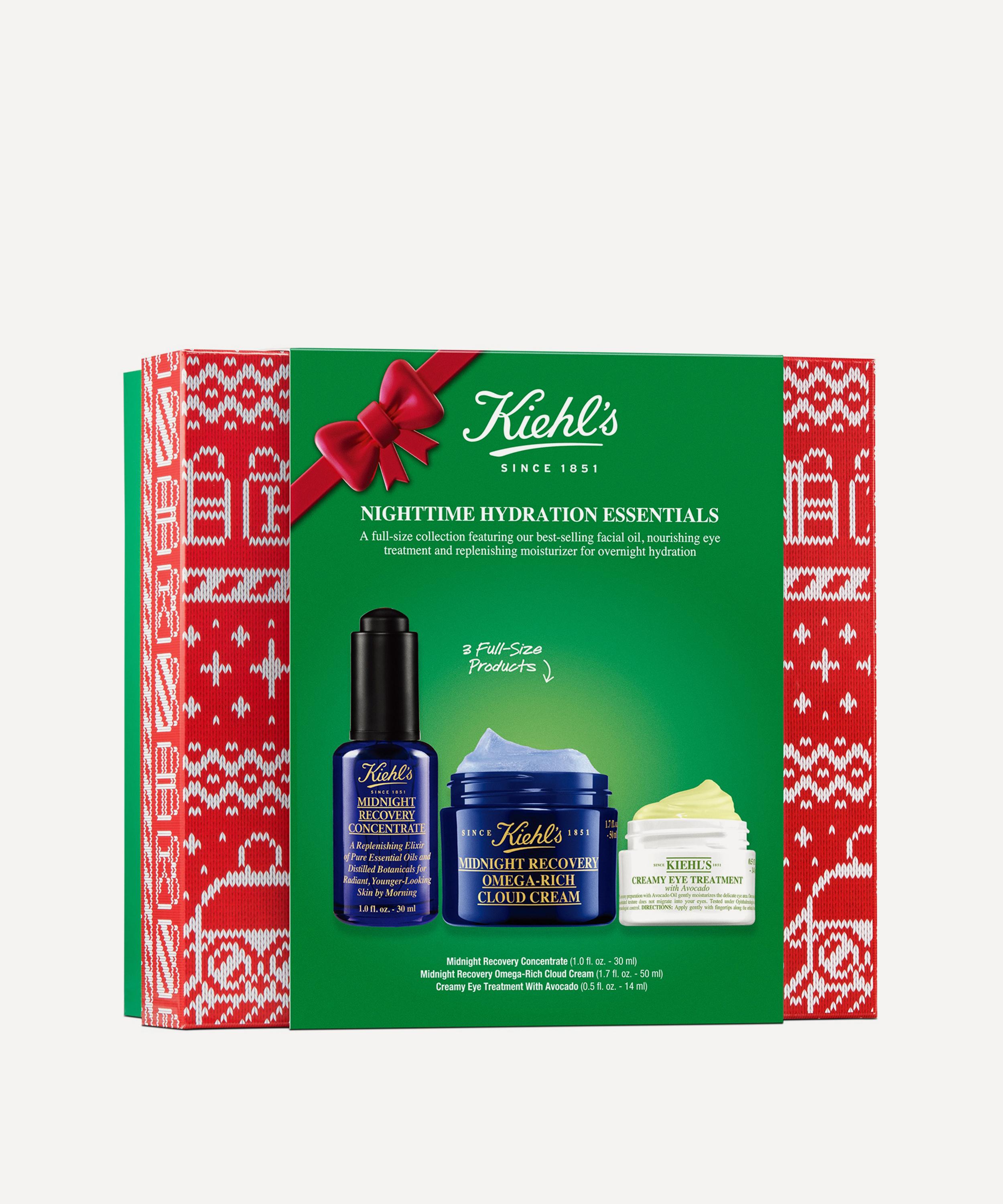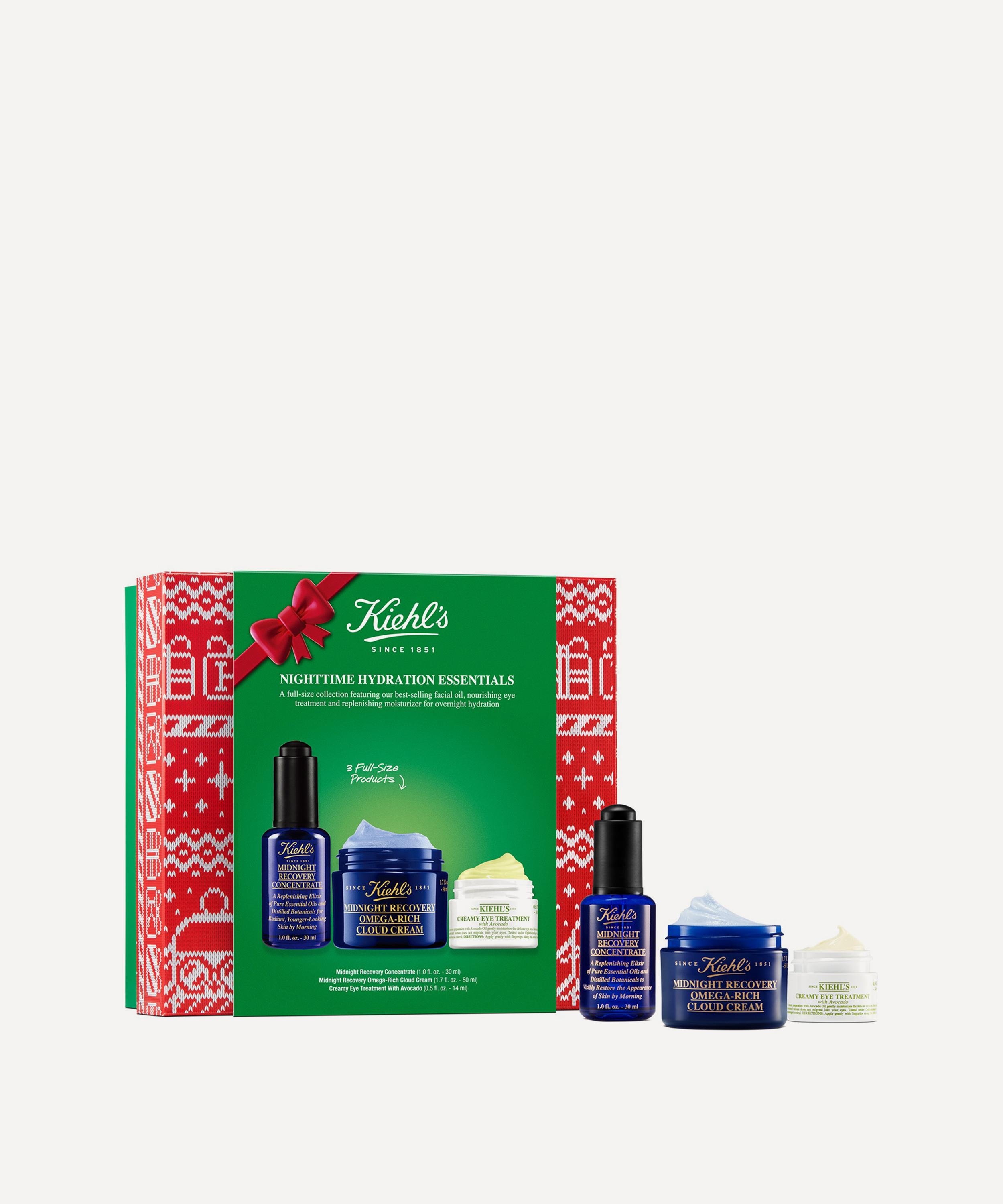 Transform your evening skin care regime with Kiehl's Night-Time Hydration Essentials set, featuring the brand’s bestselling Midnight Recovery Concentrate.