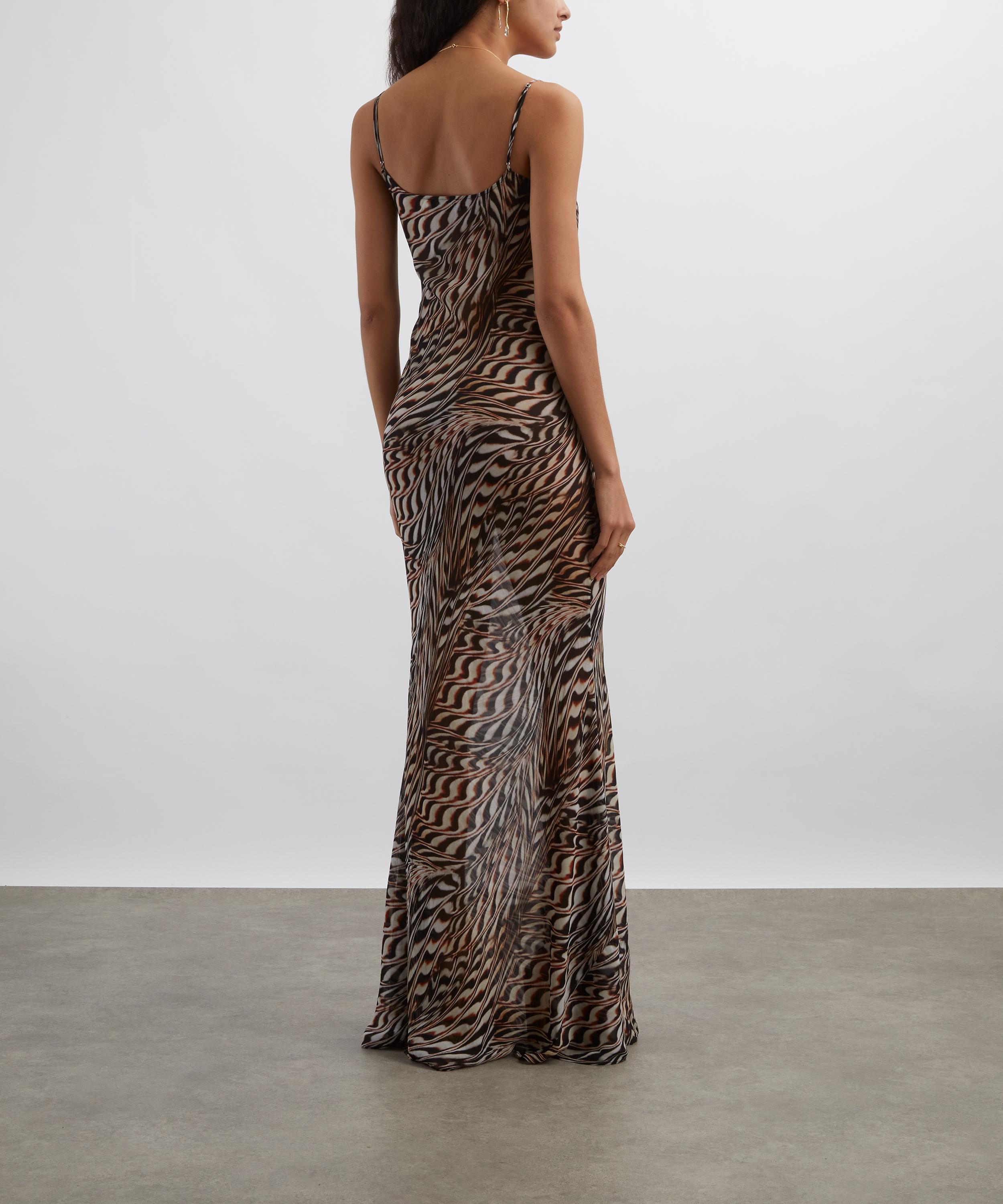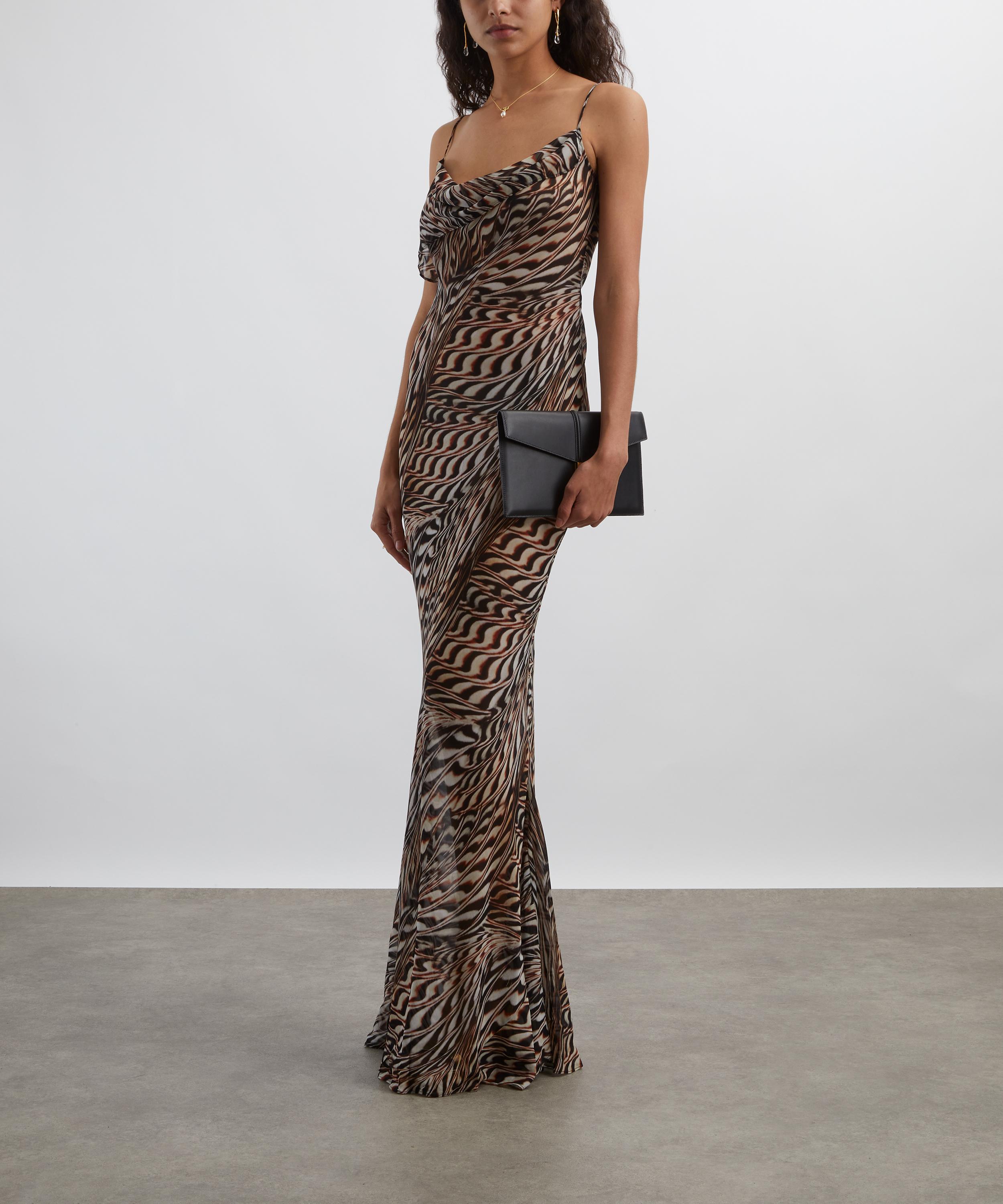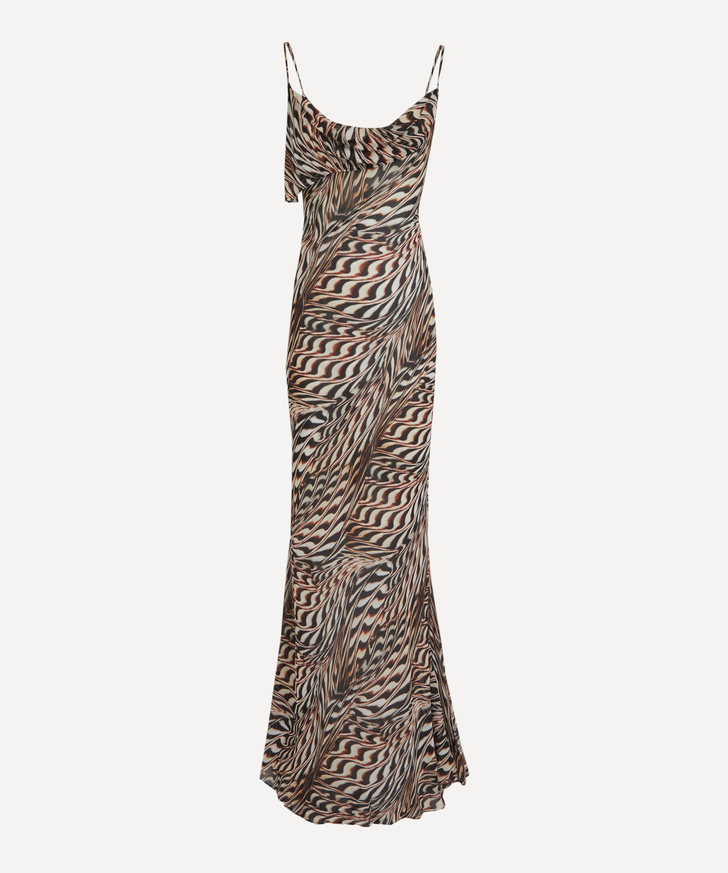 Crafted from silky, semi-sheer viscose georgette and emblazoned with an abstract shell-inspired print, this slinky maxi dress exudes sophistication with its figure-skimming sheath silhouette and cowl neckline.