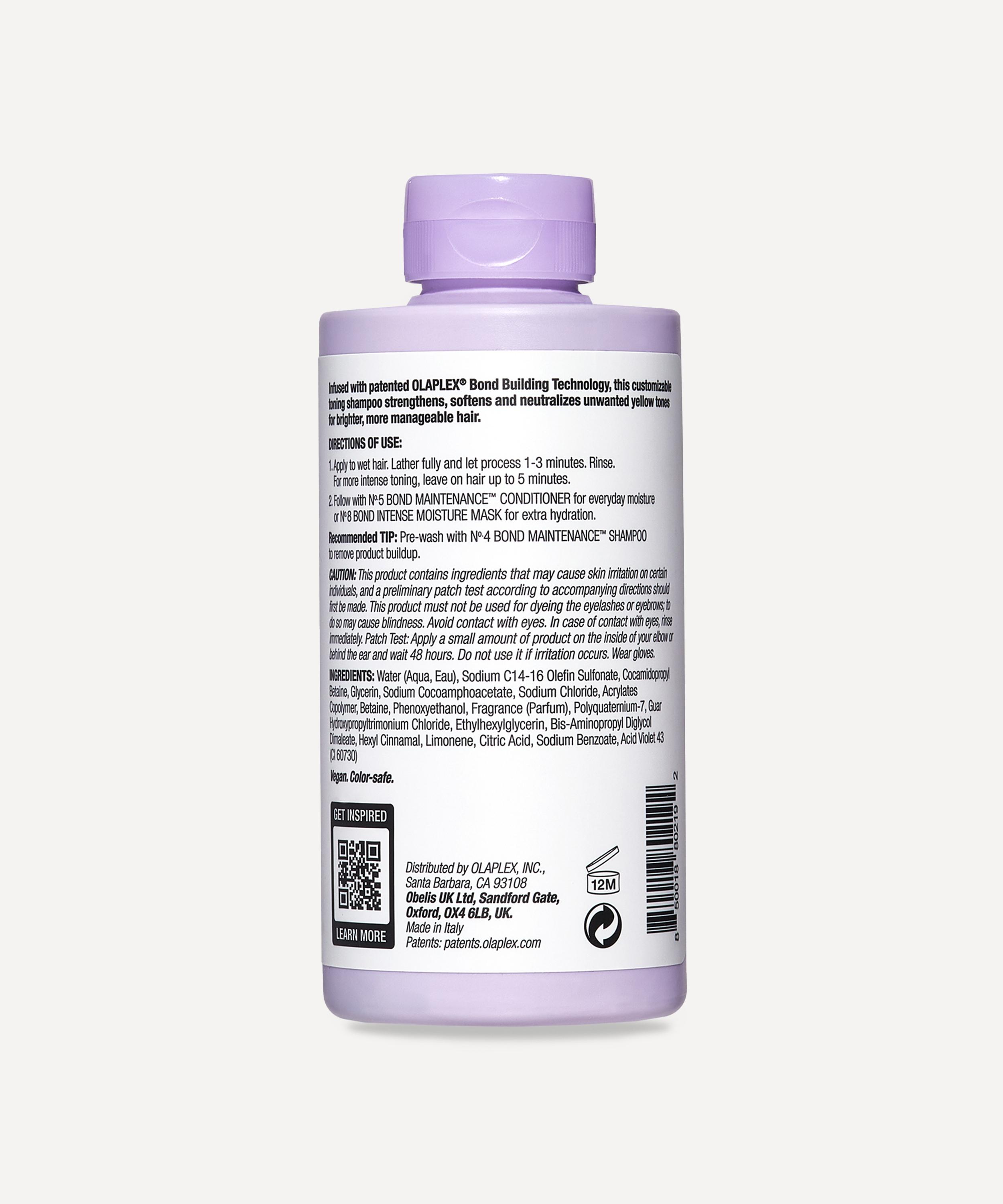 OLAPLEX is the original bond builder, ingeniously built on patented active chemistry that works on a molecular level to repair damaged and broken bonds. for all blonde, lightened, and grey tresses, this powerhouse shampoo creates a rich, sulphate-free lather to effectively neutralise brassiness and achieve your brightest blonde after just one use. Formulated to cleanse, tone and repair – use two to three times a week to weave dry, brittle strands into soft, shiny, resilient locks.