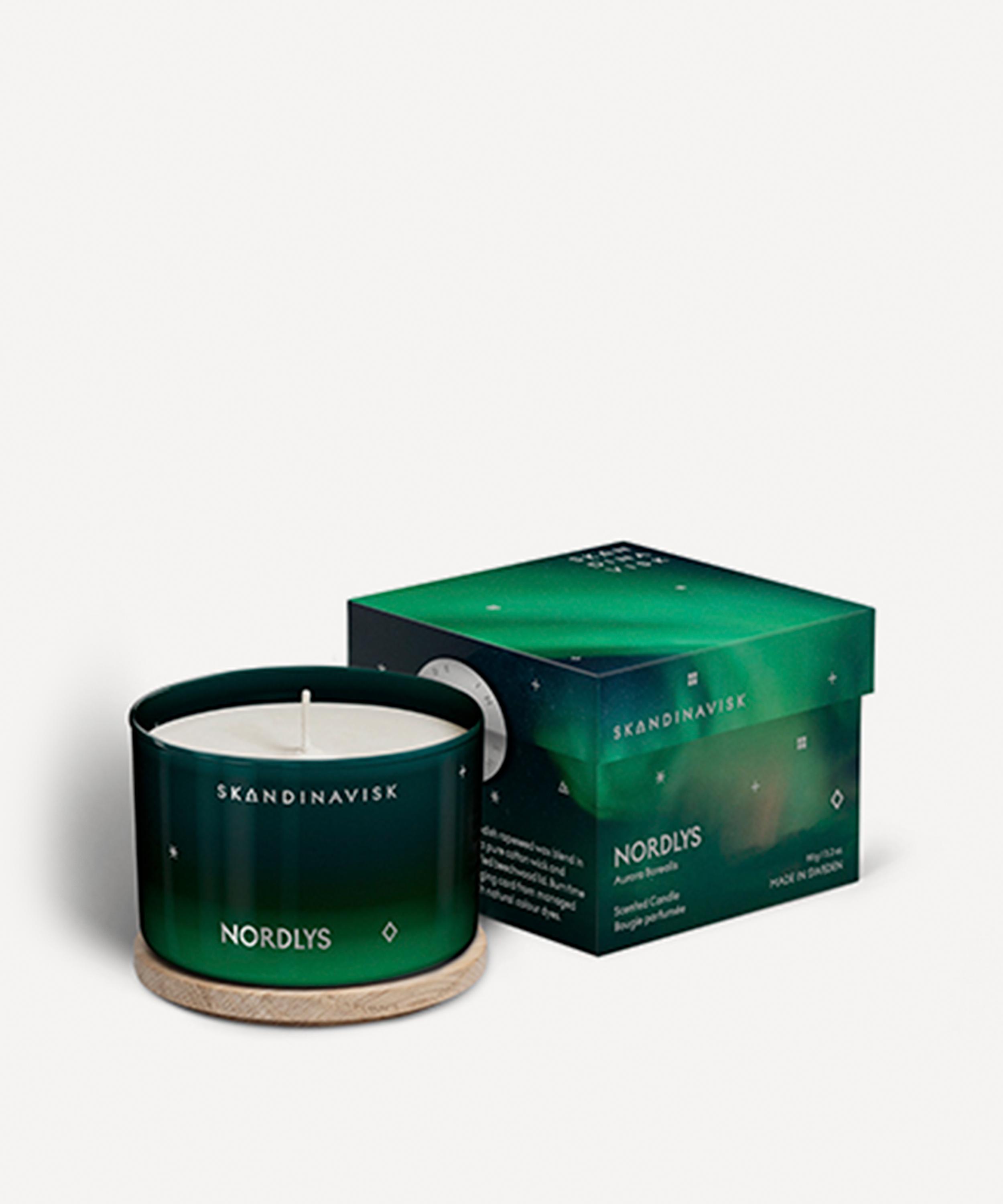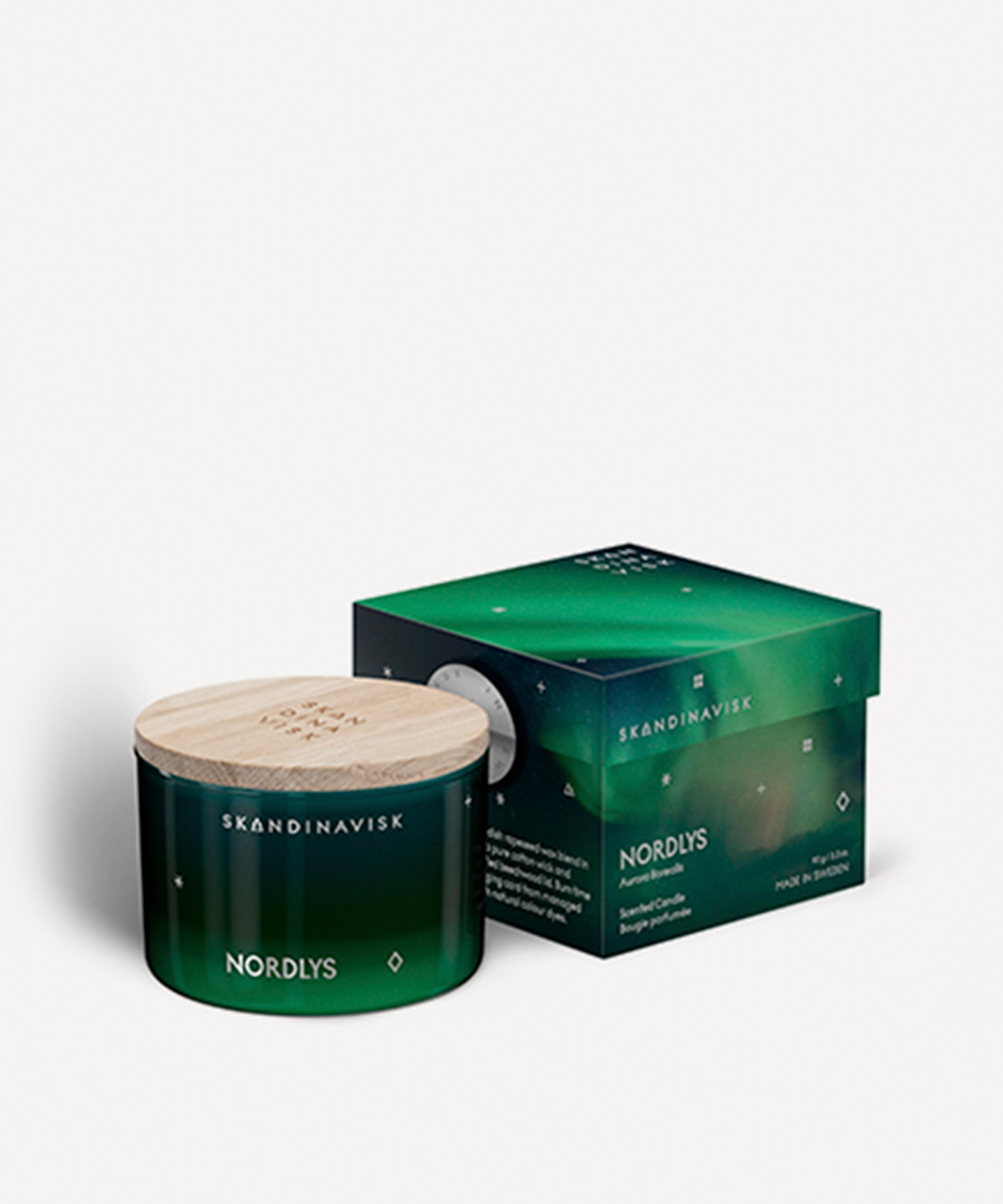Inspired by the otherworldly beauty of the Northern Lights, Skandinavisk's NORDLYS Scented Candle delivers an innovative, unfamiliar fragrance that evokes Arctic intensity and hypnotising celestial colours.