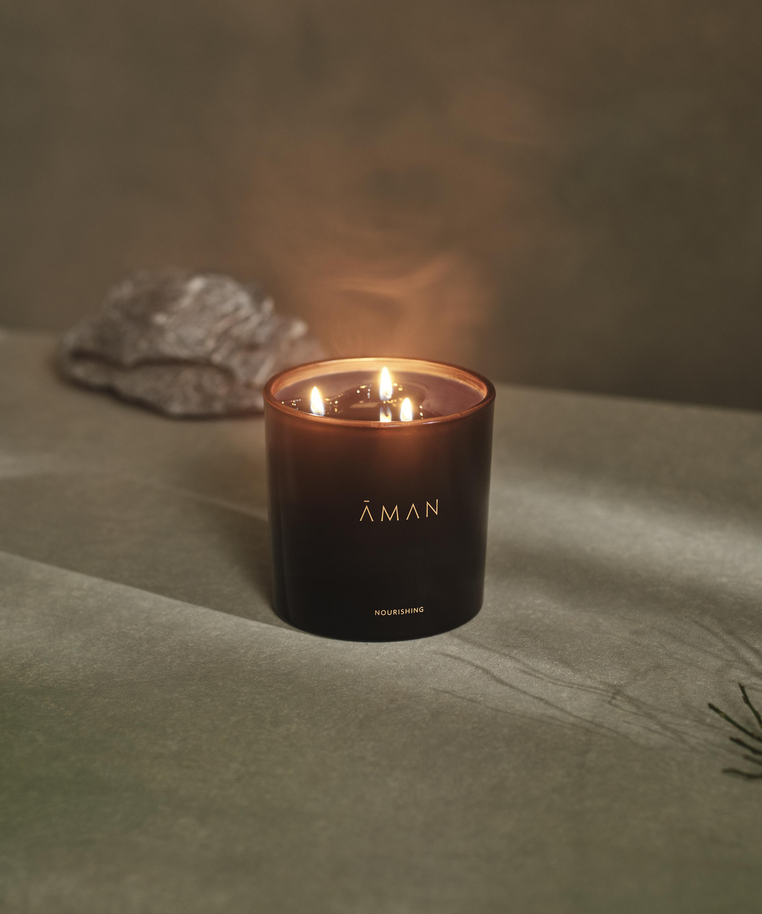 Fill your home with the nurturing, rejuvenating aromas of the Nourishing Spa Candle from Aman, a luxury scented candle infused with a sensual floral fragrace led by jasmine and bergamot that encourages reconnection between body and mind.