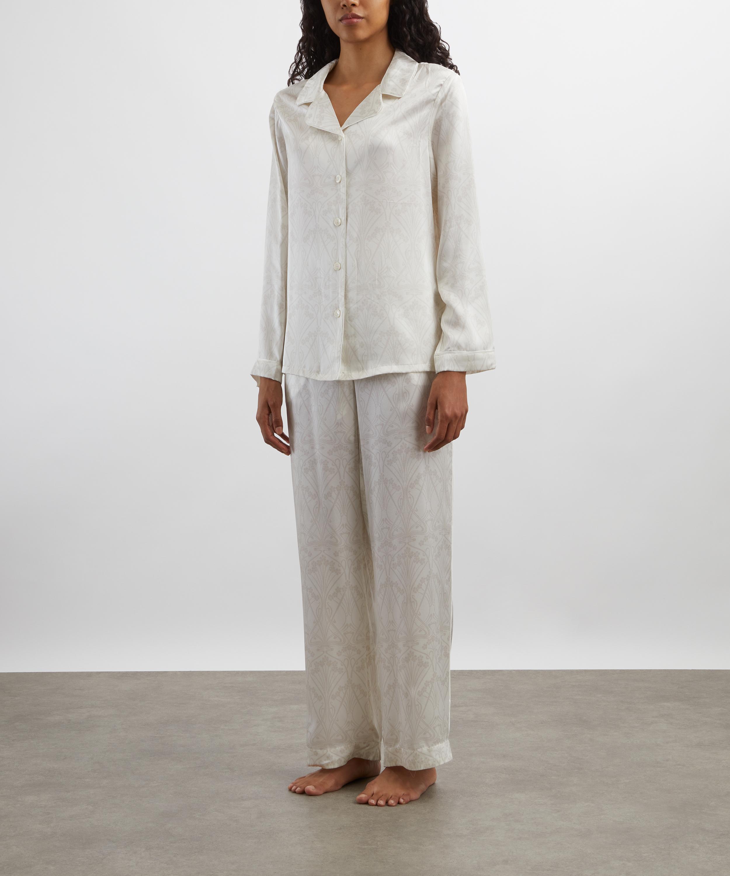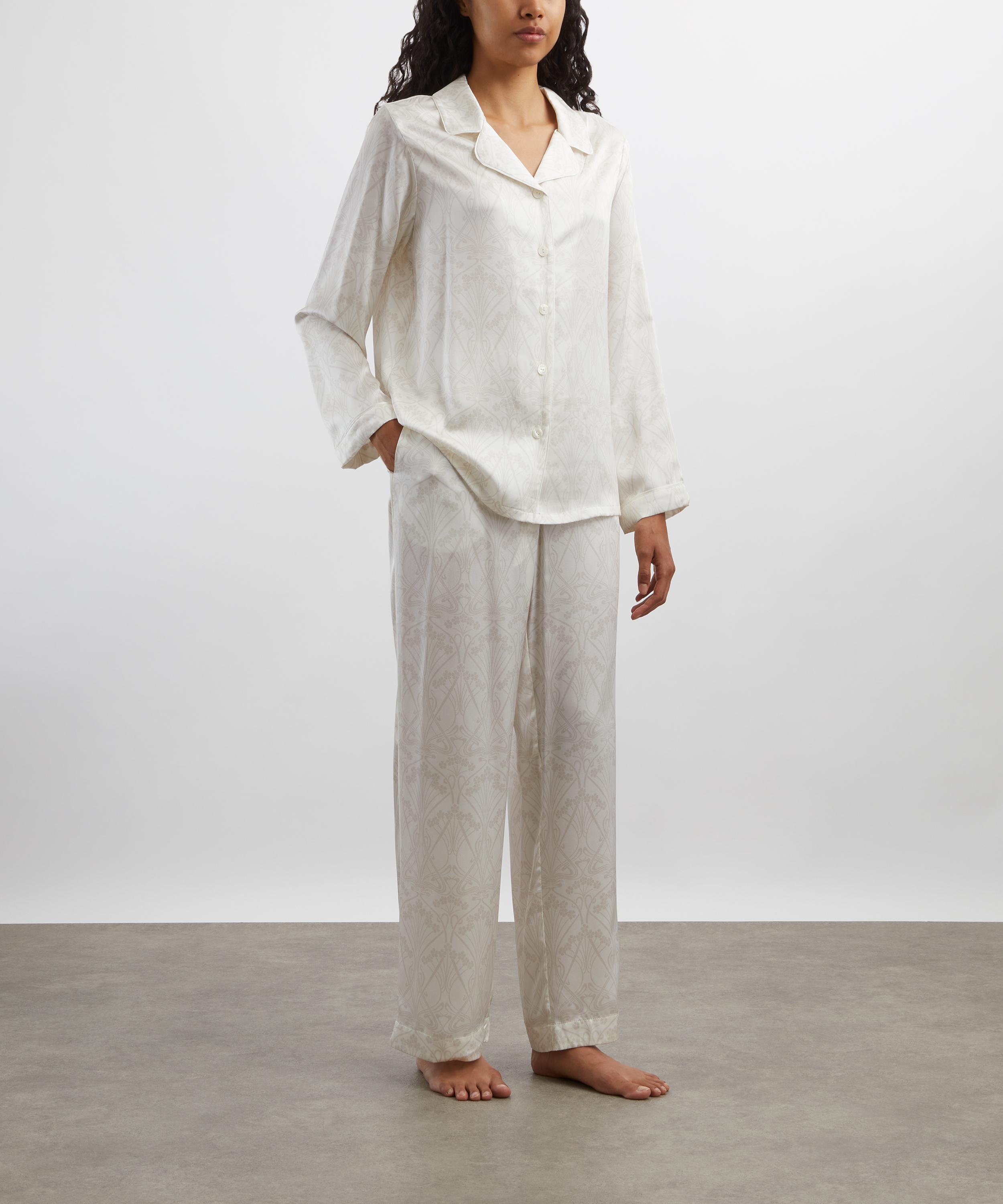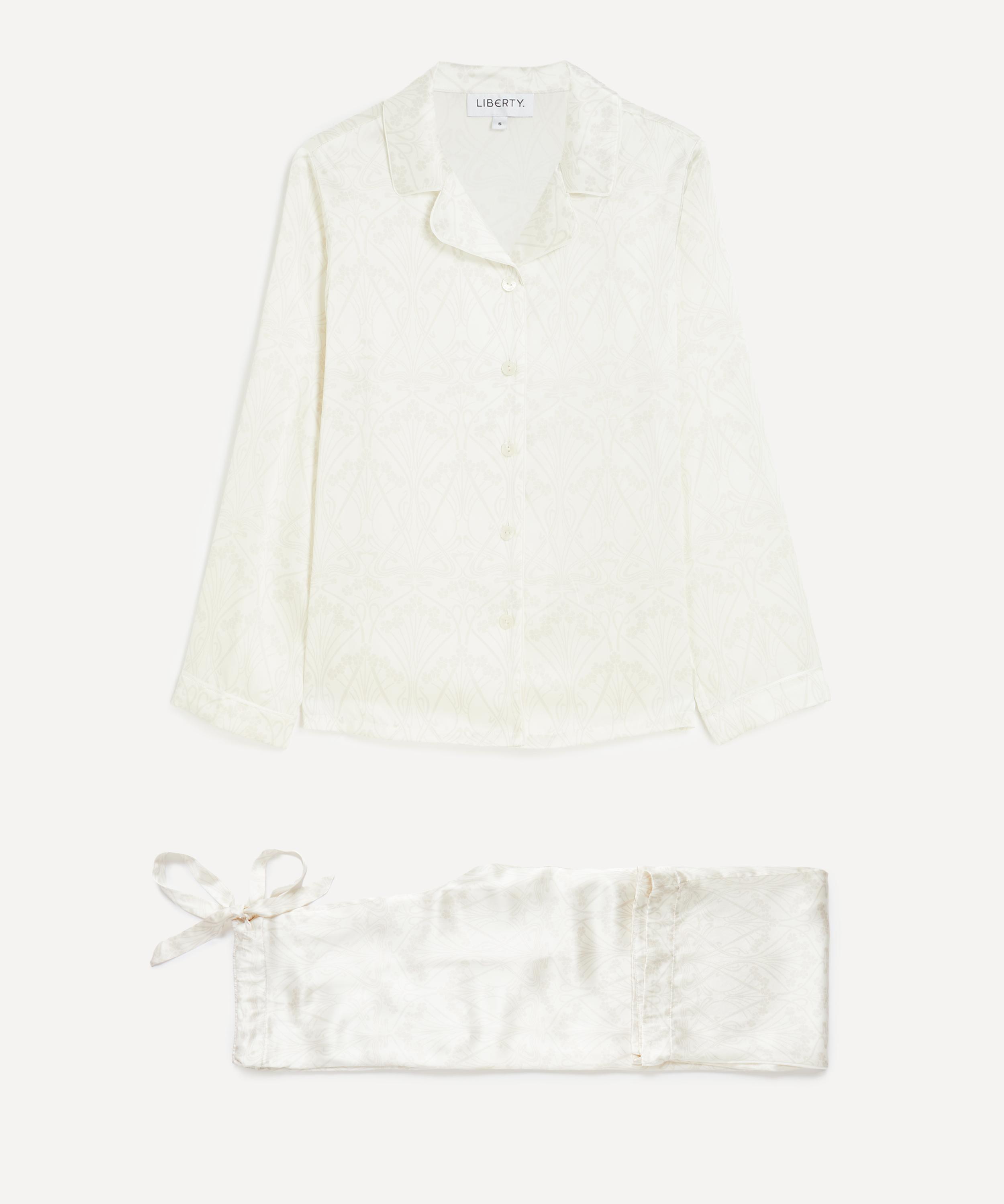 Gracefully tailored in silk-satin, Liberty’s Nouveau Ianthe Pyjamas redefine loungewear with timeless elegance.