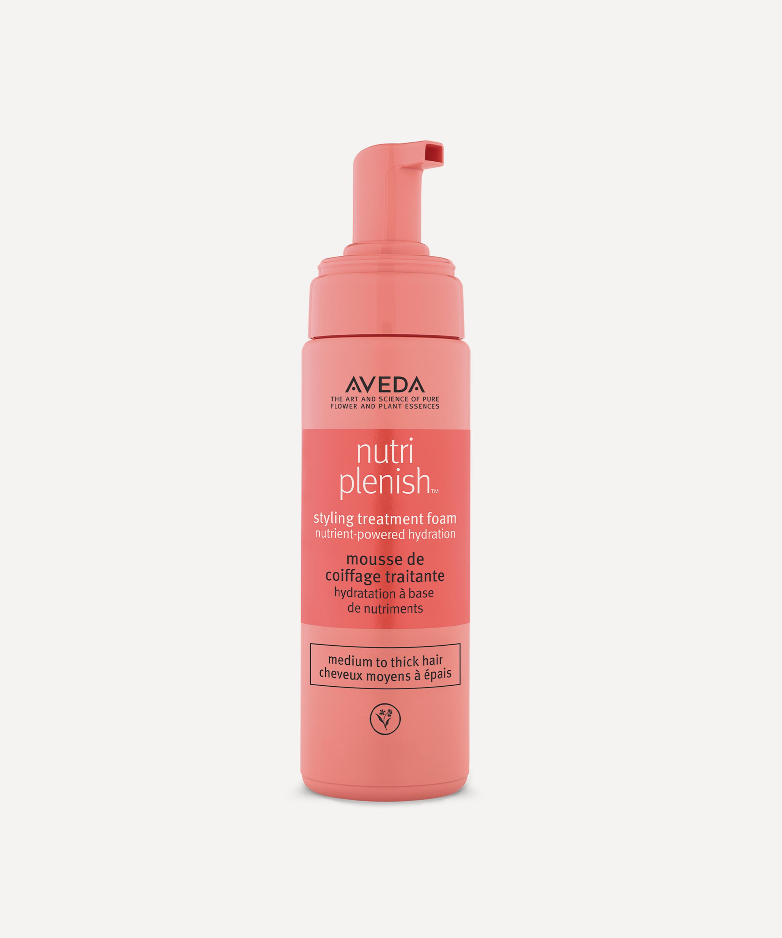 Nutriplenish™ Hydrating Liquid Styling Treatment Foam from Aveda is a flake-free, heat protectant formula that provides soft hold for medium to thick hair, while leaving strands conditioned, nourished and touchably soft.