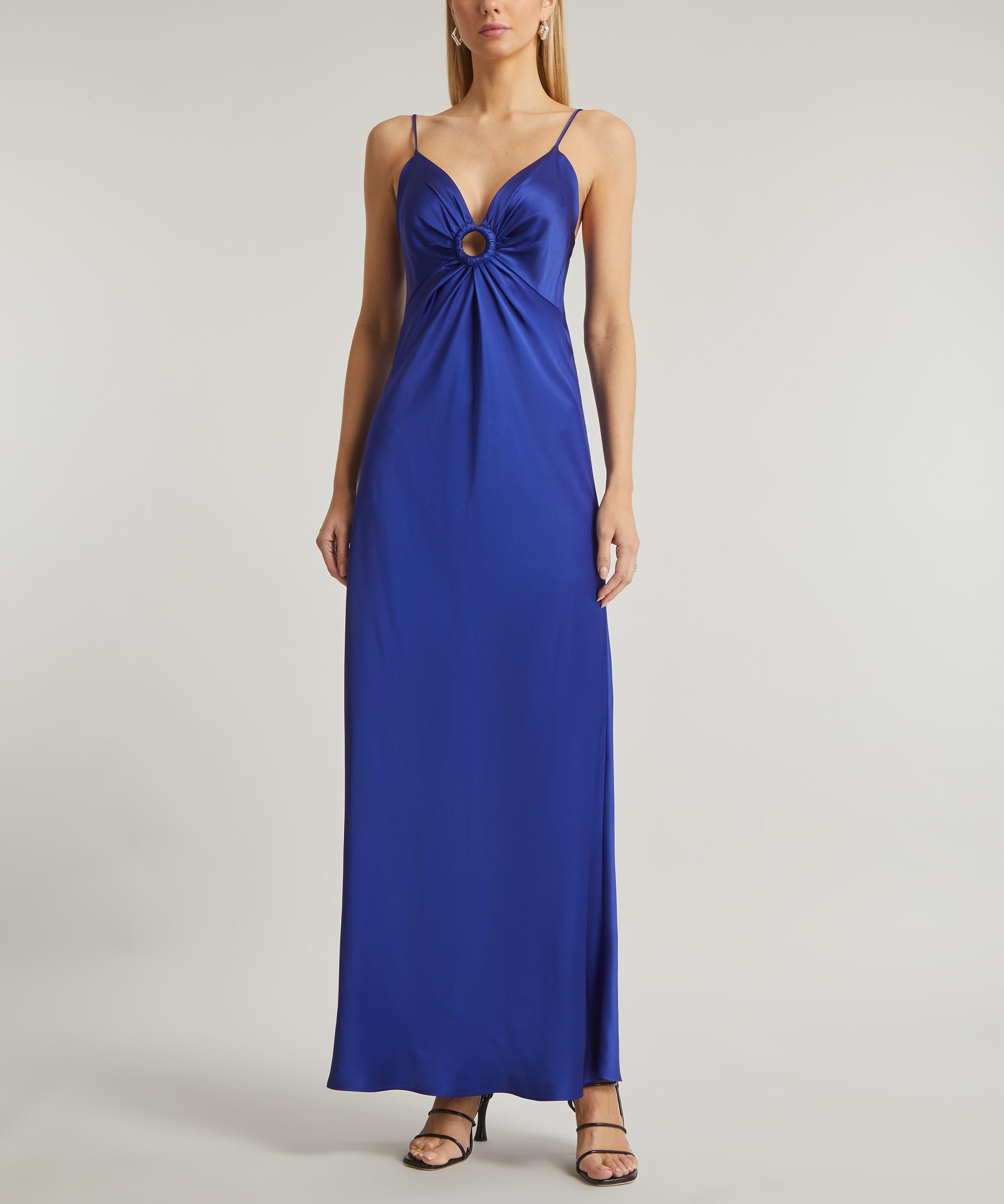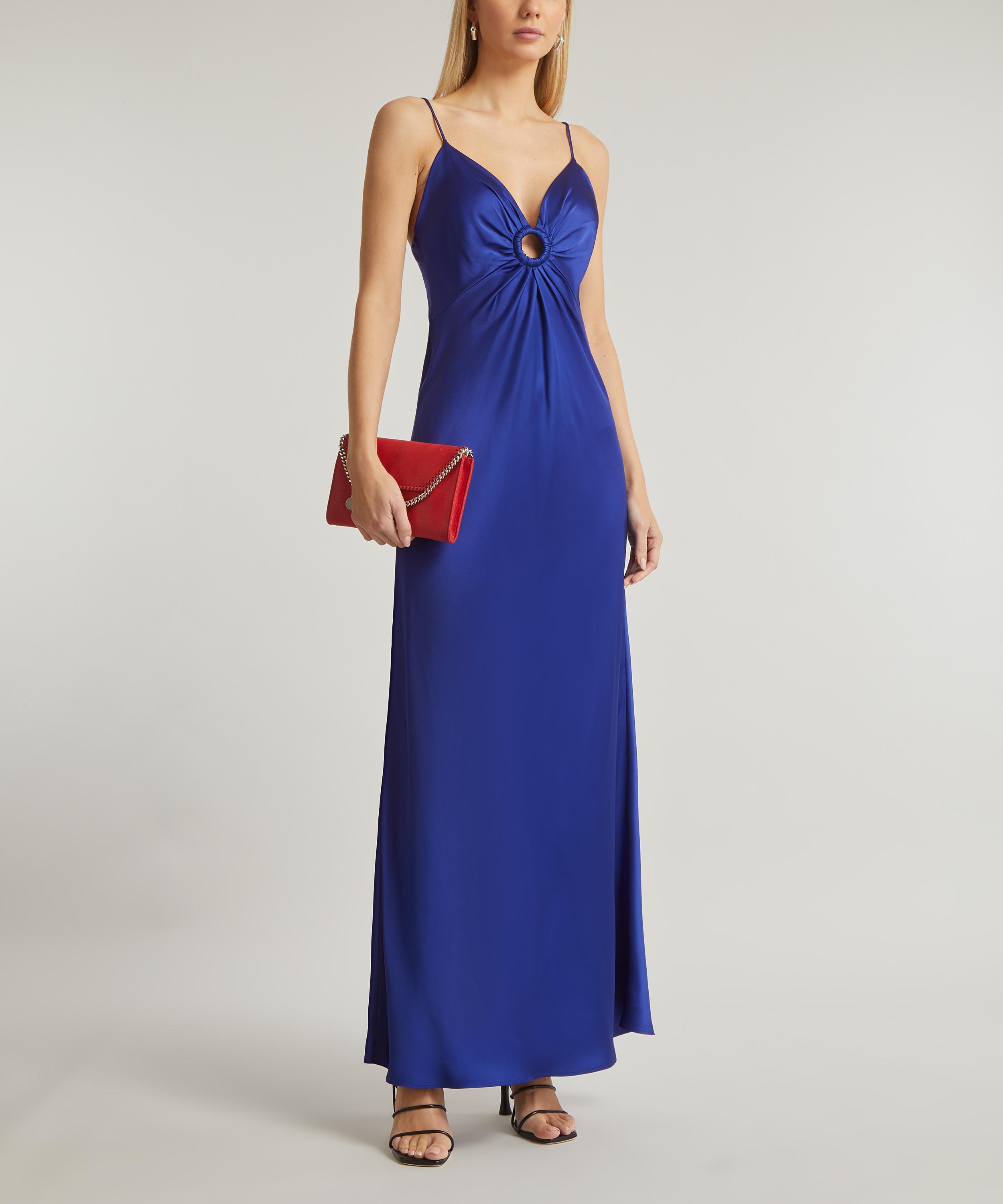Fusing structured tailoring with the label’s signature, sophisticated style, this sapphire-blue maxi-dress from Stella McCartney is a true show-stopping piece. Crafted from a forest-friendly viscose-blend, this slinky statement dress exudes glamour with its plunging sweetheart-neckline, complete with an O-ring cut-out detail at the centre front for a gathered finish.