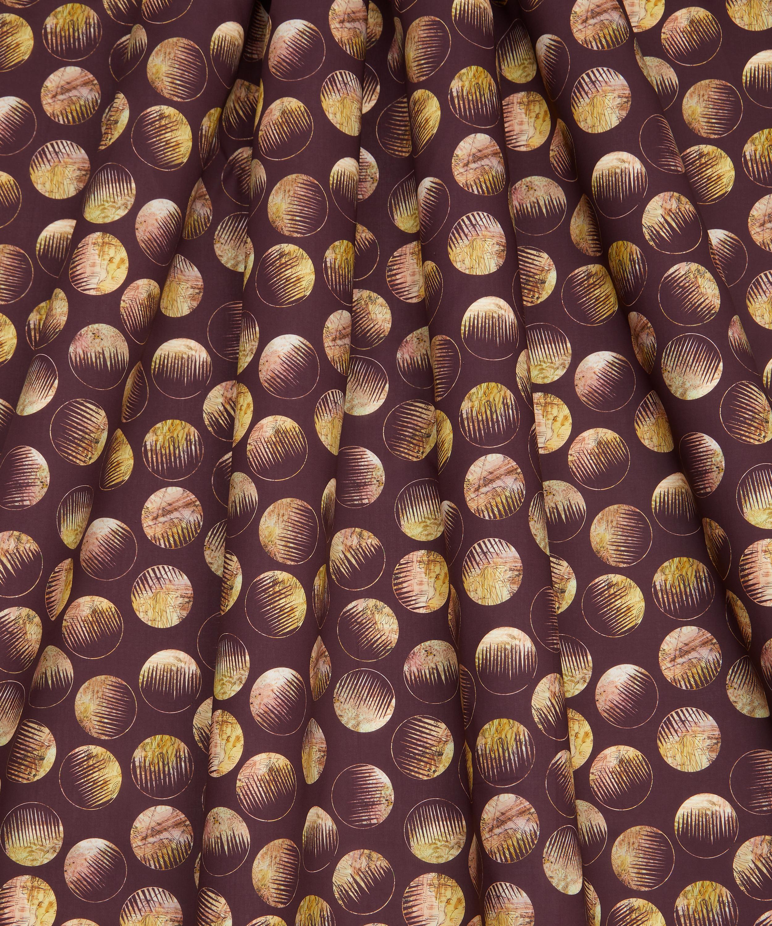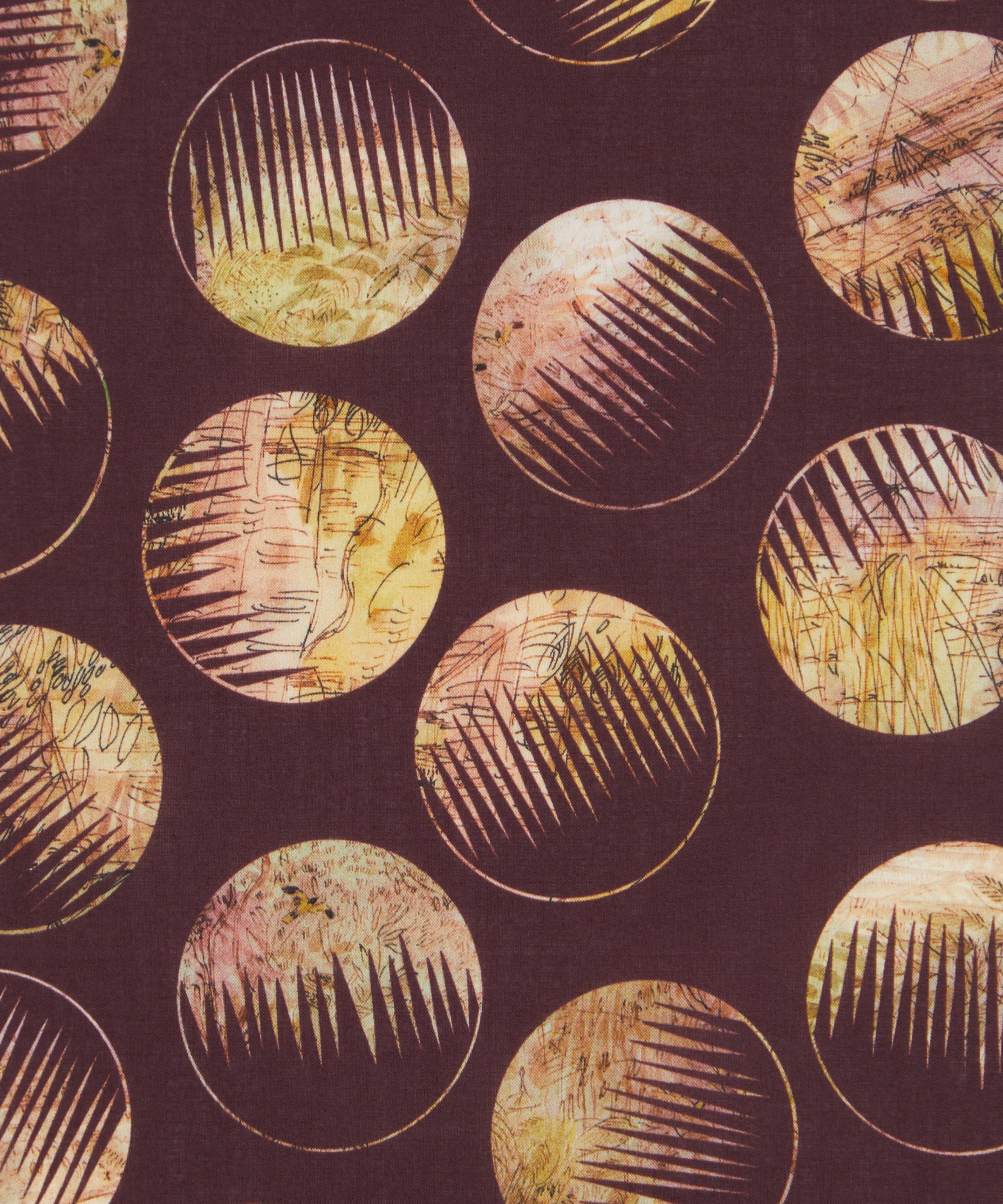 Based on a simple geometric, archival Liberty artwork, Obscured Landscape is inspired by Nazanin’s experiencing the outside world through small cracks and holes from within the prison walls. The deceptively simple design hides sketches from the IWM by commissioned British war artist, Anthony Gross, in each of the polka dots. Gross’ evocative sketches create the impression of split world, one of war and another of nature. The unique combination of artworks explores the fragmented reality of those facing war or imprisonment.