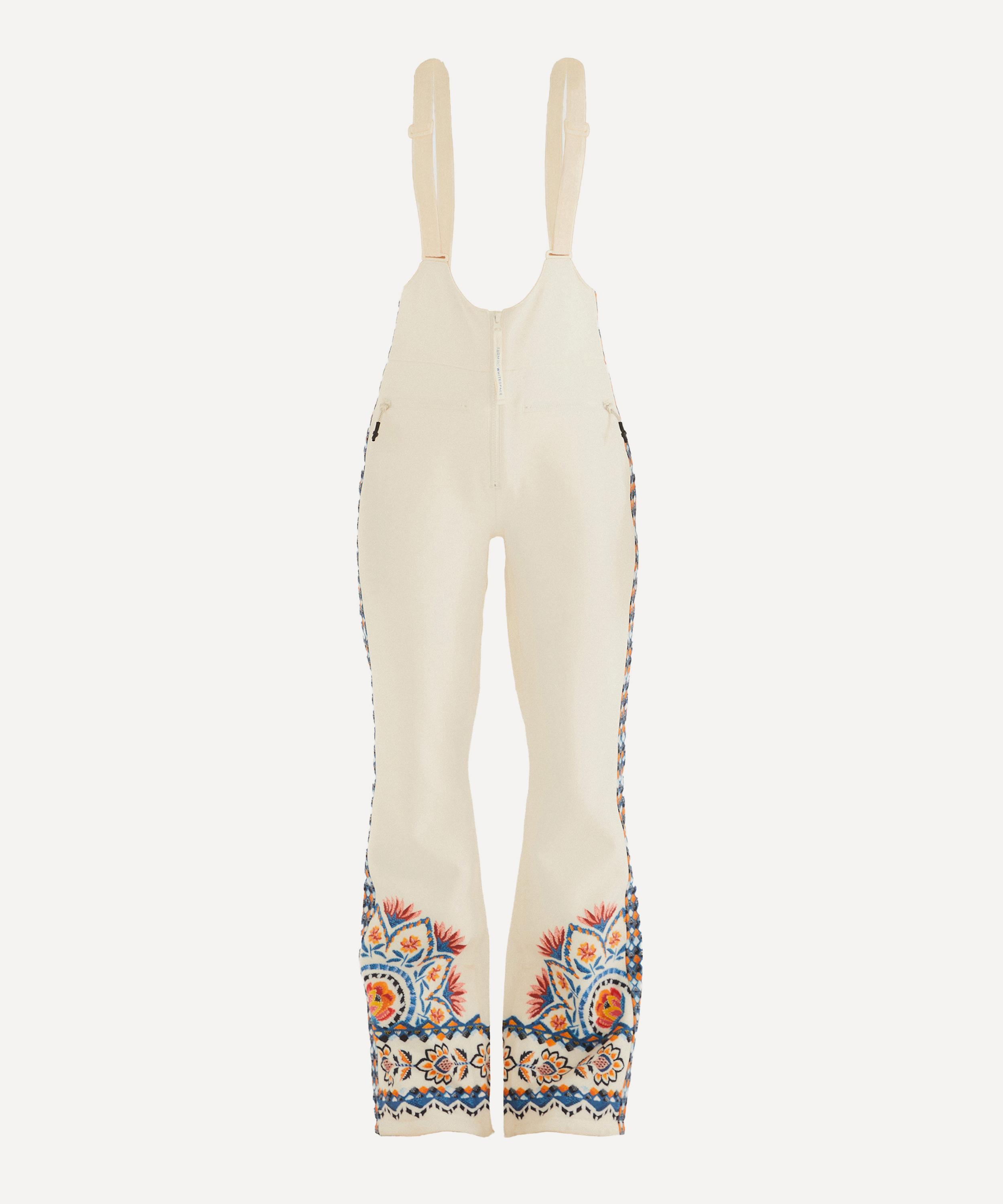 The Lucy Floral Suspender Ski Trousers bring sun-soaked spirit to winter terrain as part of Farm Rio’s first collaboration with performance snow brand WHITESPACE.