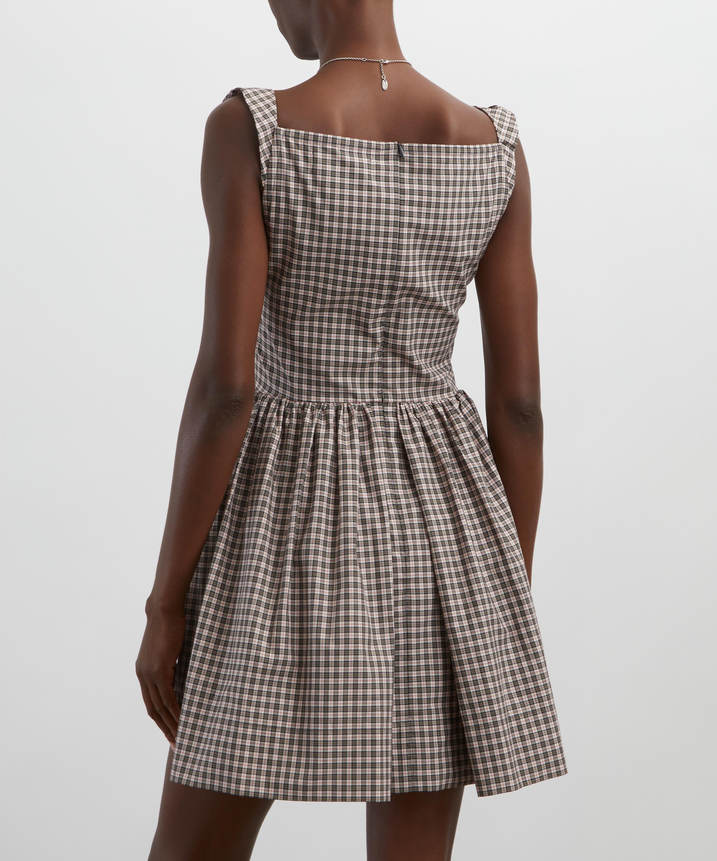 Drawing inspiration from high-society women of 18th-century salon culture, the Sunday dress showcases a sculpted, corset-inspired silhouette that falls into a mini-length finish, complete with an embroidered orb at the hip, adding a distinctive signature touch.