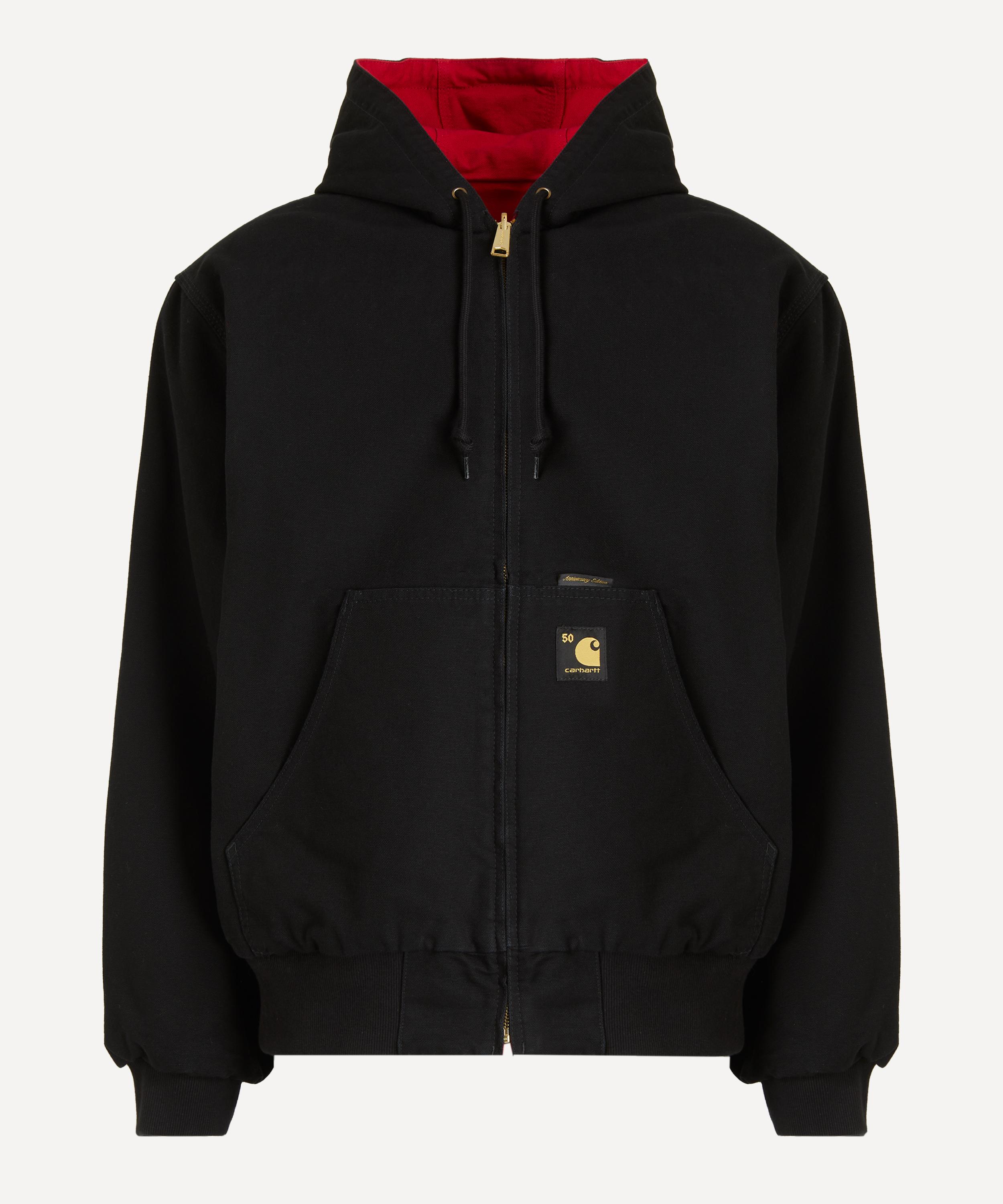 Featuring classic details, this special edition jacket is fully reversible, crafted from durable Dearborn Canvas with one side in red and the other in black. Designed with a boxy, oversized fit, it includes a drawstring hood, zip closure, and kangaroo pockets, while anniversary labeling provides a distinctive, celebratory finish.