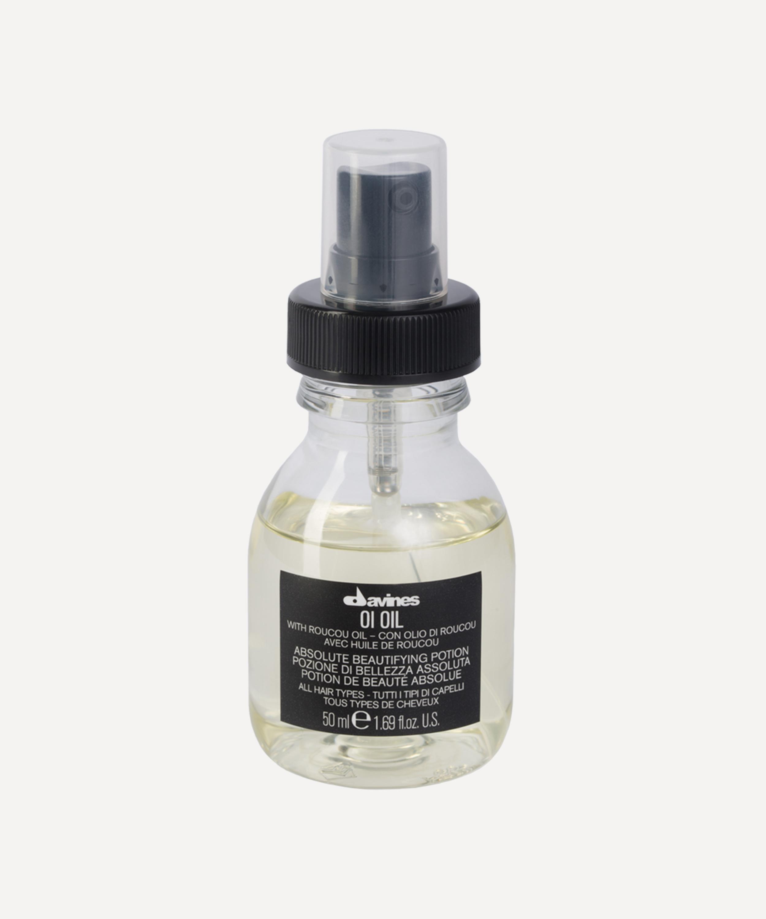 Davines' sustainably produced OI Oil is a beautifying potion that hydrates, nourishes softens and imparts shine to all hair types; its name derived from the ancient Eastern idea of harmony through the balance of opposite forces.
