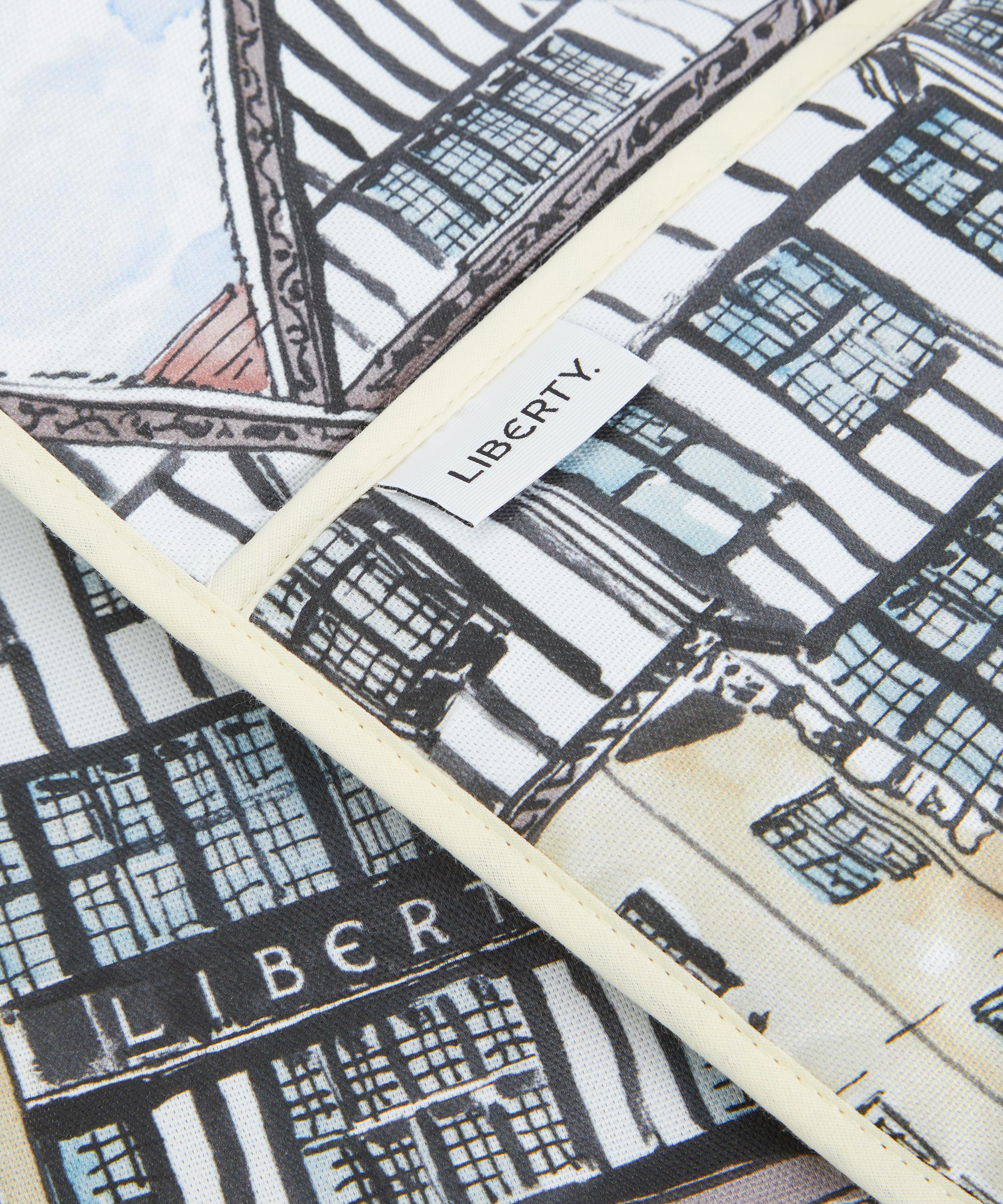 This double oven mitt is defined by a standout Liberty Building print that celebrates our flagship store while paying homage to our famous printmaking history. Part of a collection of coordinating kitchen staples that includes a tea towel and an apron, it’s perfect for gifting or adding a dose of design history to your own cooking repertoire.
