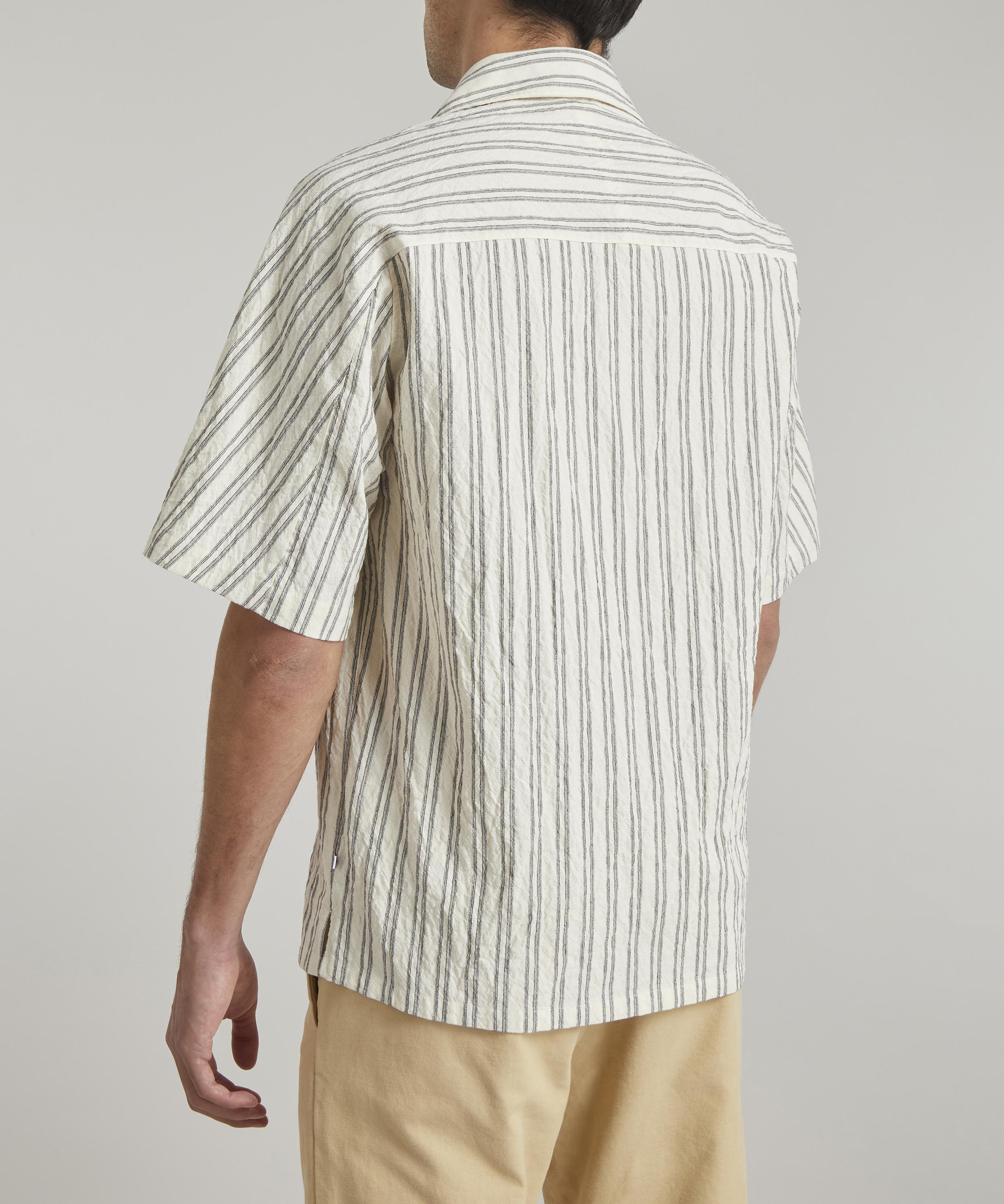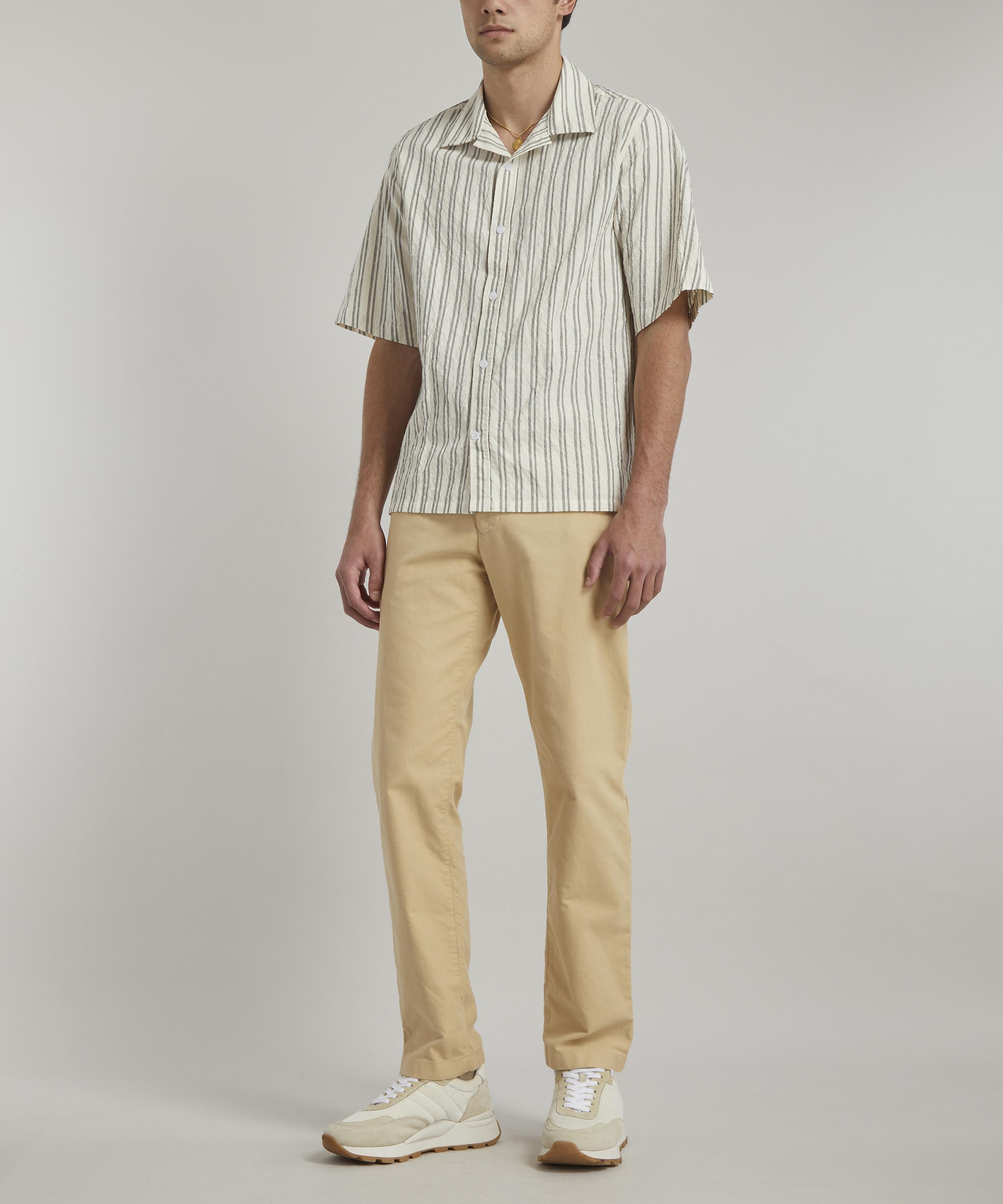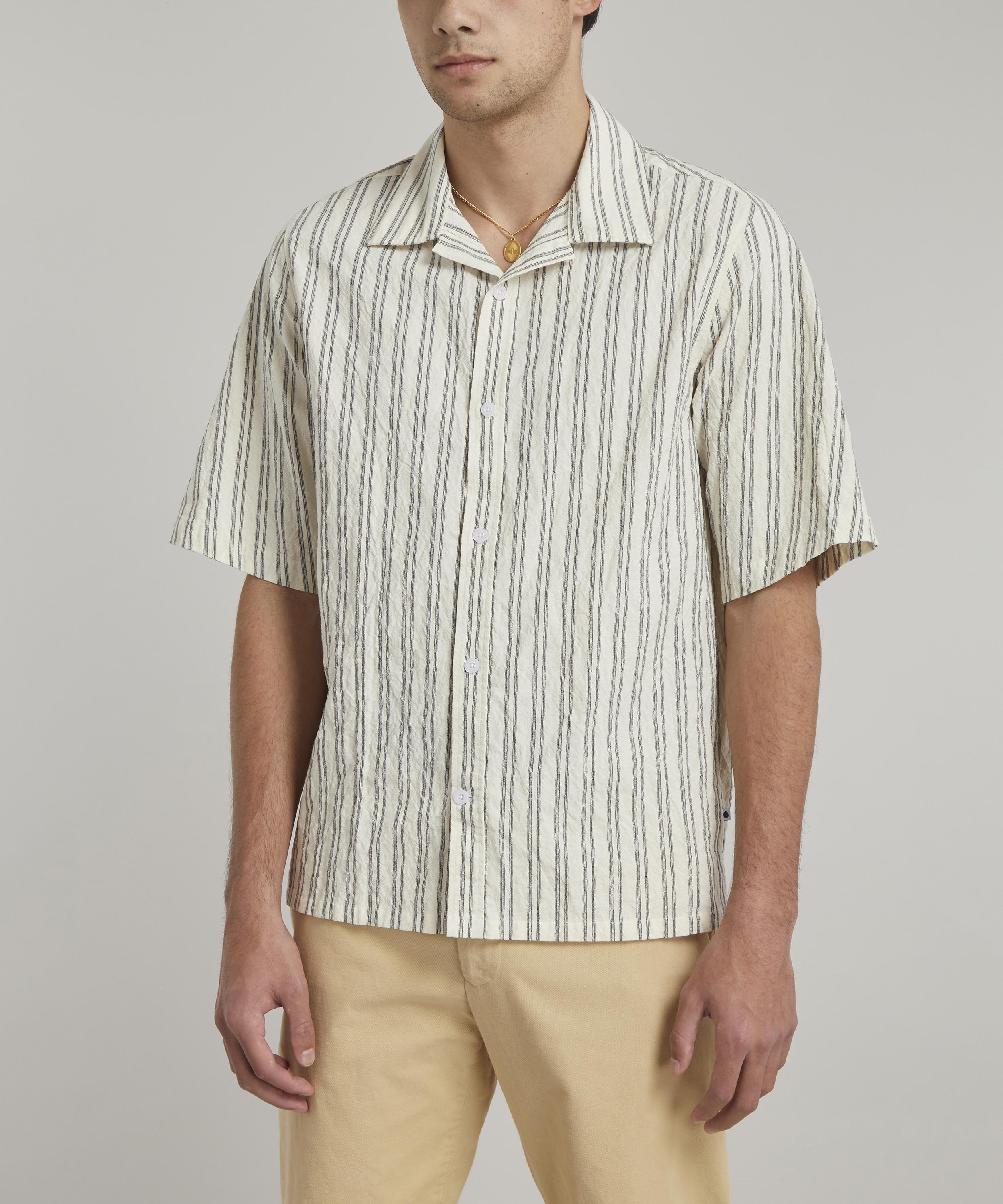Contemporary Danish label NN07 applies its meticulous eye for tailoring to a casual staple with the striped Hans 5034 short-sleeve shirt.