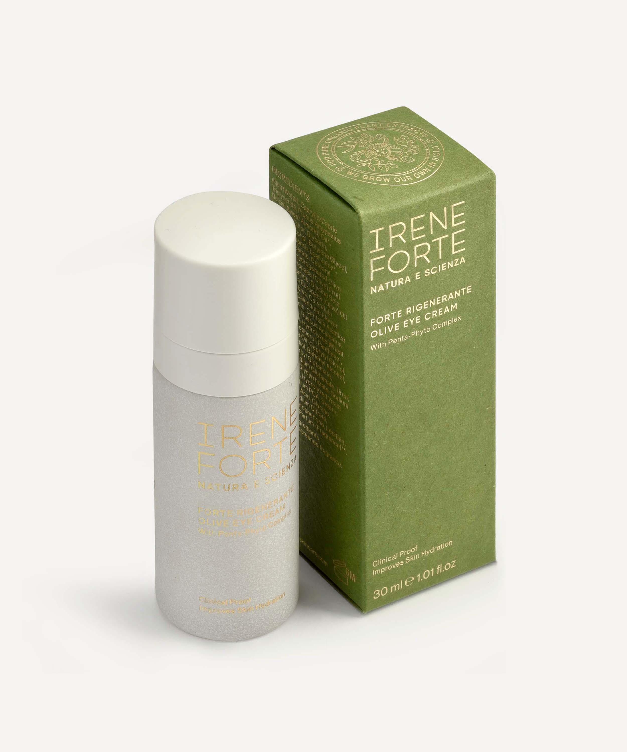Olive Eye Cream with Penta-Phyto Complex from Irene Forte is a clinically proven solution, crafted to alleviate dark circles and treat mature, dry, and dehydrated complexions.