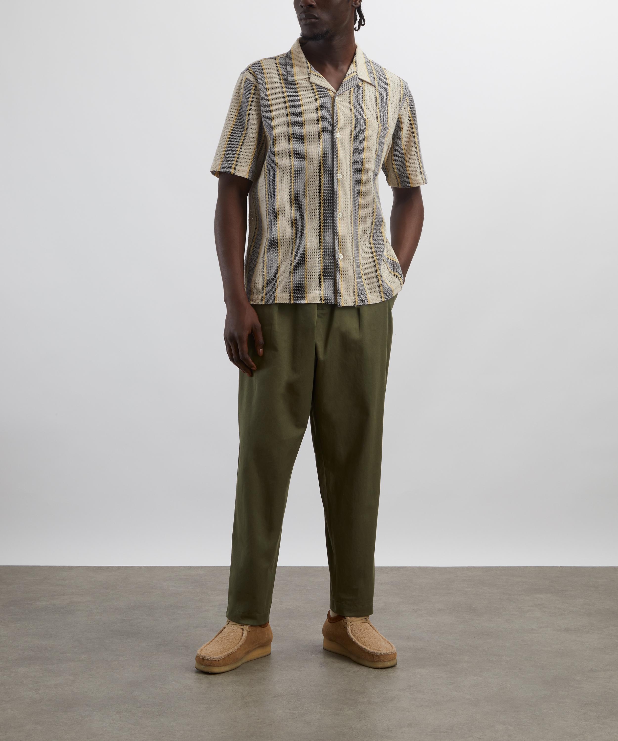 Universal Works merges heritage workwear with modern design in the Olive Pleated Track Trousers, offering a contemporary take on a timeless staple.