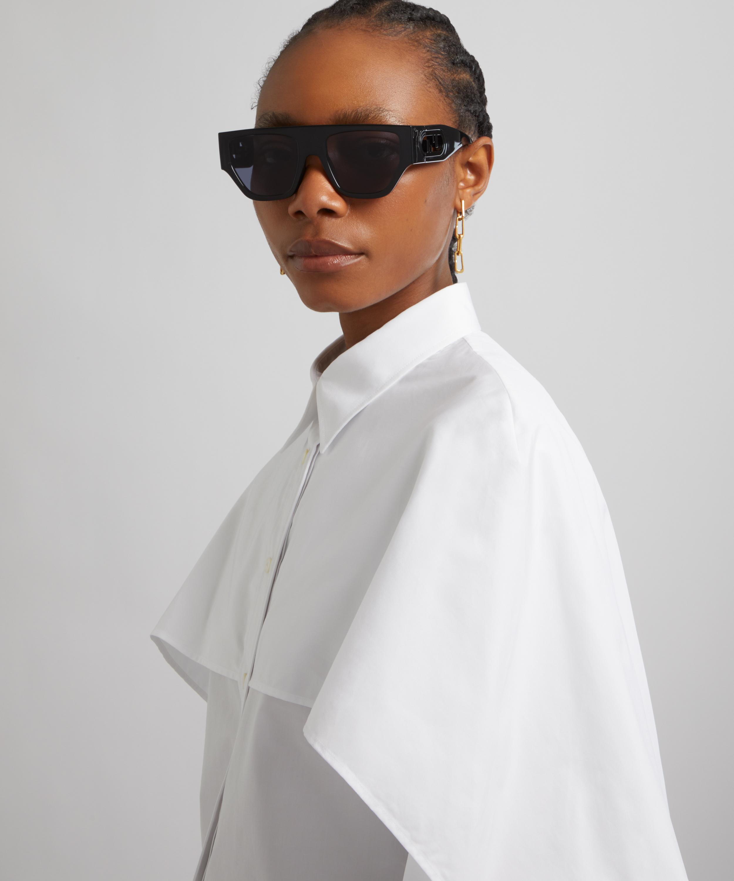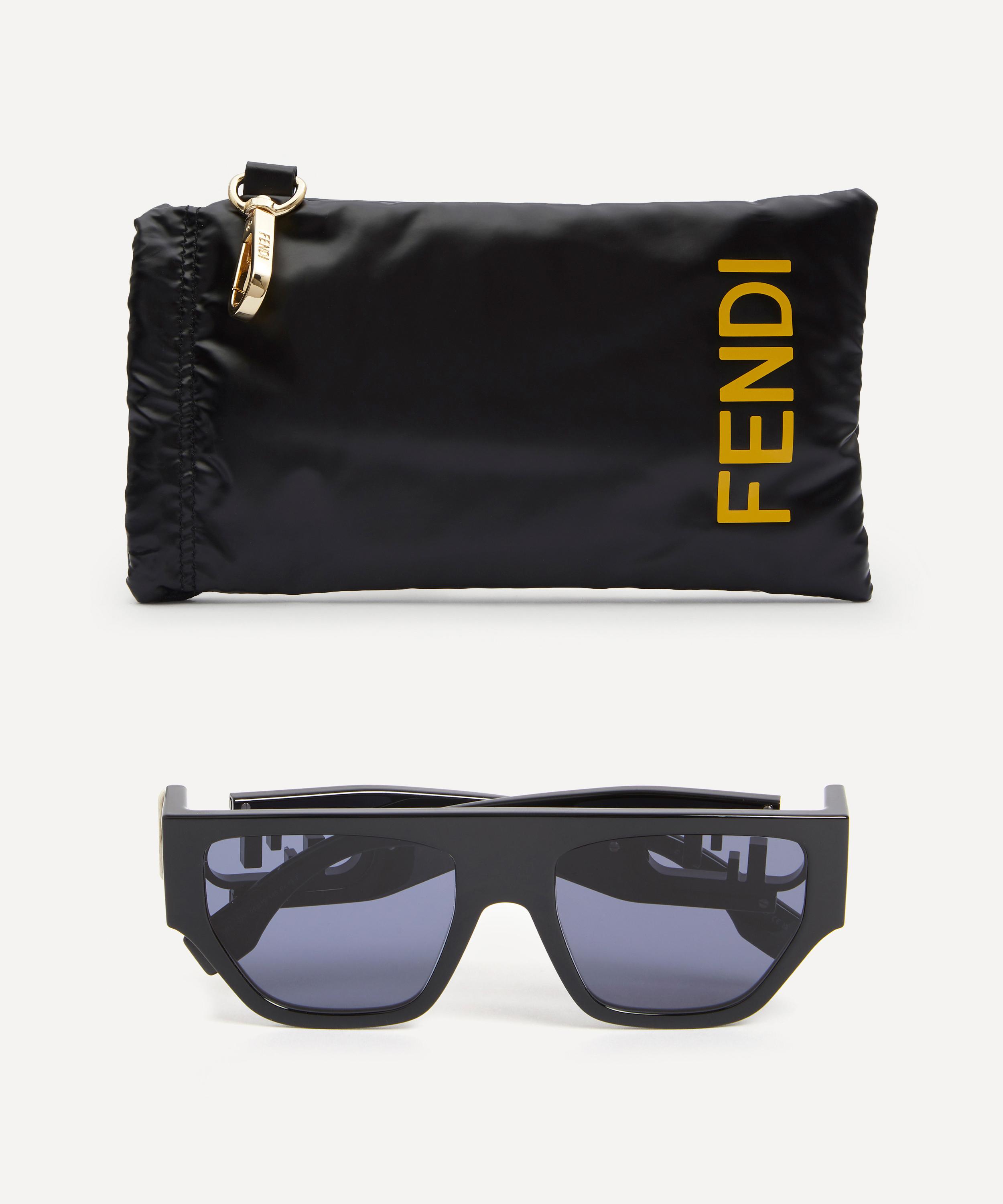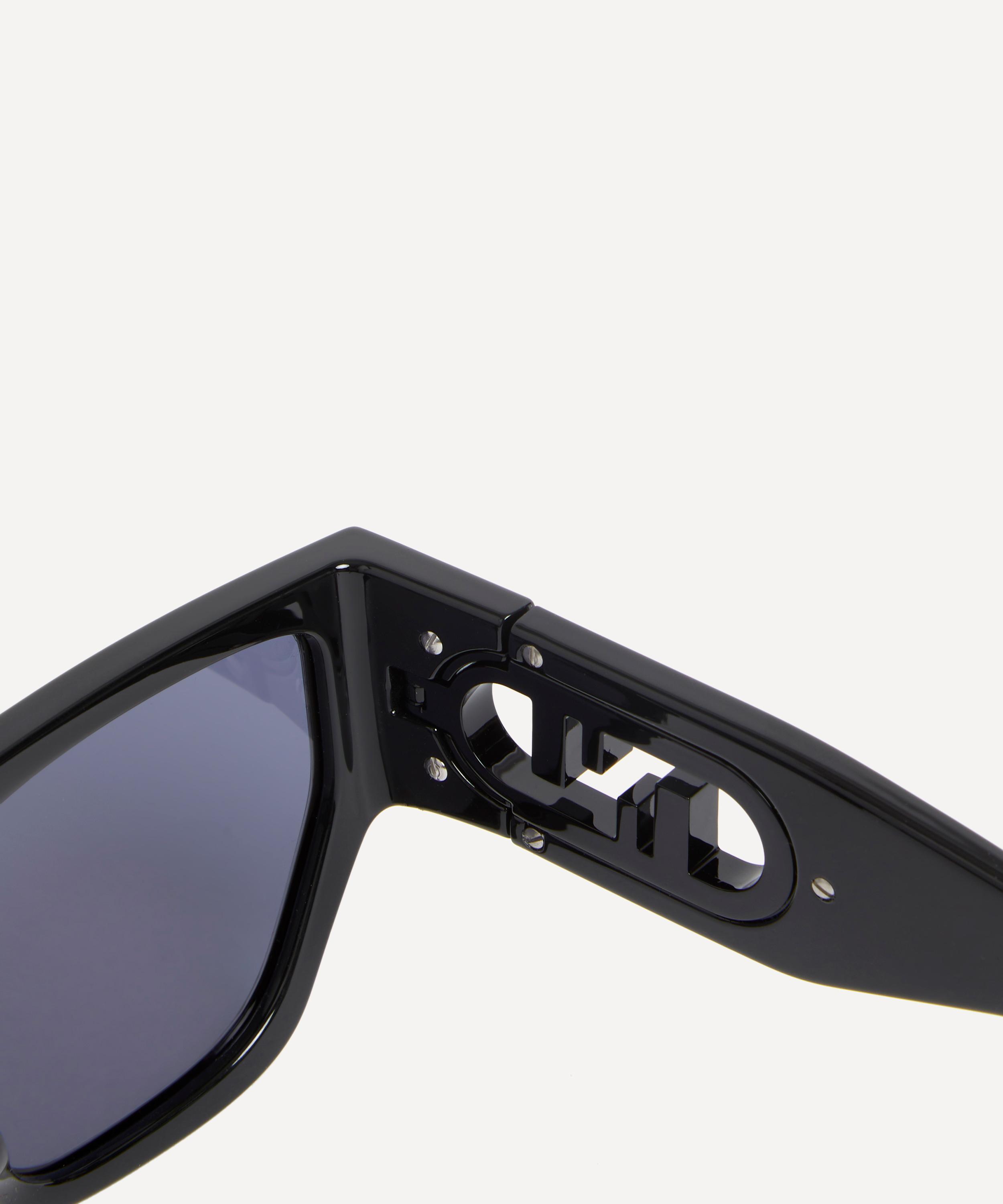 Reigning queen of statement sunglasses Fendi puts a modern spin on these retro-inspired square frames with this bold, geometric pair. Crafted from acetate and fitted with blue tinted lenses, these sunglasses are characterised by the cut-out O'Lock branded detailing that sits proudly at the temples.