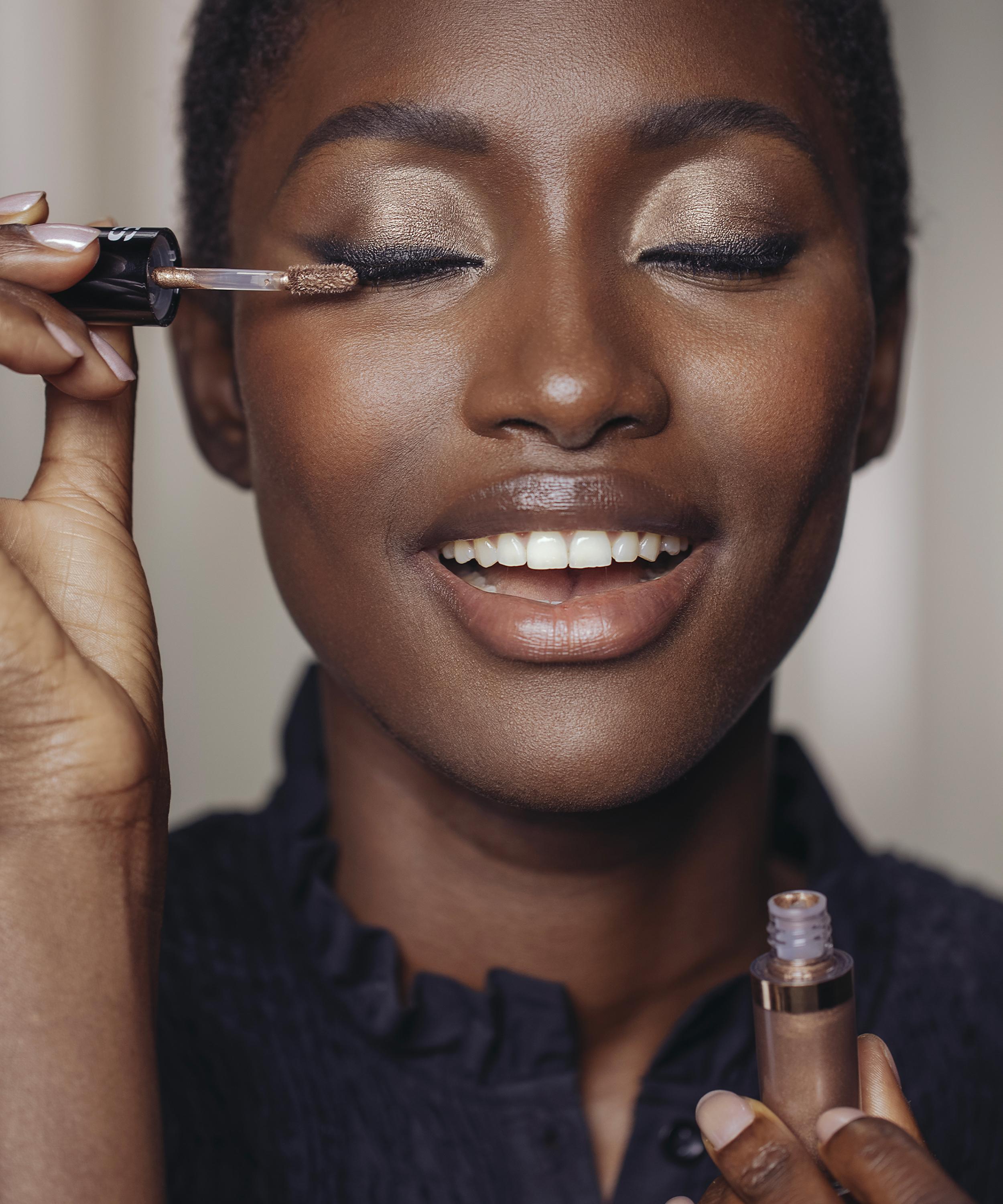 Designed with a soft precision tip for seamless and ultra-sensory application, this sumptuous liquid eyeshadow can be worn alone for a simple shimmery hue or layered easily with other shades for a unique finish. Enriched with plant-based glycerin for added hydration, the skin-like formula won’t crease, providing a feeling of lightweight freshness while visibly smoothing the delicate skin of your eyelids.