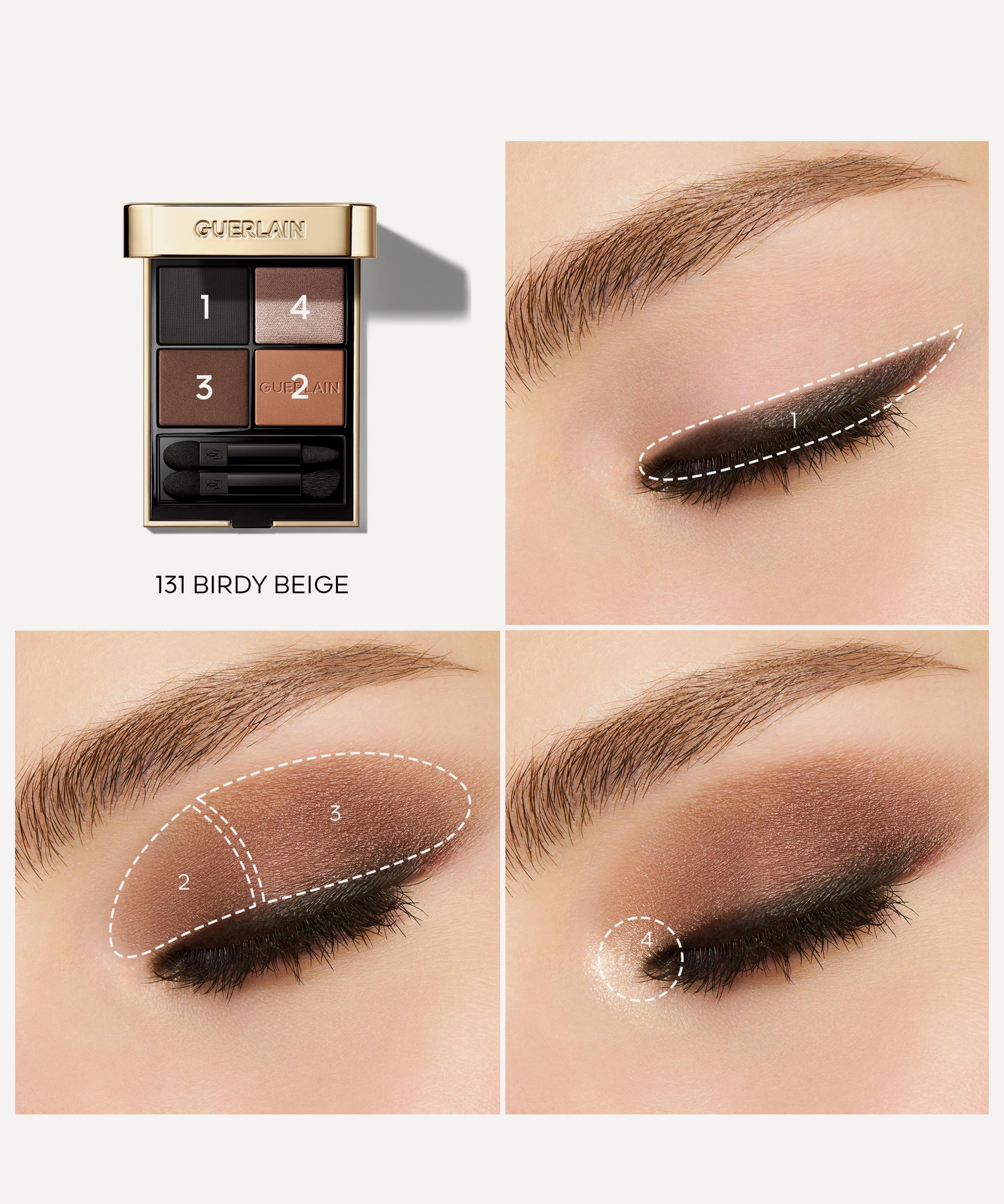 An ode to colour and modernity, the Ombres G 131 Birdy Beige Eyeshadow Quad from GUERLAIN showcases a bold line-up of matte eyeshadows housed in a jewelled case.