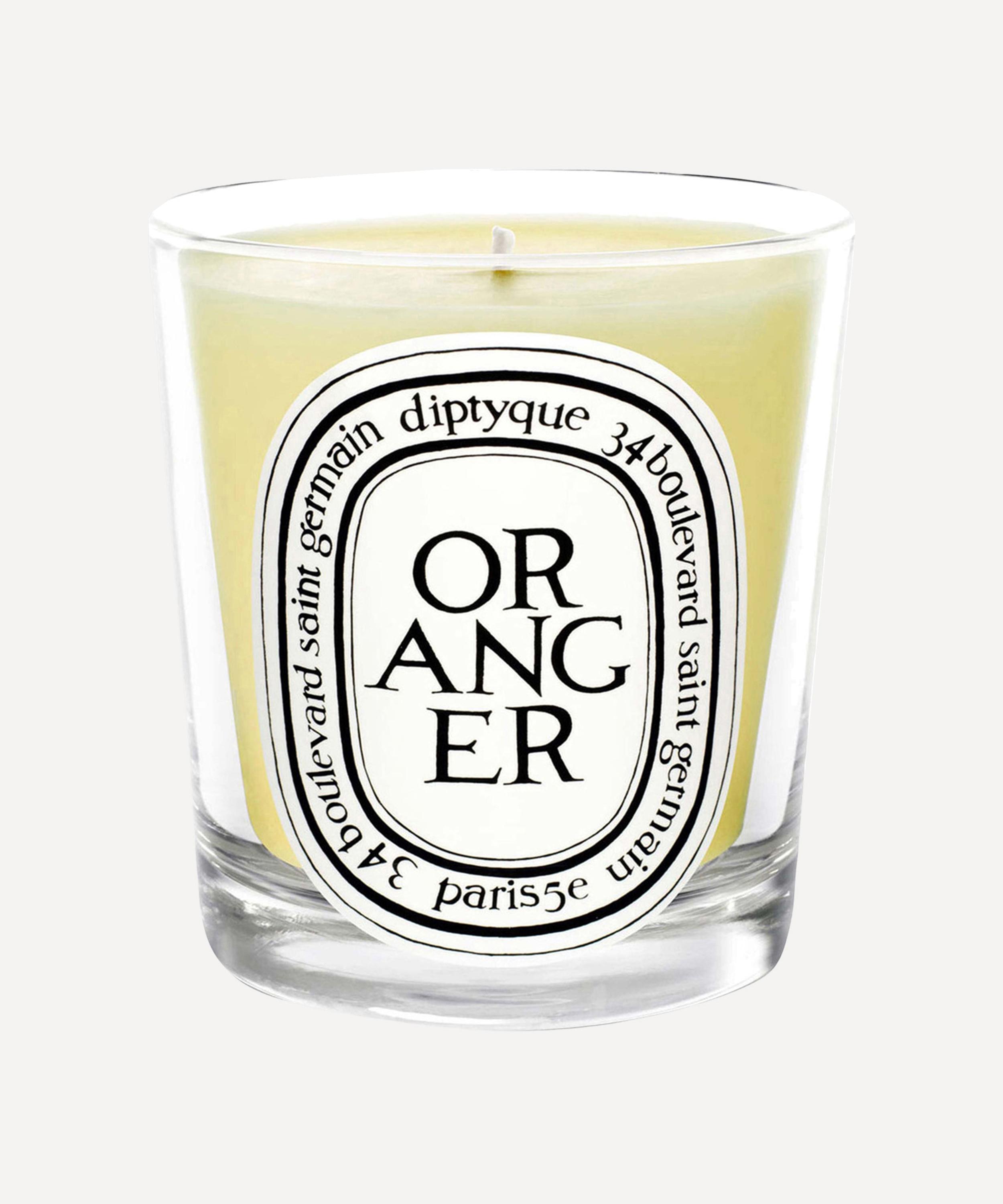 Diptyque's Oranger scented candle celebrates the distinct aromas of a wild orange tree in bloom, from the spiced bark to the ripening oranges.