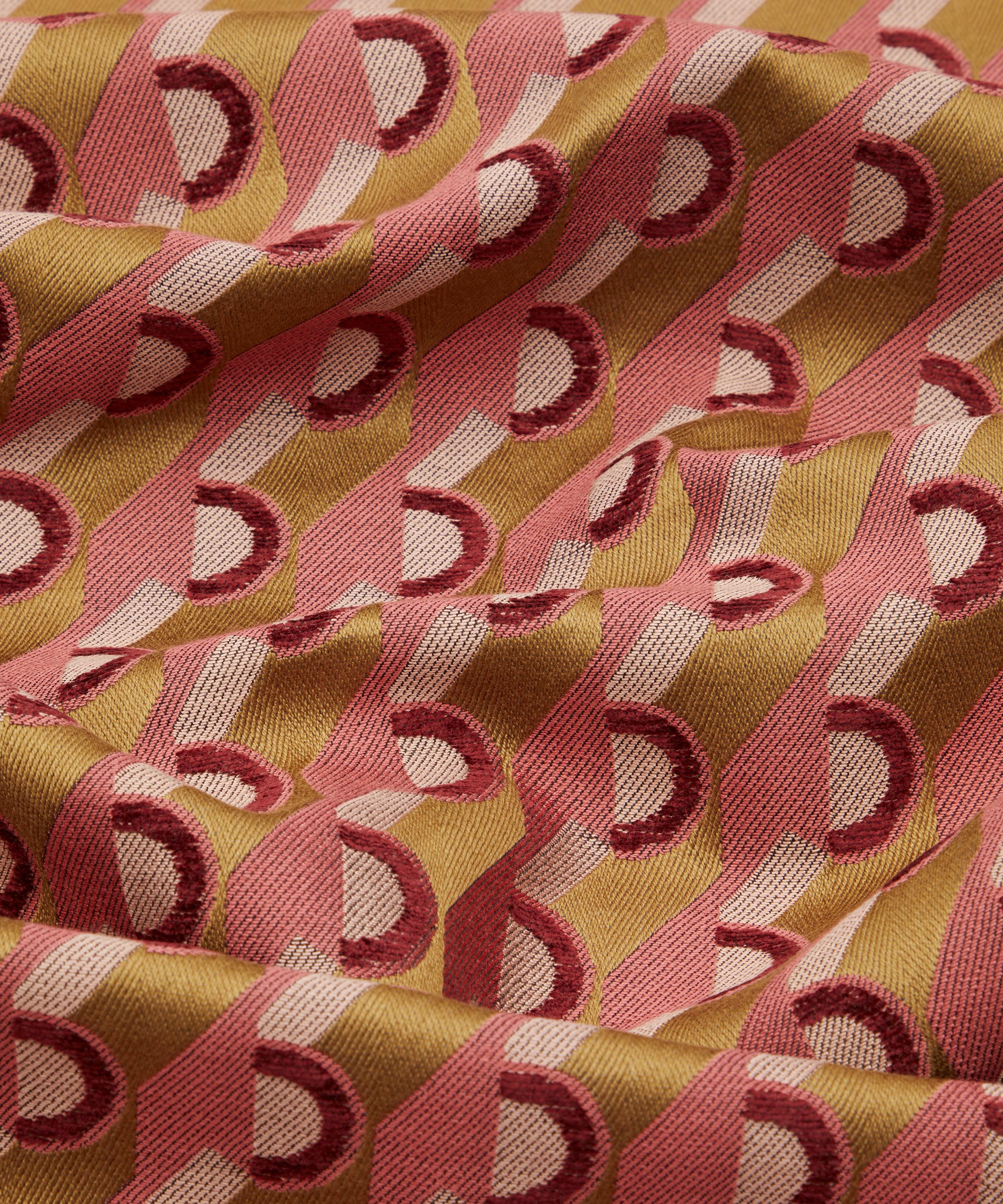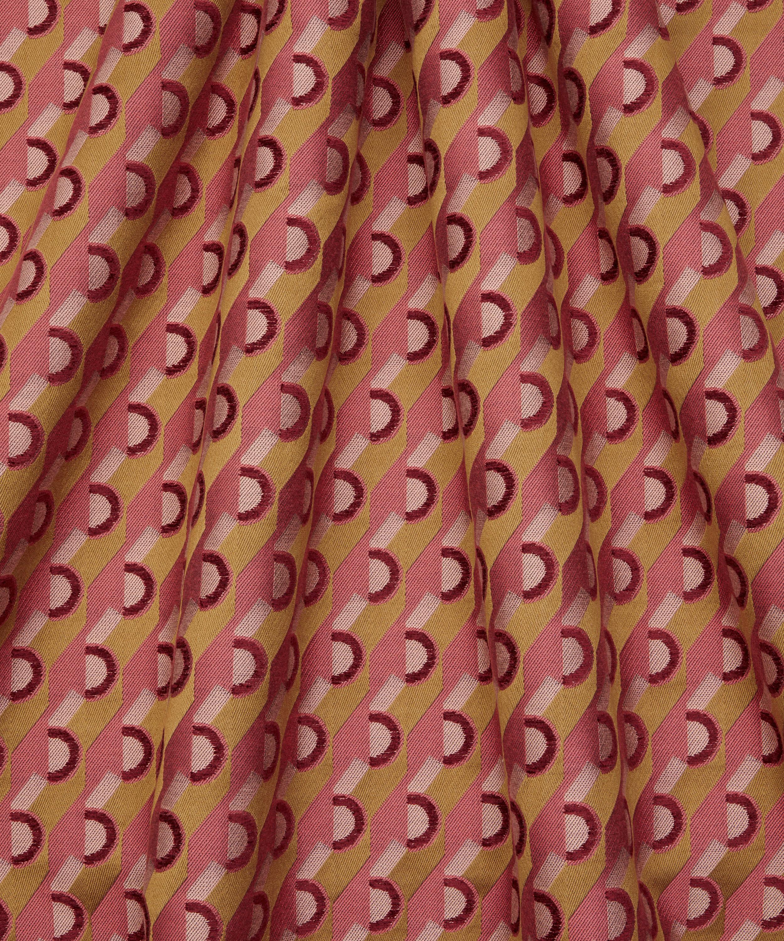 Inspired by a hand-painted Liberty artwork created in 1973, Orbella has been reimagined into a dynamic geometric pattern featuring a striking interplay of alternating stripes and circles. Reminiscent of a modernist collage, this contemporary coordinate utilises contrasting and complementary colours to create a vibrant visual rhythm. The perfect addition to the floral and paisley artworks in the collection, Orbella is beautifully woven by in Italy making it ideal for upholstery, drapery, cushions, and accessories.