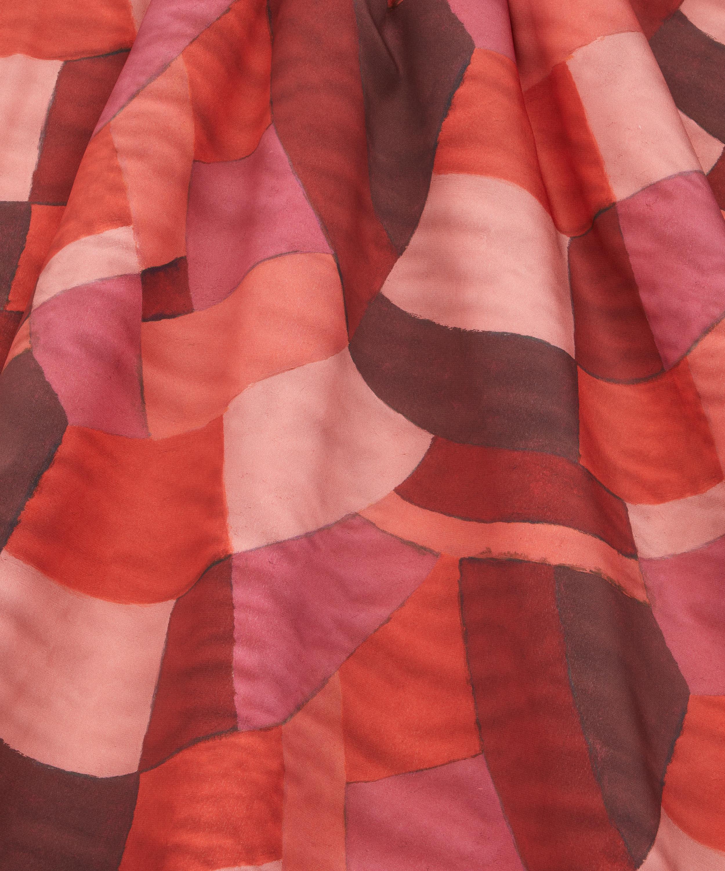 Created in textured acrylic paint with a large brush, Orphism was inspired by dancing fragments of light. Its loose geometric design captures a sense of pure abstraction in bold, bright colours. This print is part of the Spectrum story of our Spring/Summer 2024 collection - influenced by eclectic modern art movements, from the bold complementary hues of Fauvism to the synesthete musicality of the Orphists, with designs paying tribute to a vibrant array of colourful phenomena and pigment conception.
