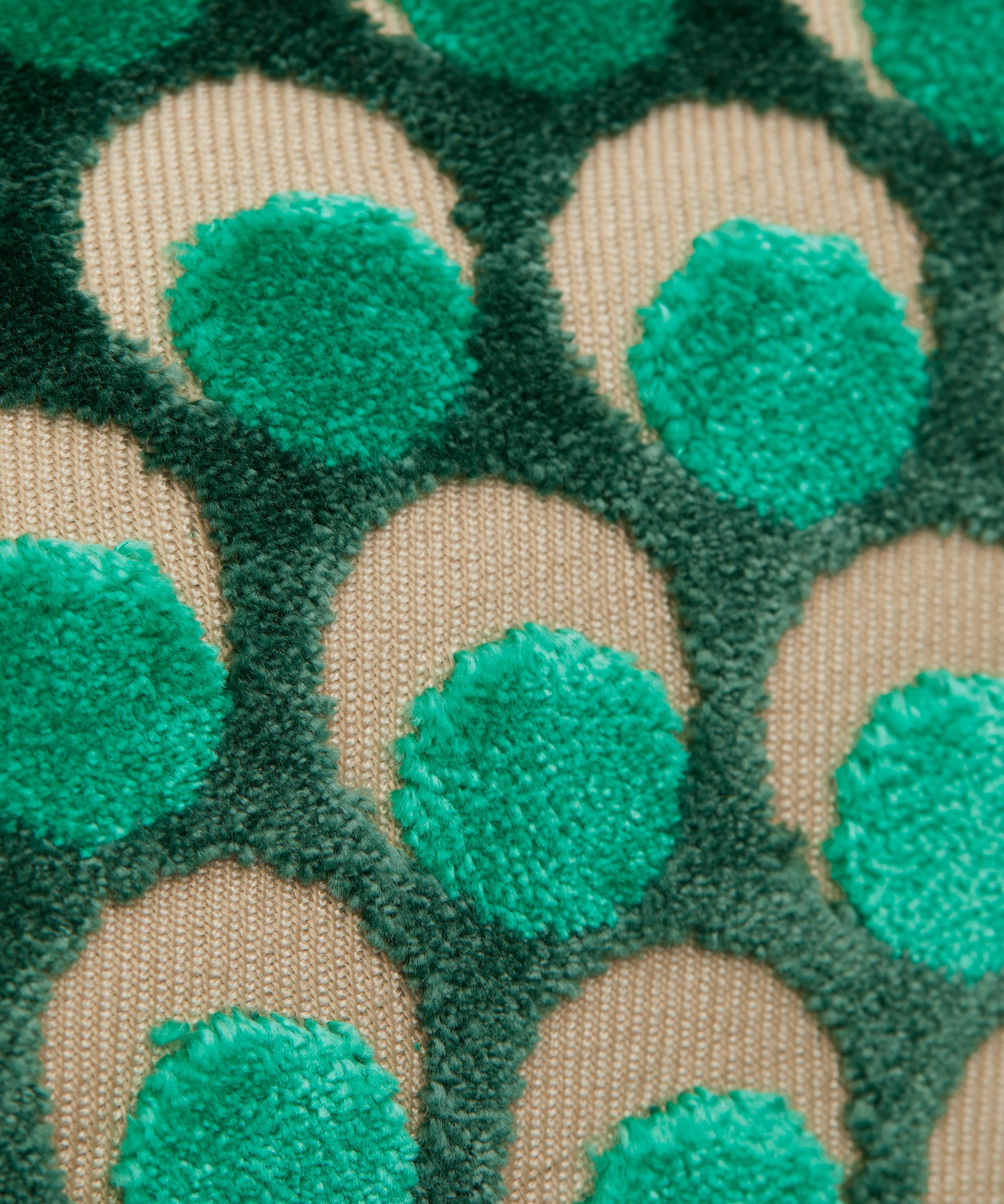 The design appears on a beautiful mixed-fibre cut-pile velvet – luxurious in feel and vibrant in colour, this tactile cotton fabric contains some polyester for added durability and softness. Suitable for heavy domestic and severe contract use, Cut Velvet is perfect for creating thick drapery, luxurious upholstery or even elegant throw or bolster cushions.