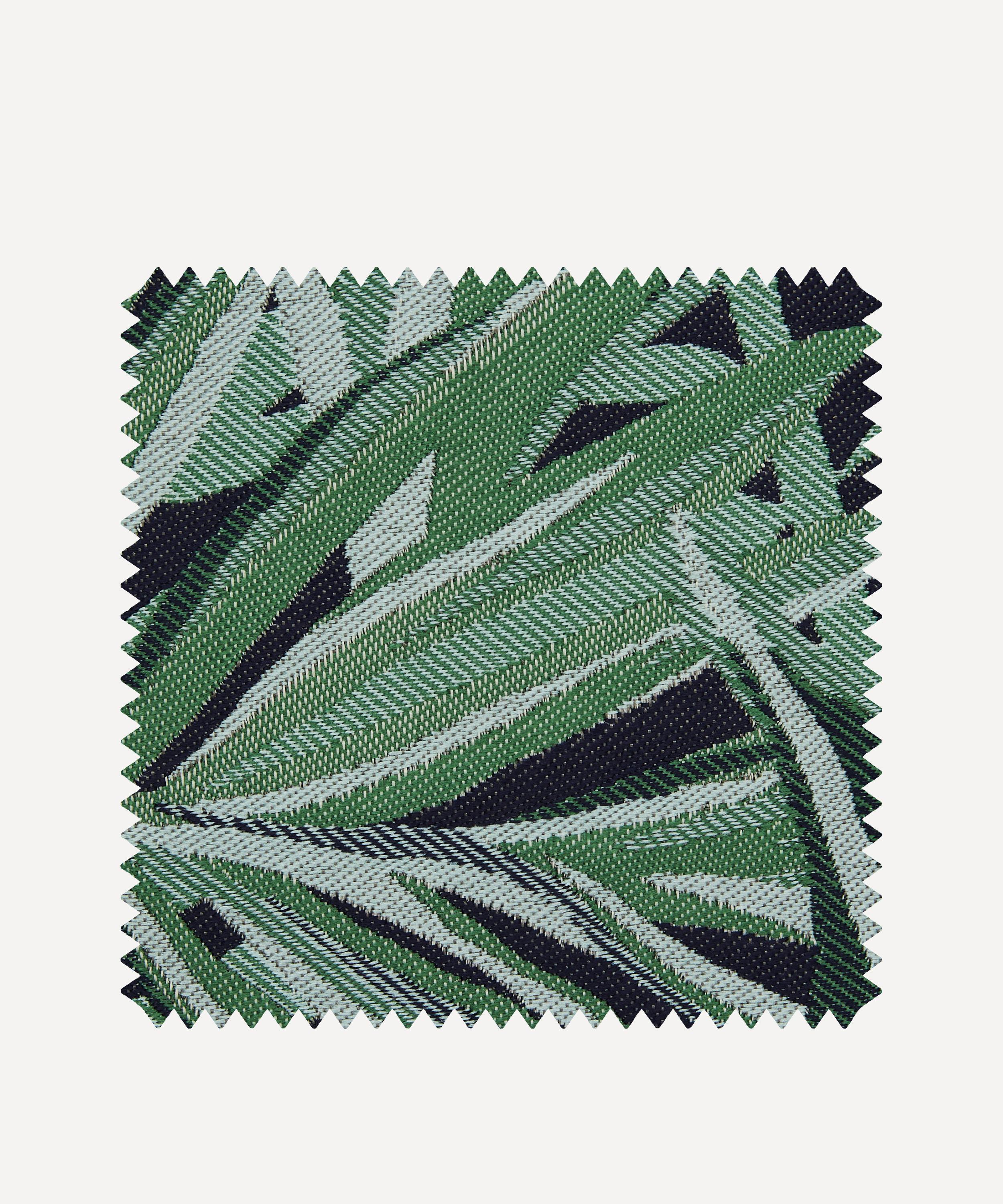 The design is translated onto Lovell – a fine quality jacquard woven in Italy. Overlapping palm leaves create a lush jungle canopy filled with light and shadow, subtle movement, definition, and depth while a combination of matte and shine yarns produce a sophisticated effect. Designed for outdoor use only, this furnishing fabric is suitable for light domestic upholstery, drapery and cushions.