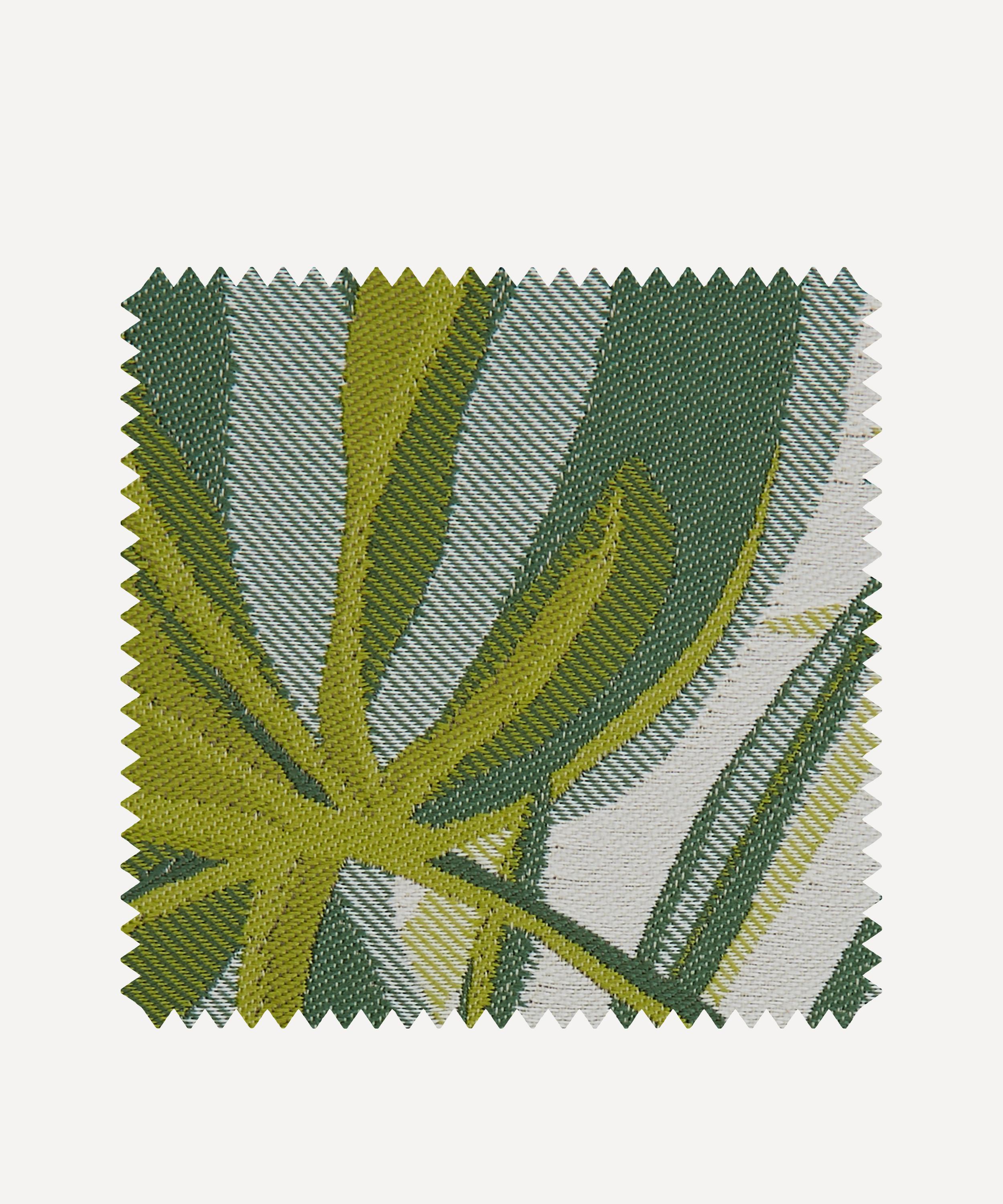 The design is translated onto Lovell – a fine quality jacquard woven in Italy. Overlapping palm leaves create a lush jungle canopy filled with light and shadow, subtle movement, definition, and depth while a combination of matte and shine yarns produce a sophisticated effect. Designed for outdoor use only, this furnishing fabric is suitable for light domestic upholstery, drapery and cushions.
