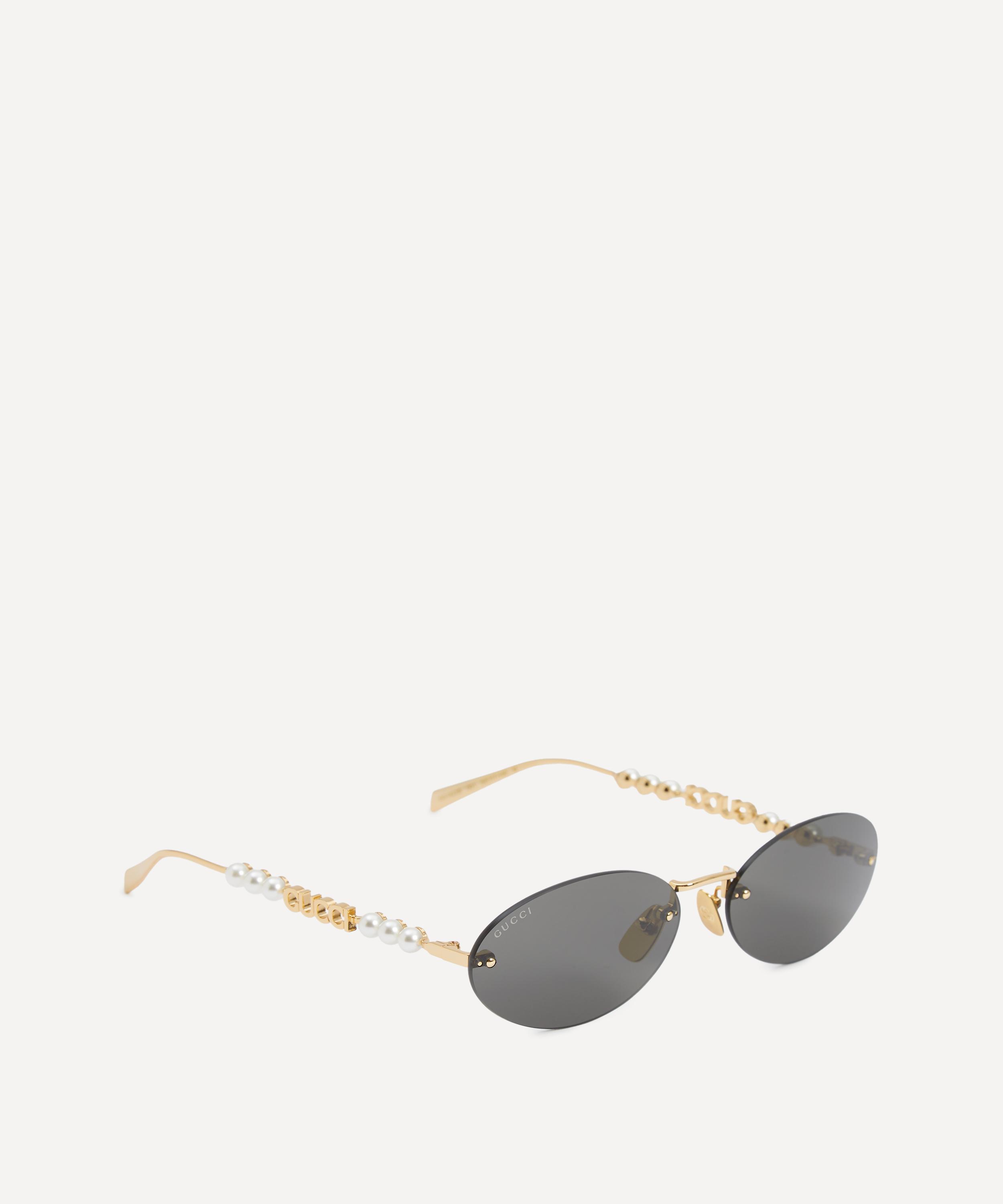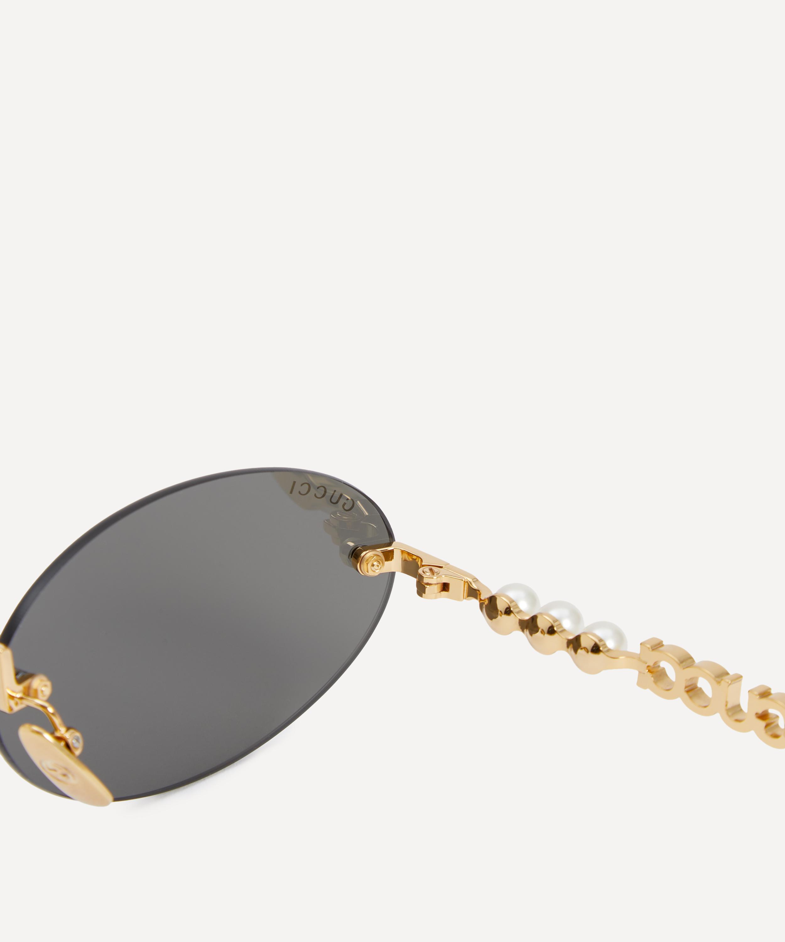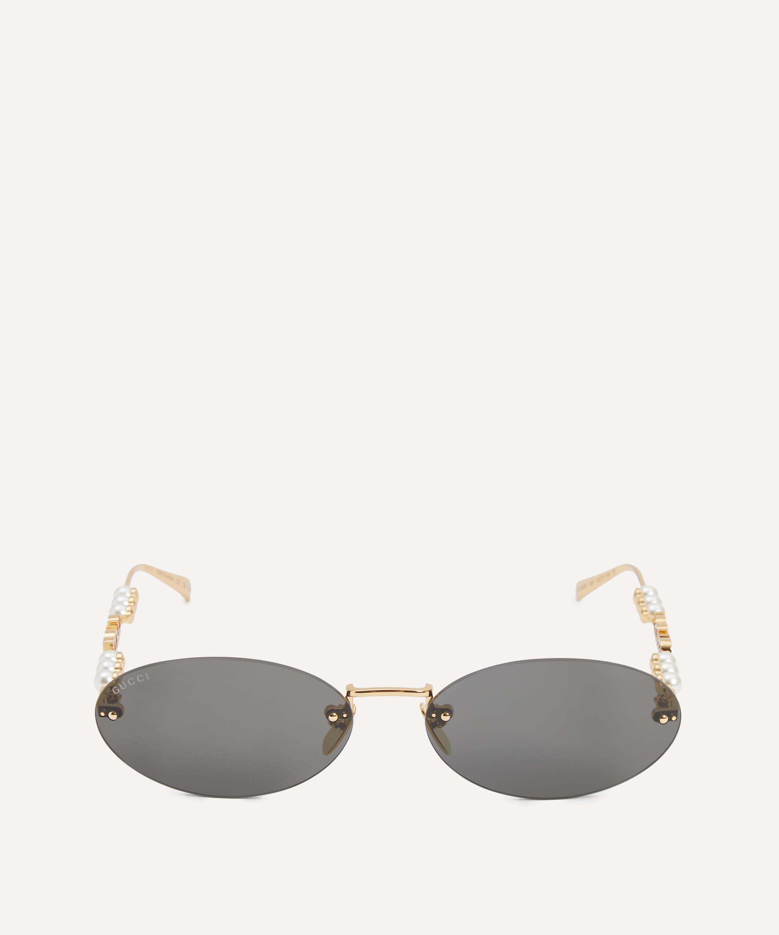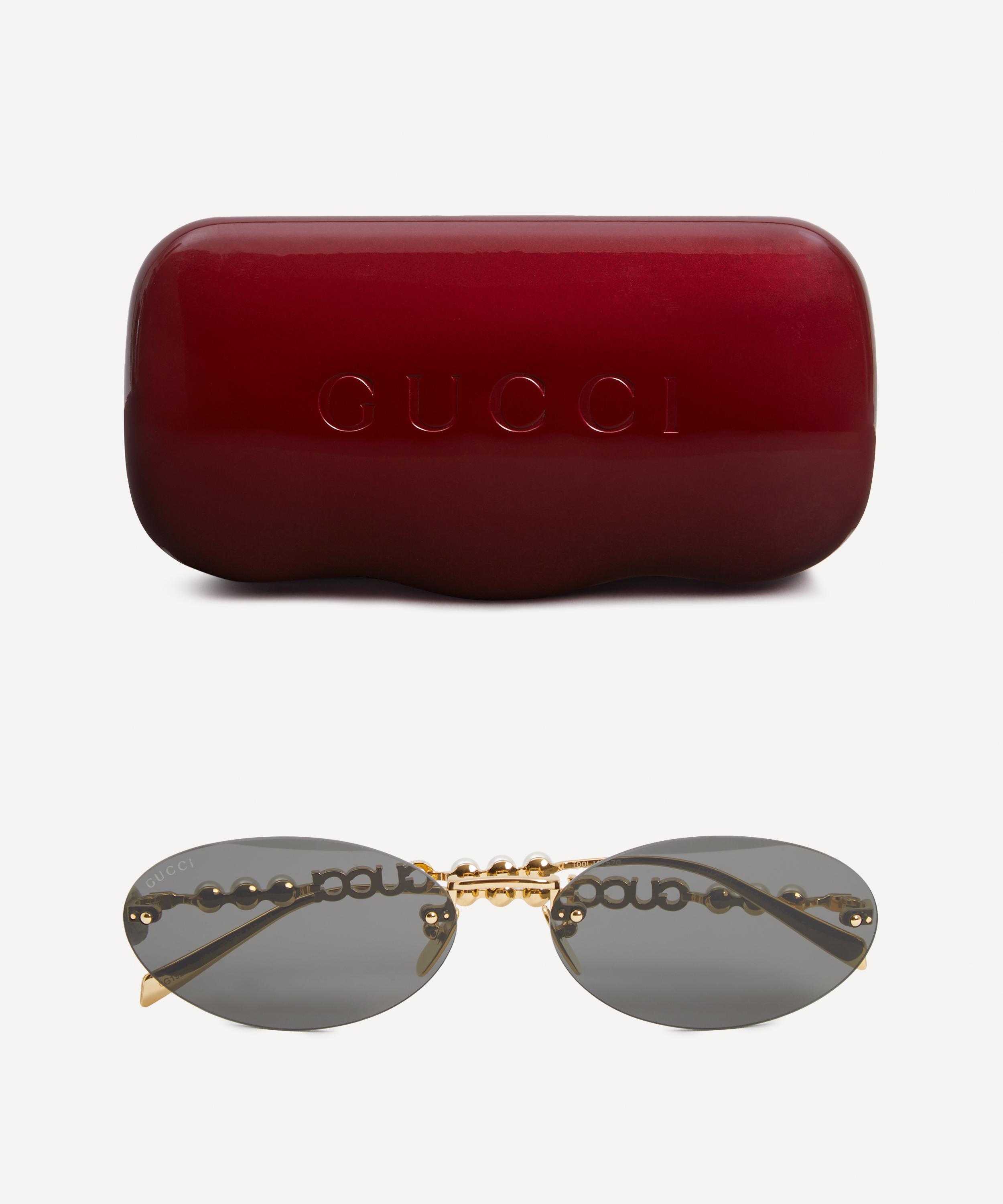 Meticulously crafted in Japan, the pair exude glamour with their gleaming gold-toned frame fitted with tinted lenses to shade and protect your eyes from UV light. Complete with the label's iconic cut-out logo to the temples adorned with a trio of lustrous pearls at either side, they offer a perfect blend of timeless elegance and modern luxury.