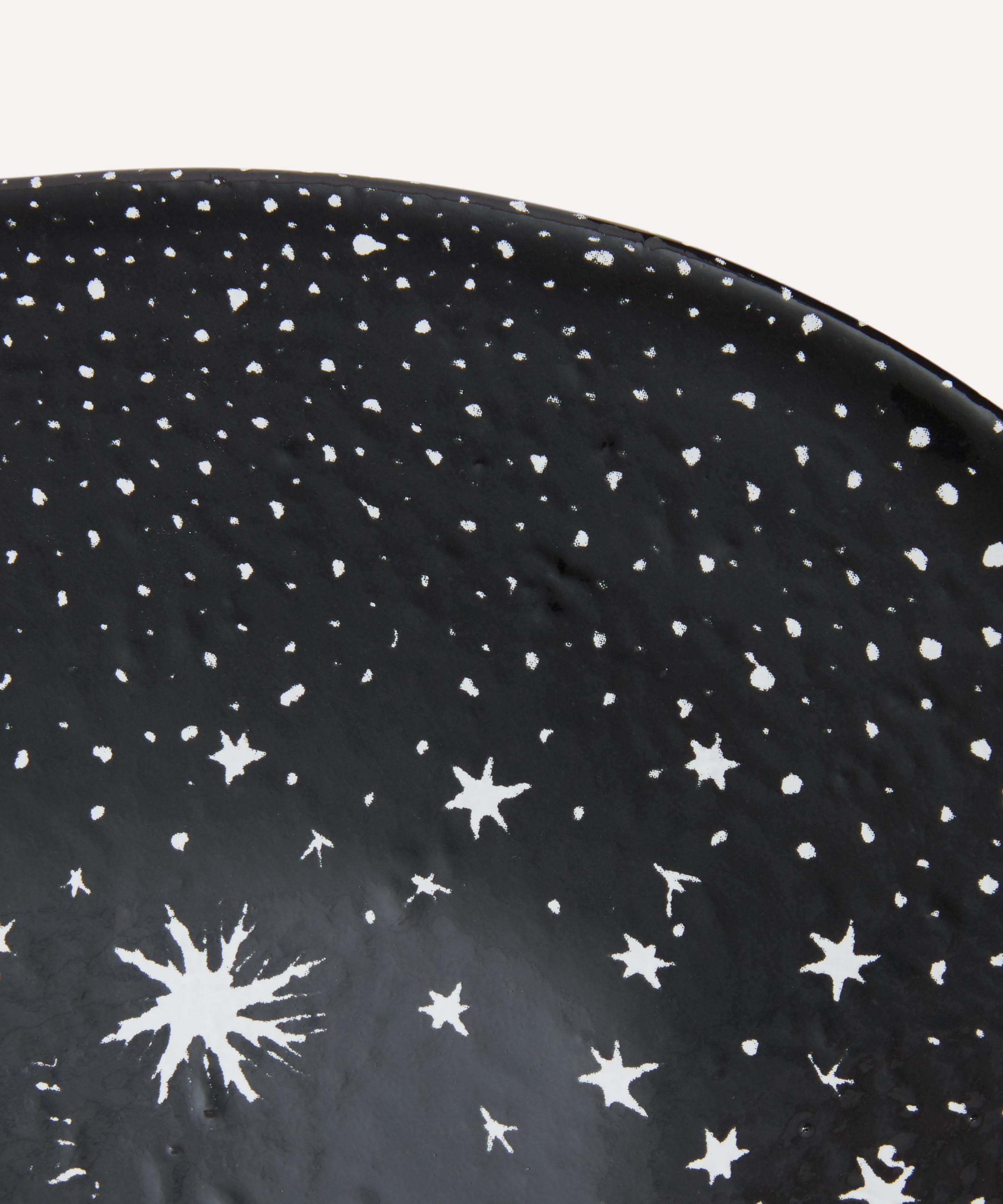 Votary of pre-industrial fabrication, Astier de Villatte is celebrated for being the one and only studio in Paris to hold and harbour the traditions of artisanal ceramic production. Restoring the ancestral systems of moulding and stamping, this platter is made using handcrafting techniques from the Middle Ages which involve moulding a handmade sheet of clay, double firing the ‘biscuit’ piece and glazing the product in white enamel – a lengthy process that involves a drying time of up to one month. Characterised by an all-over celestial design, this platter is engraved with the brand’s signature crest - depicting an interlacing A & V - alongside the initials of one of the 40 master artisans who created it. Each handmade piece tells a beautiful story, it romances and imparts a sense of nostalgia into its owner. Arrange alongside glazed bowls and plates in the collection to breathe an air of authenticity into your table setting.