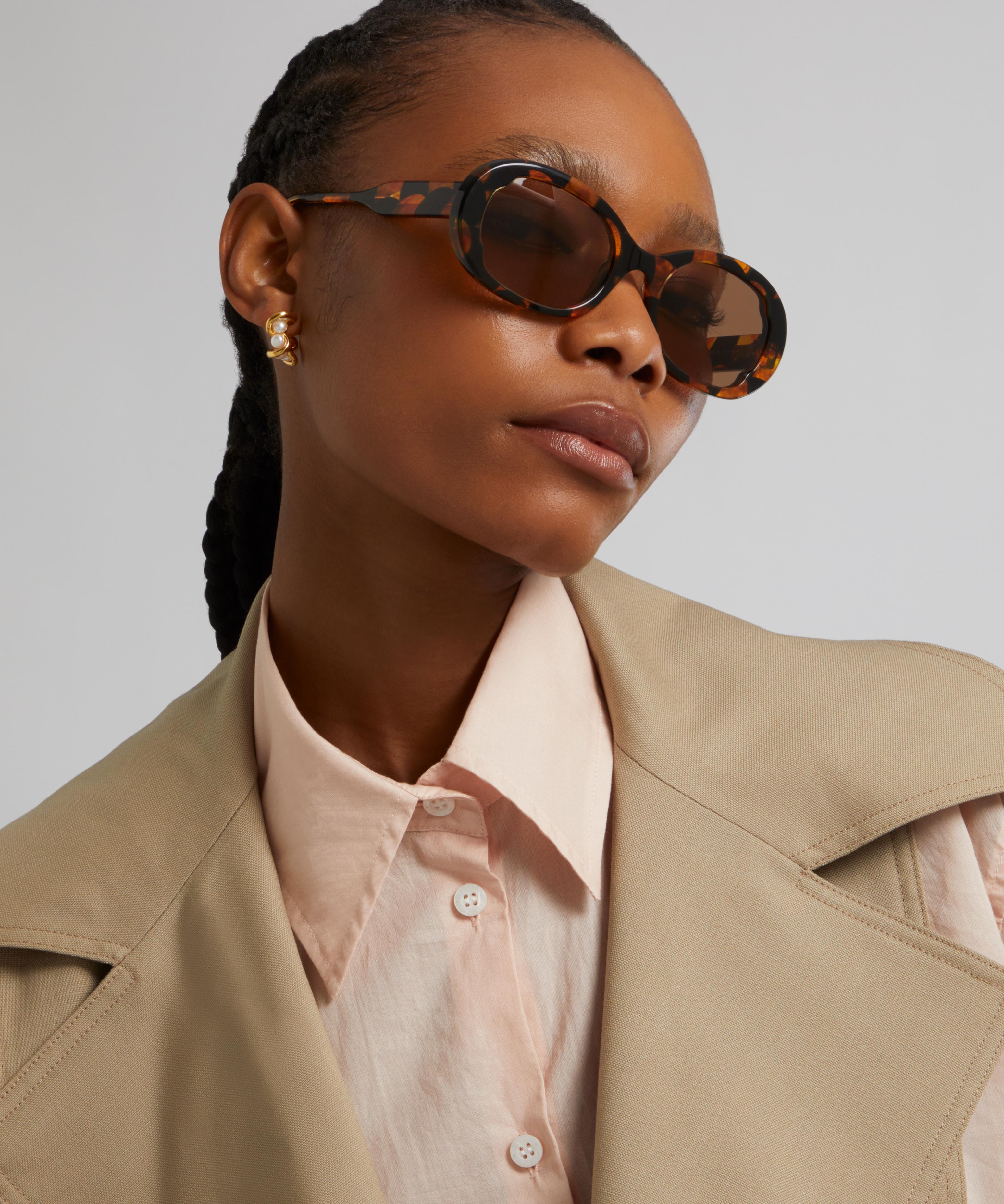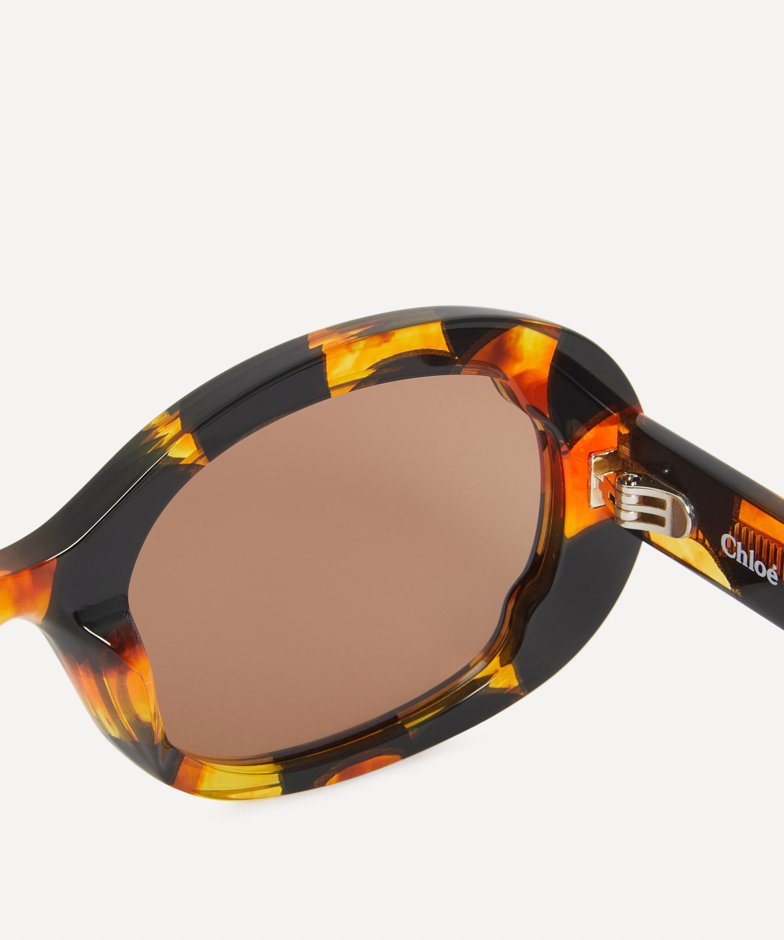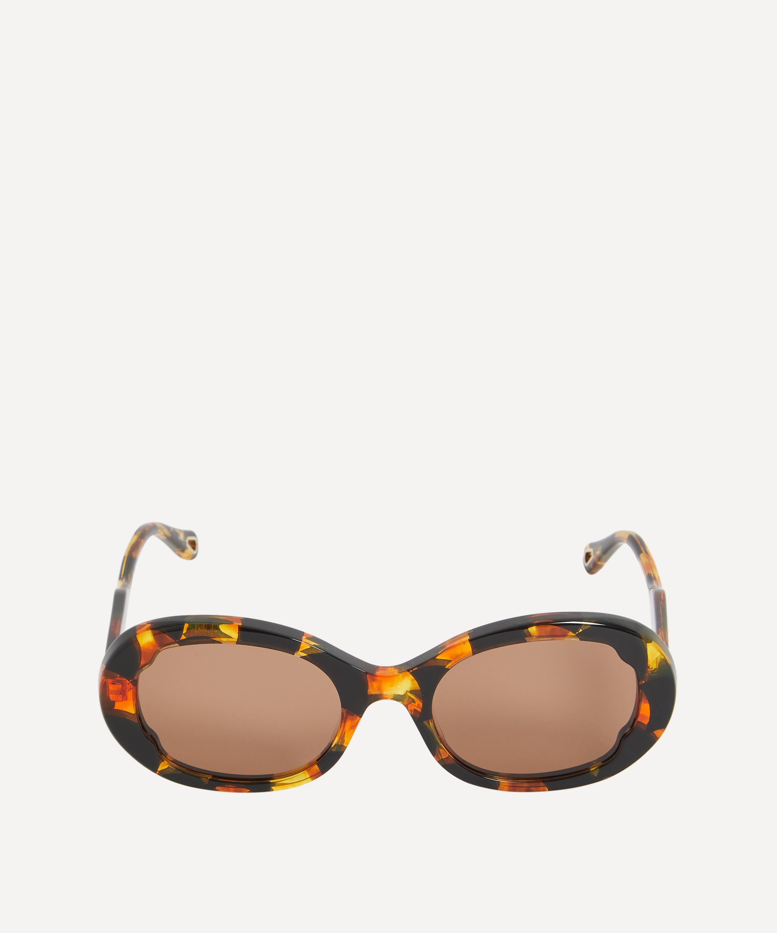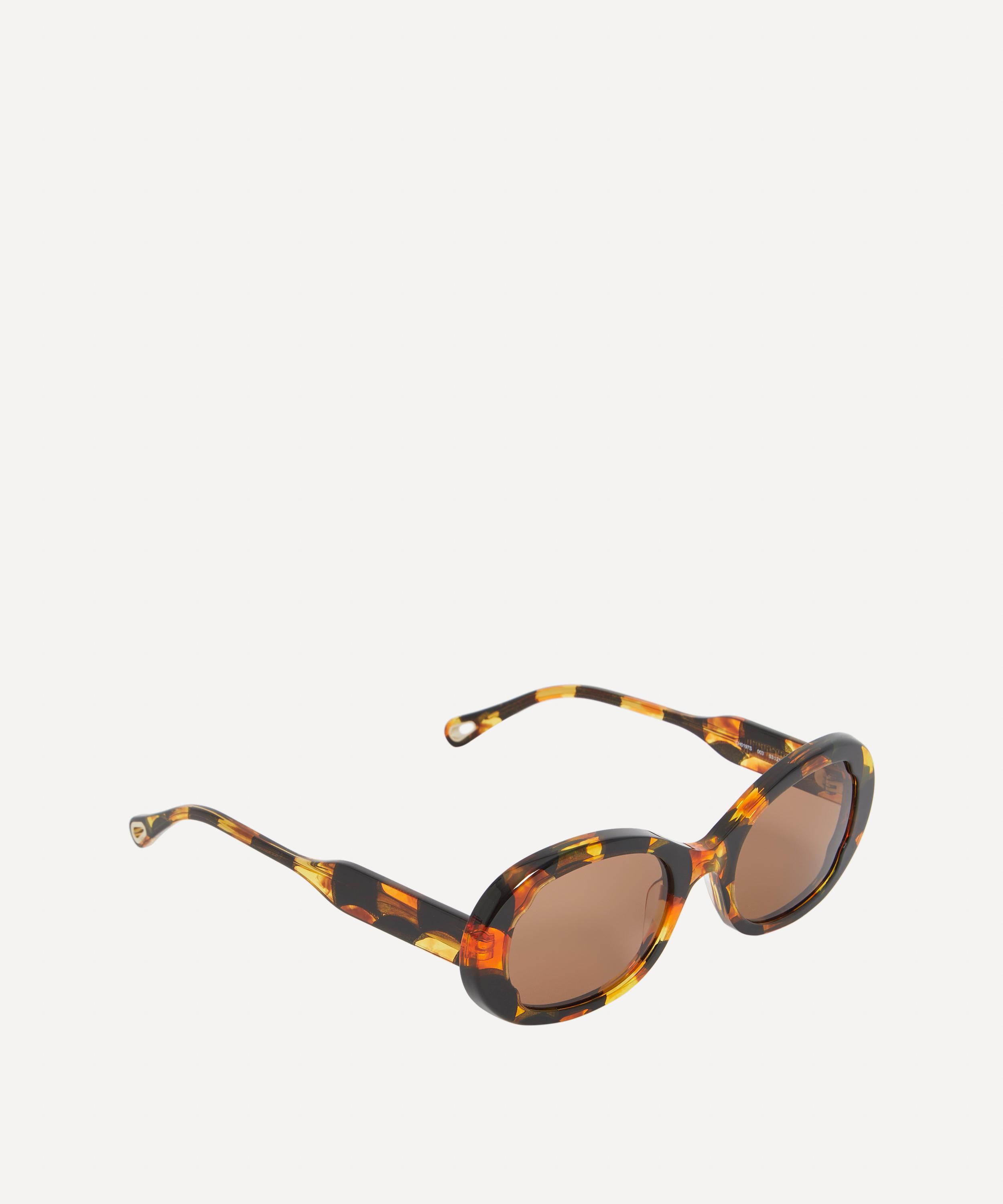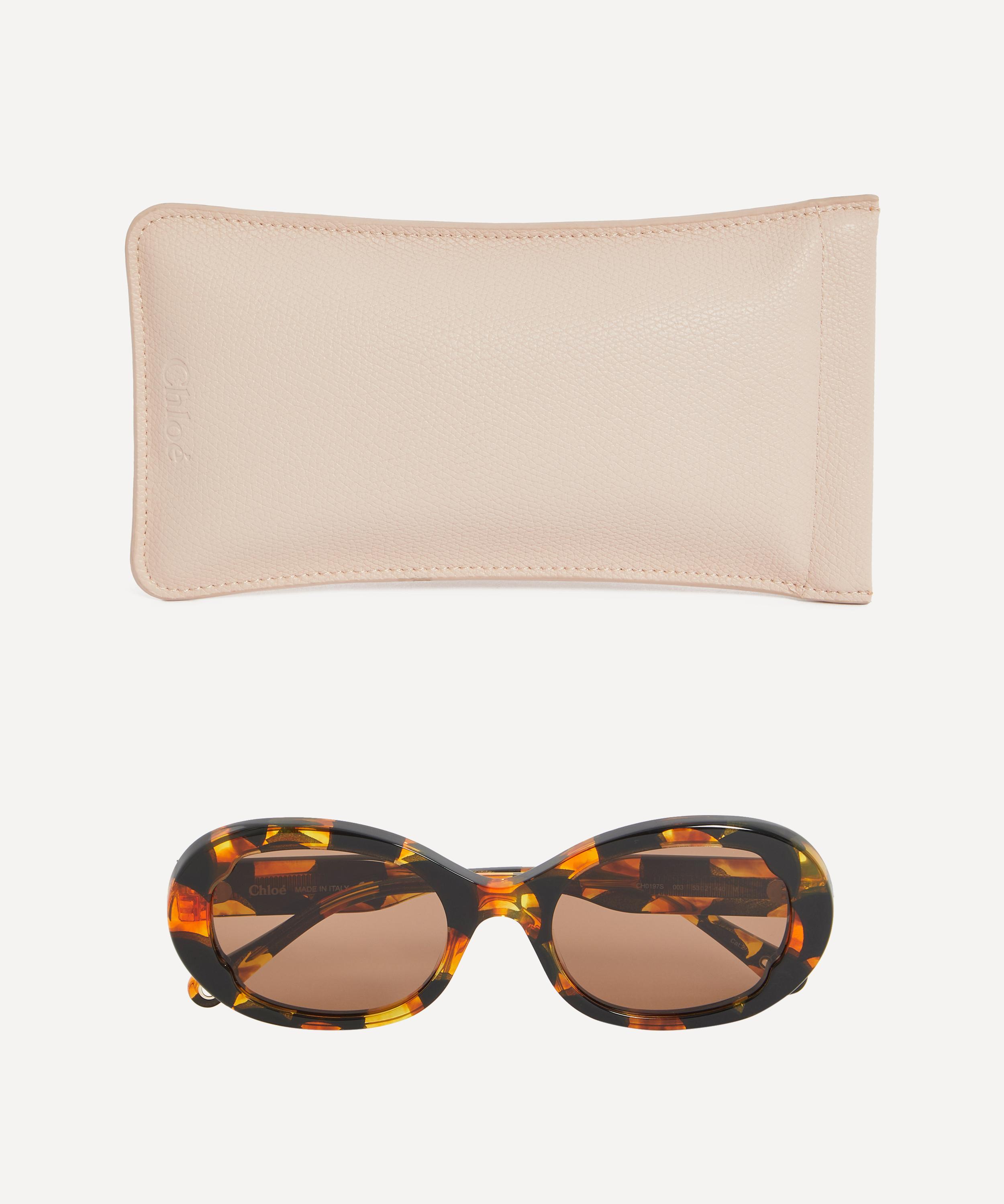 A statement-making signature style, these oval sunglasses from Chloé showcases quality craftmanship in a small-but-mighty form. This chic pair features an oval silhouette that further accentuates the style's glamorous aesthetic. Crafted from premium acetate in a Havana design with tinted lenses, they’re finished with gold-tone branding to the temples – simply pair with polished gold jewellery for an instantly elevated look.