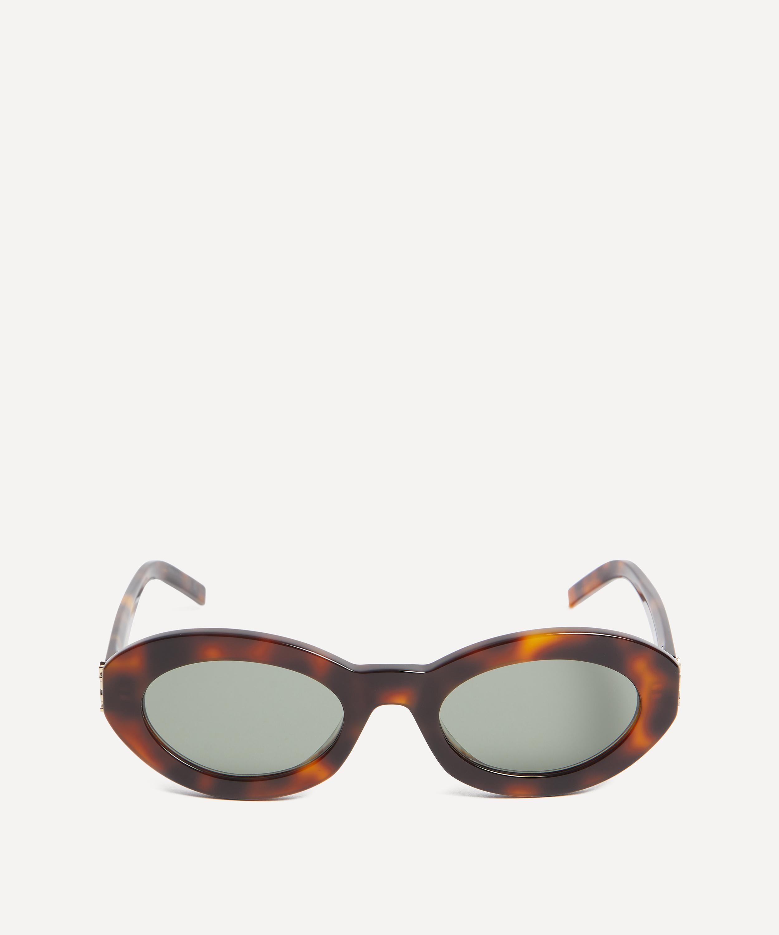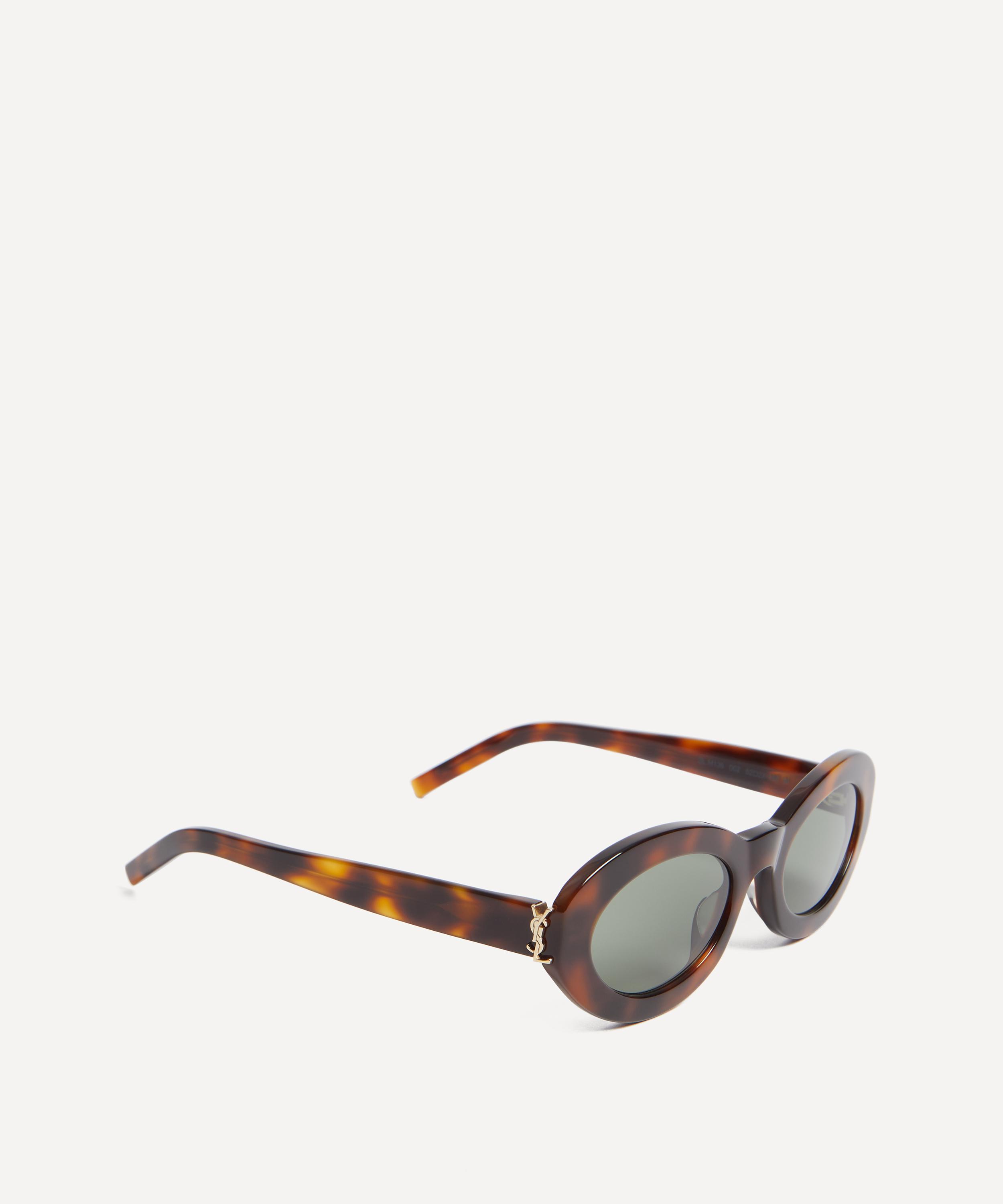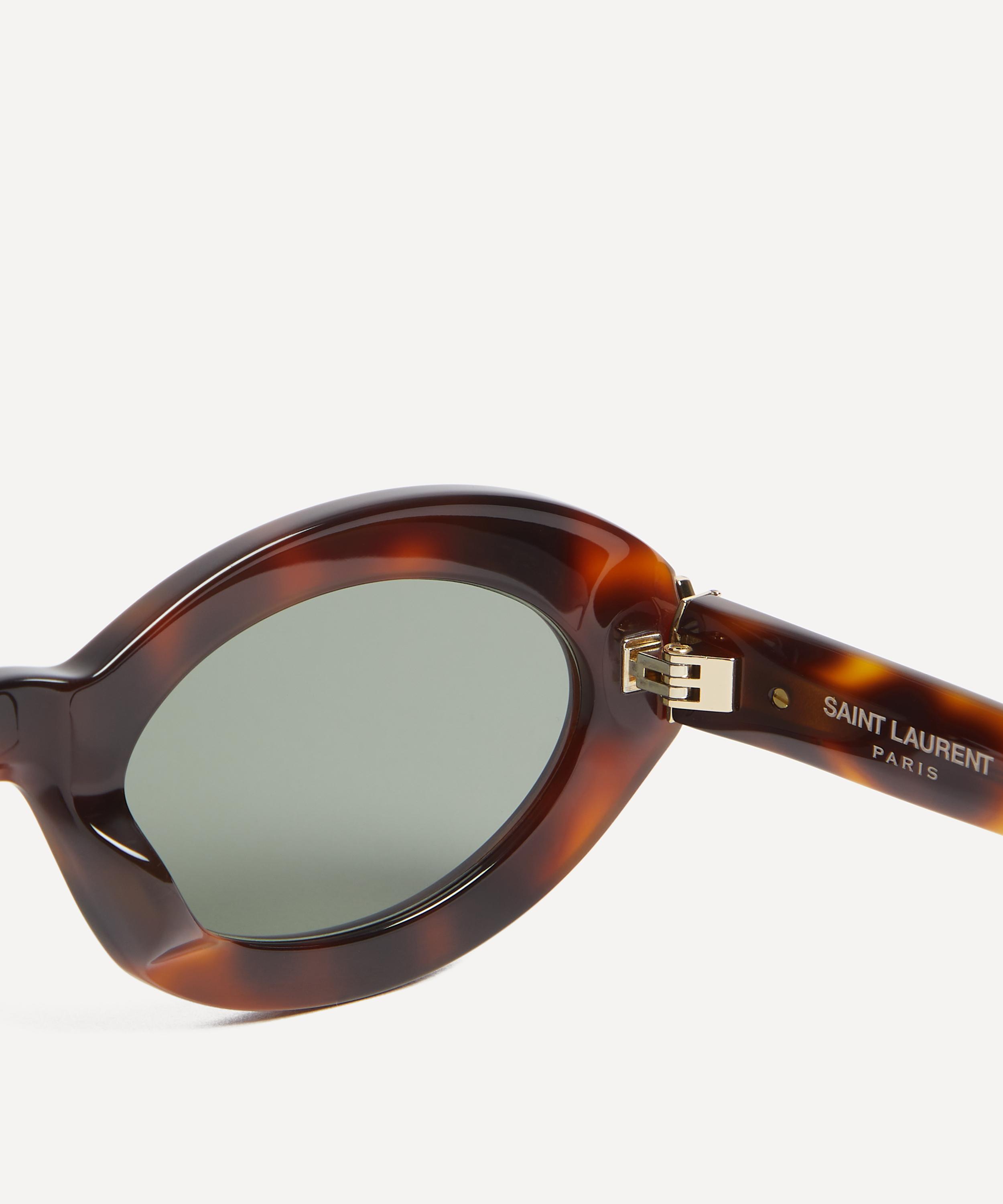 Confidently complete any curated look with these stylish oval sunglasses from fashion-house Saint Laurent. A must-have pair in your repertoire, they feature a thick oval frame, crafted from tortoiseshell acetate with green-tinted lenses and a subtle brand logo to the temples - perfect for sunny city strolls, or days spent on the beach.