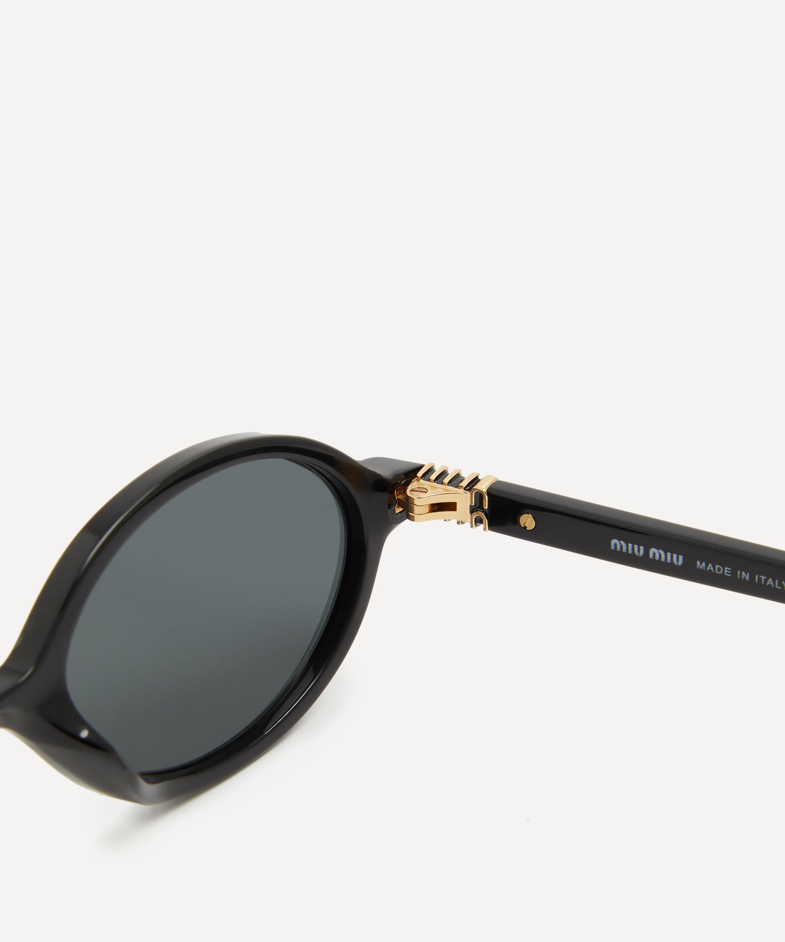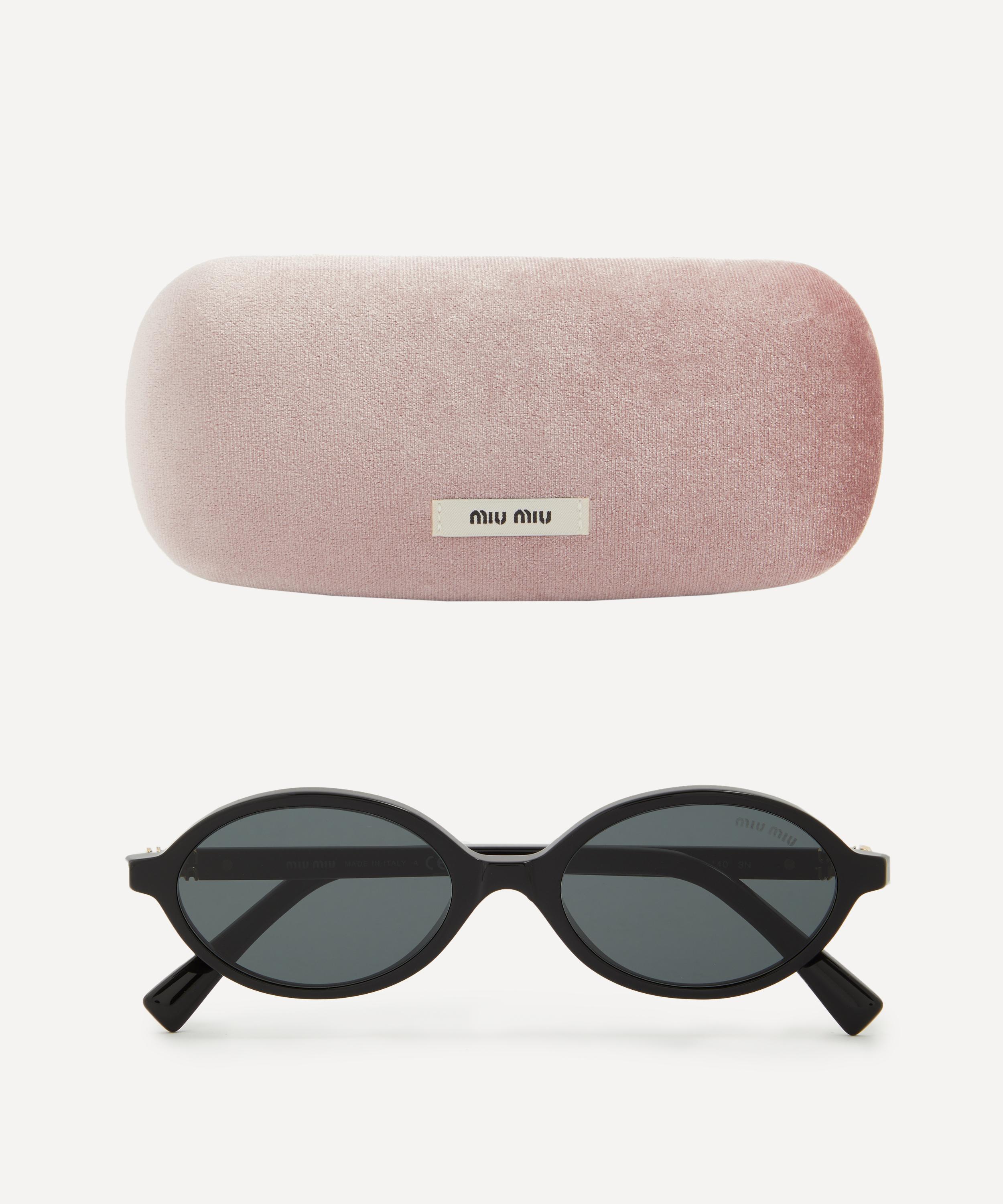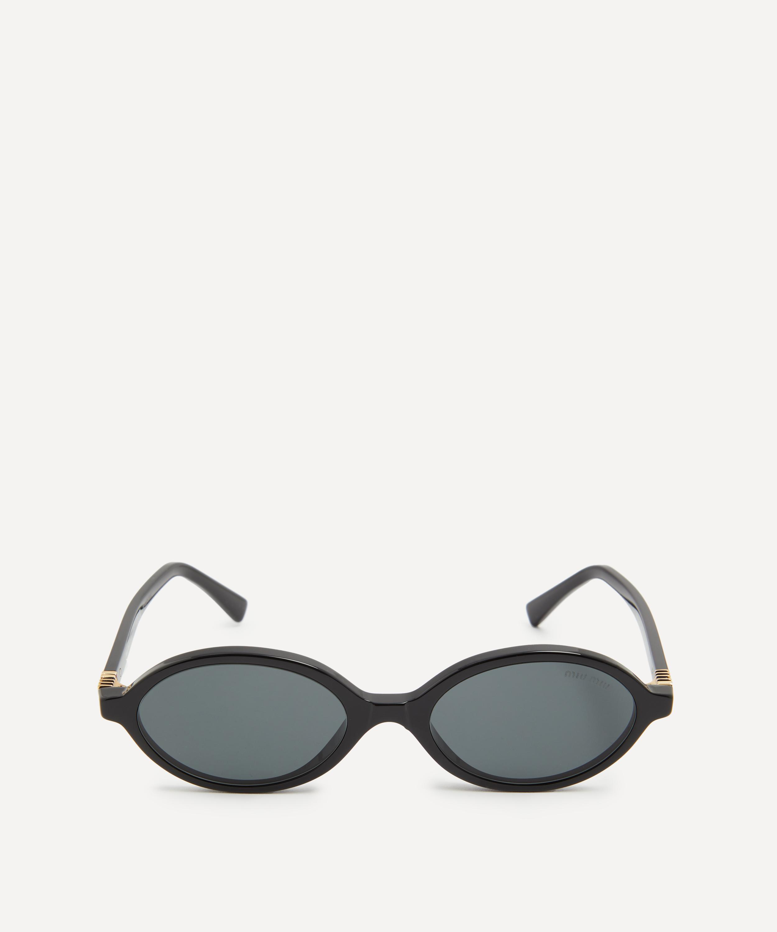 Heighten the impact of any attire with these oval sunglasses from Miu Miu. Expertly crafted from black acetate, to create a statement pair that instantly draws the eye, these sunnies are fitted with a saddle nose bridge and grey tinted lenses to shade and protect your eyes from UV light. Complete with the signature branding at the temples, they make for an ultra-chic finish to your curated looks.