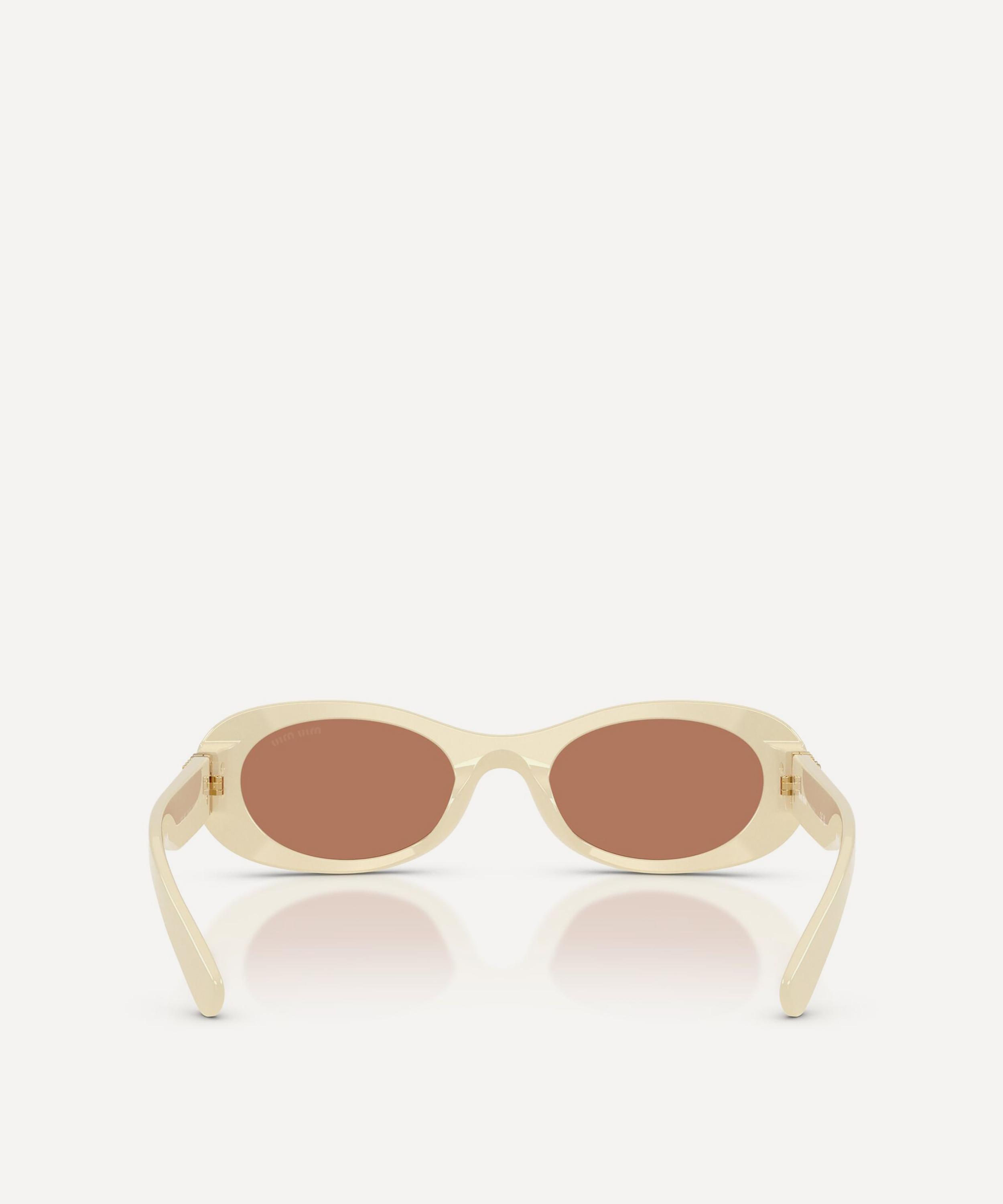 Heighten the impact of any attire with these oval sunglasses from Miu Miu. Expertly crafted from white acetate, to create a statement pair that instantly draws the eye, these sunnies are fitted with a comfortable saddle nose bridge and brown-tinted lenses to shade and protect your eyes from UV light. Complete with signature branding at the temples, they make for an ultra-chic finish to your curated looks.