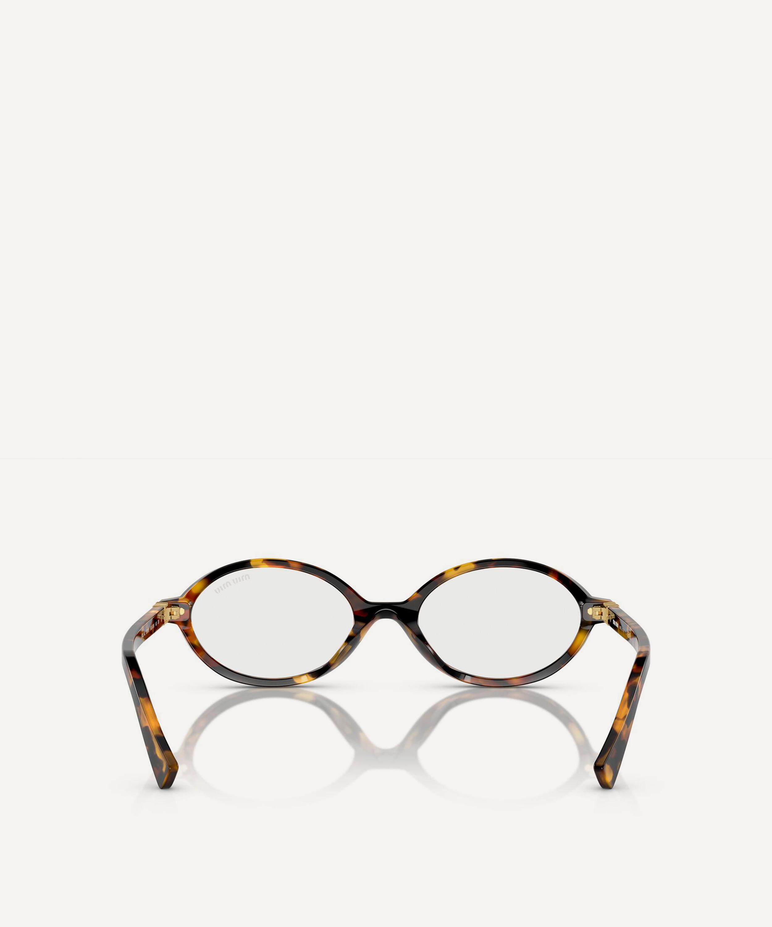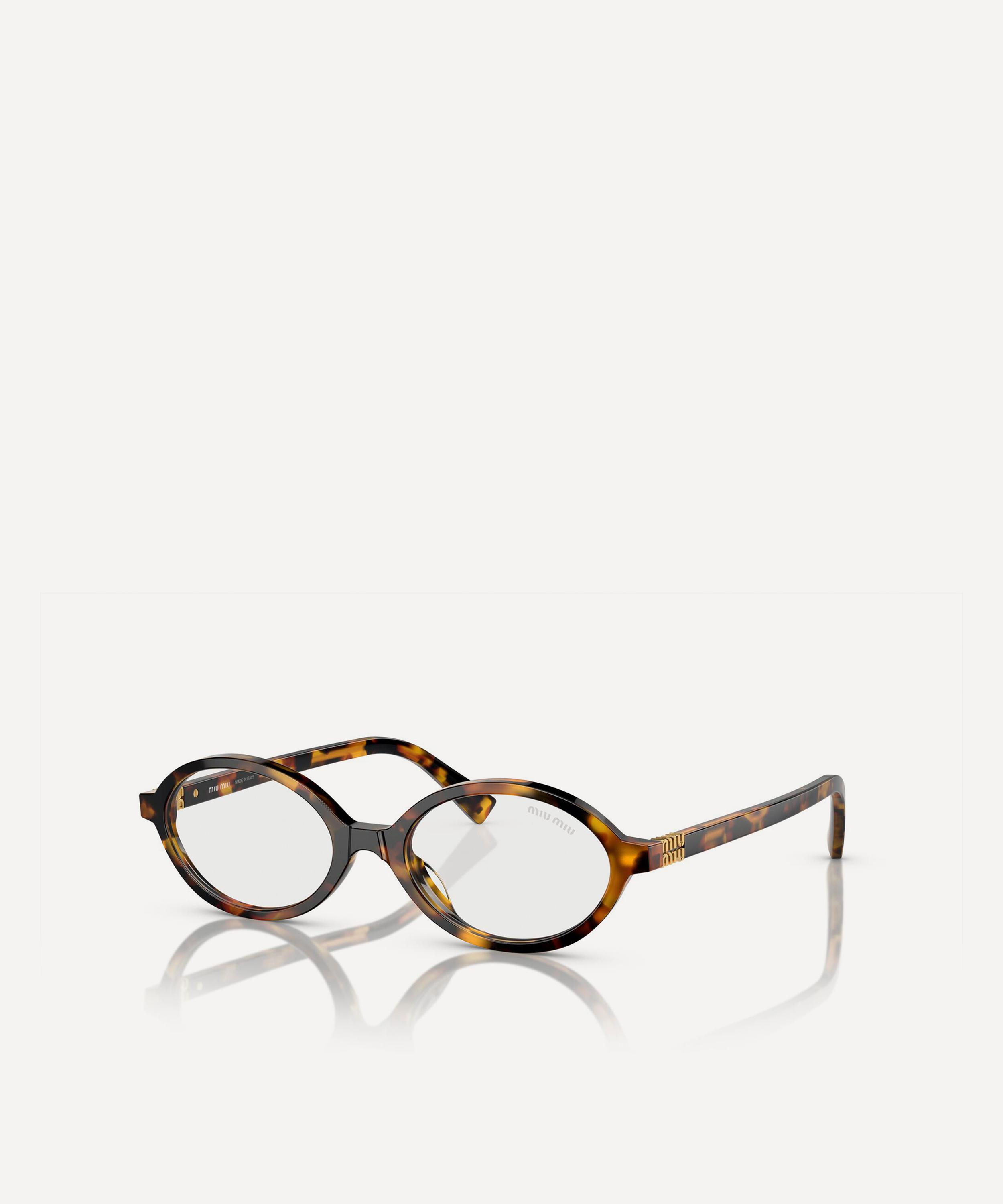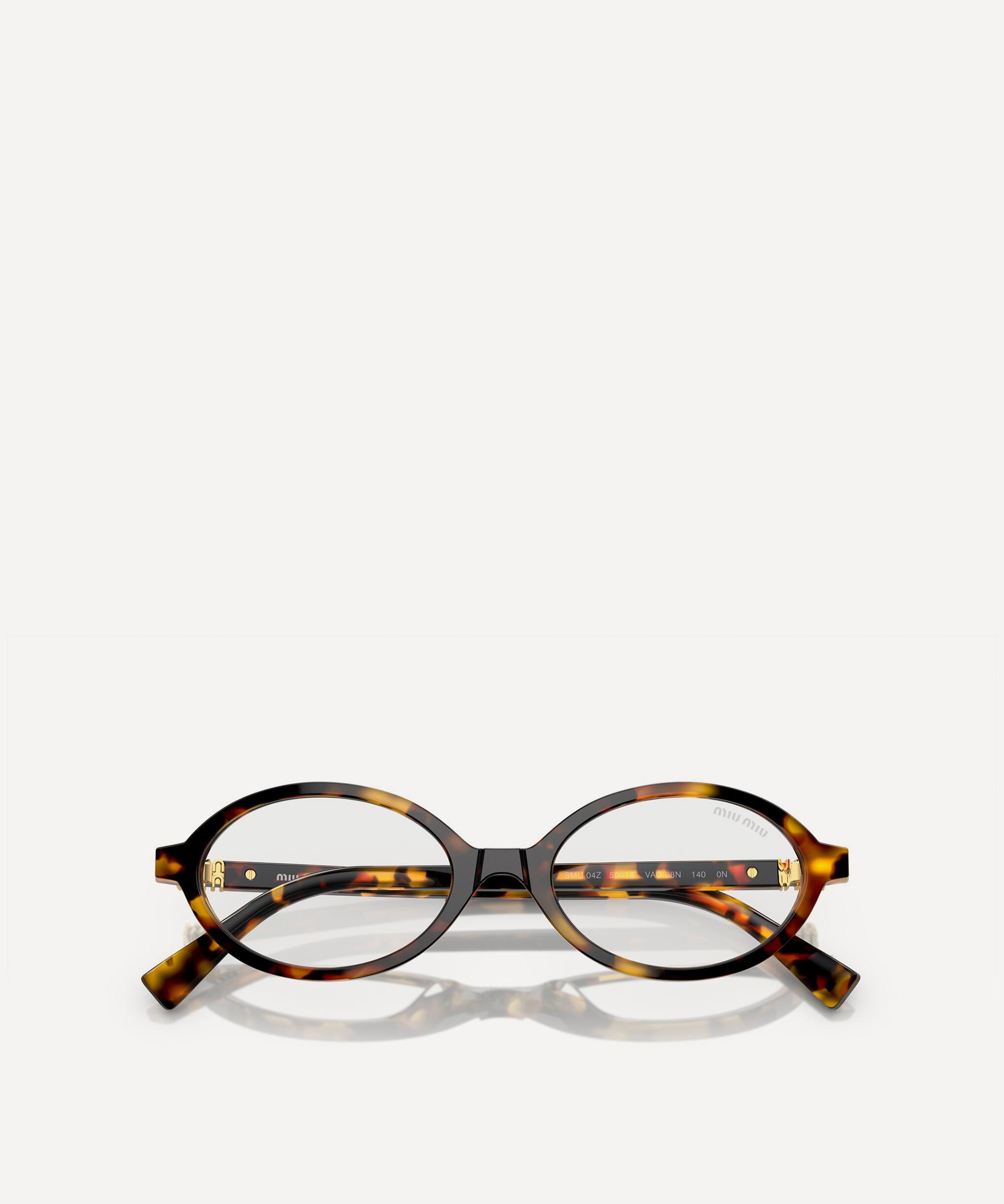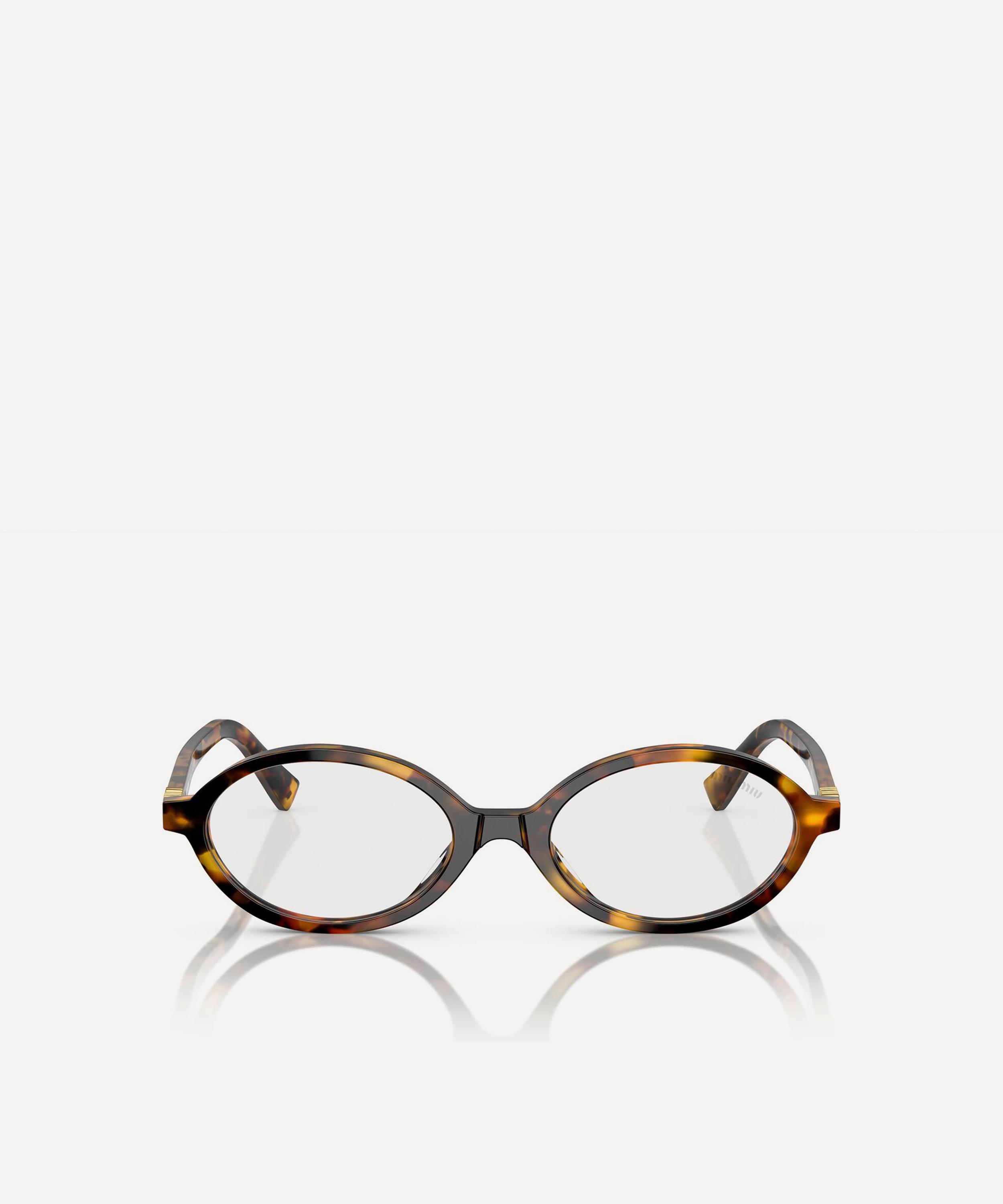 Heighten the impact of any attire with these oval sunglasses from Miu Miu. Expertly crafted from Havana acetate to create a statement pair that instantly draws the eye, these sunnies are fitted with a comfortable saddle nose bridge and clear, blue-control lenses to reduce blue light exposure. Complete with the signature branding at the temples, they make for an ultra-chic finish to your curated looks.