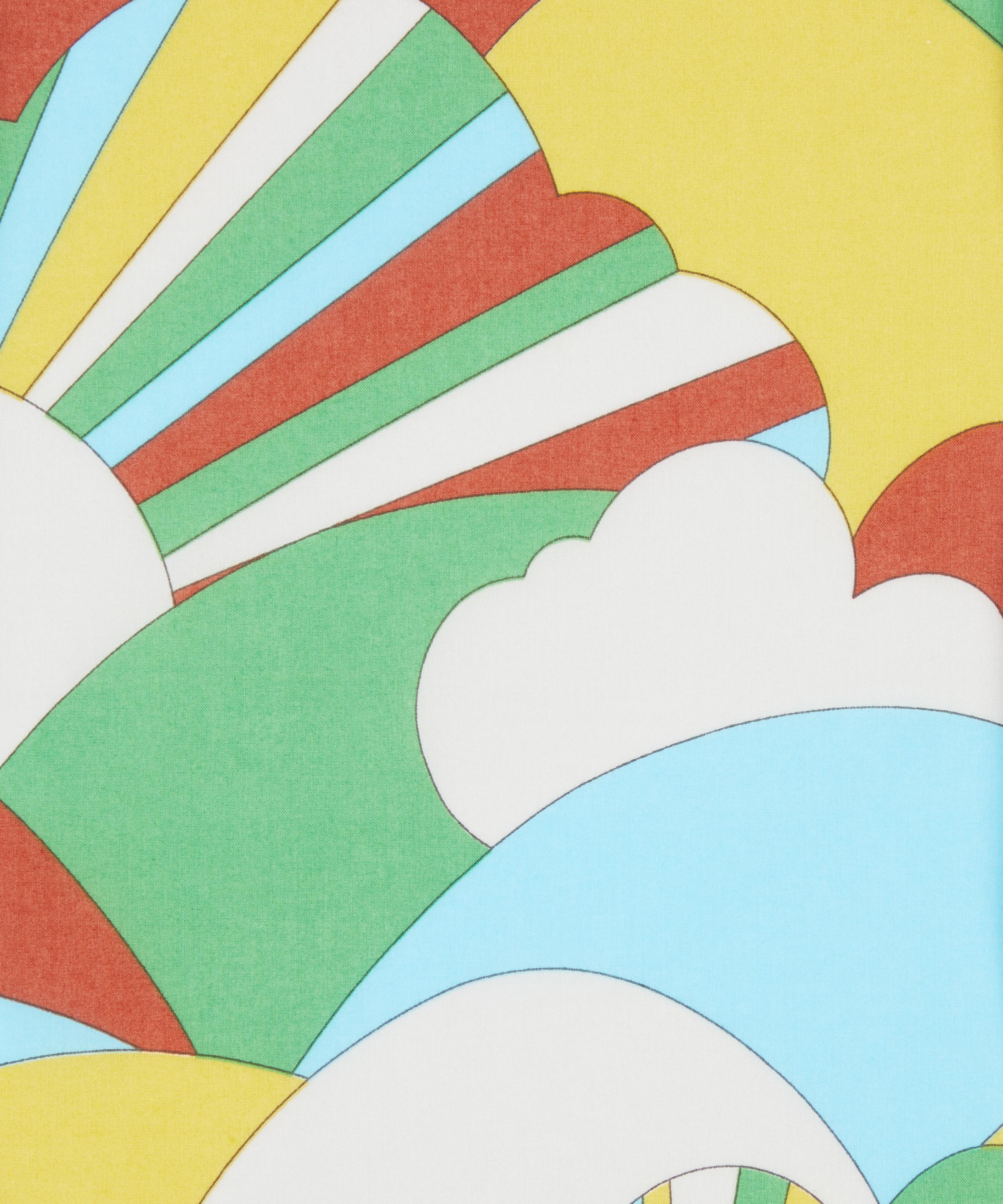 Hand painted in the Liberty studio, Over the Hills embodies the creative charisma of Bernard Nevill, the renowned British designer and Liberty’s design director of the 1960s. This bold geometric was inspired by Nevill’s distinctive approach to portraying landscapes. This print is part of The Cast act of Retold, bringing into the spotlight this play’s cast of architects, writers, artists, and designers have paved the way for the artistic movements Liberty have heralded since our doors first opened - leading figures that have played an integral part in weaving new narratives into the fabric of the building.