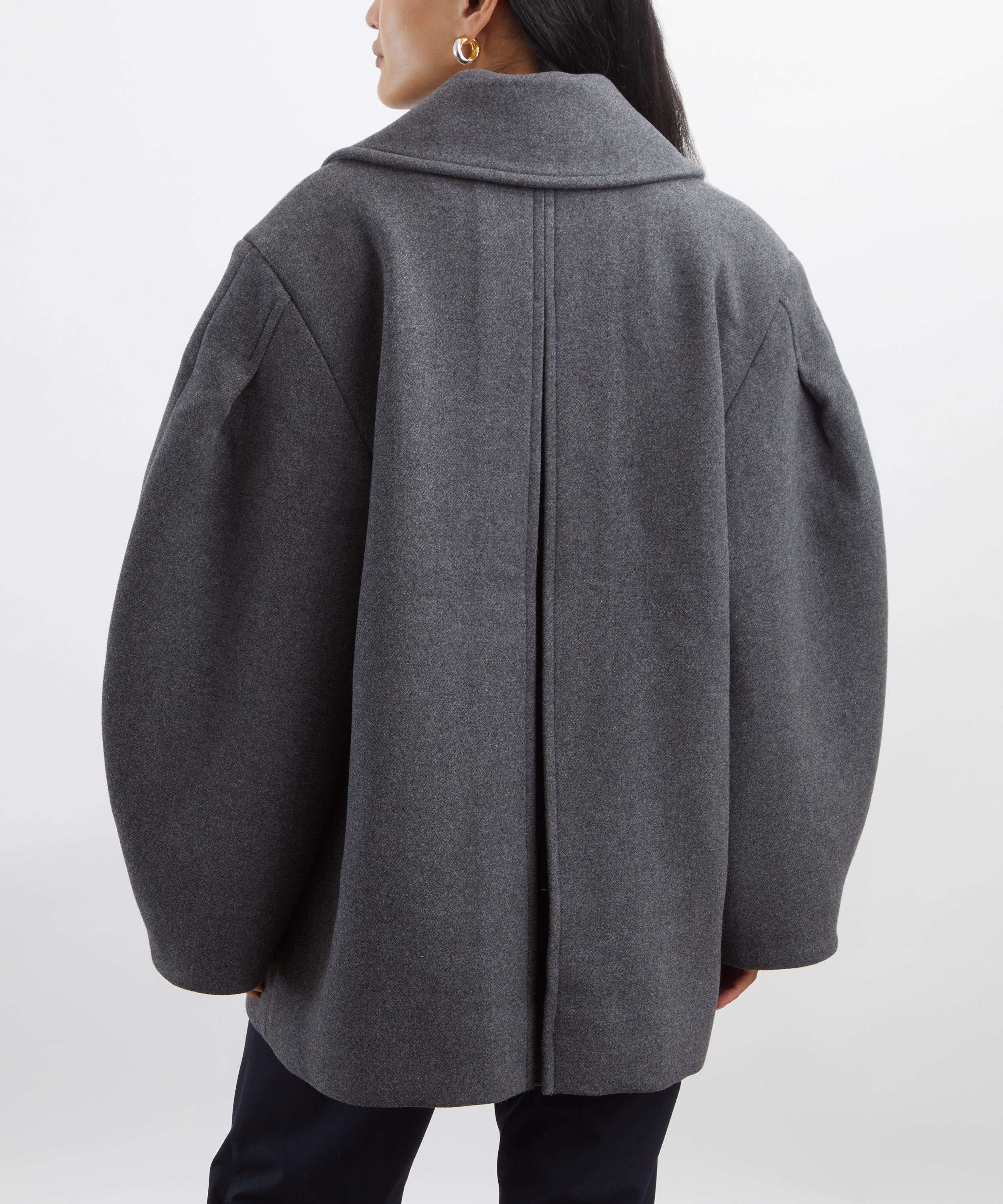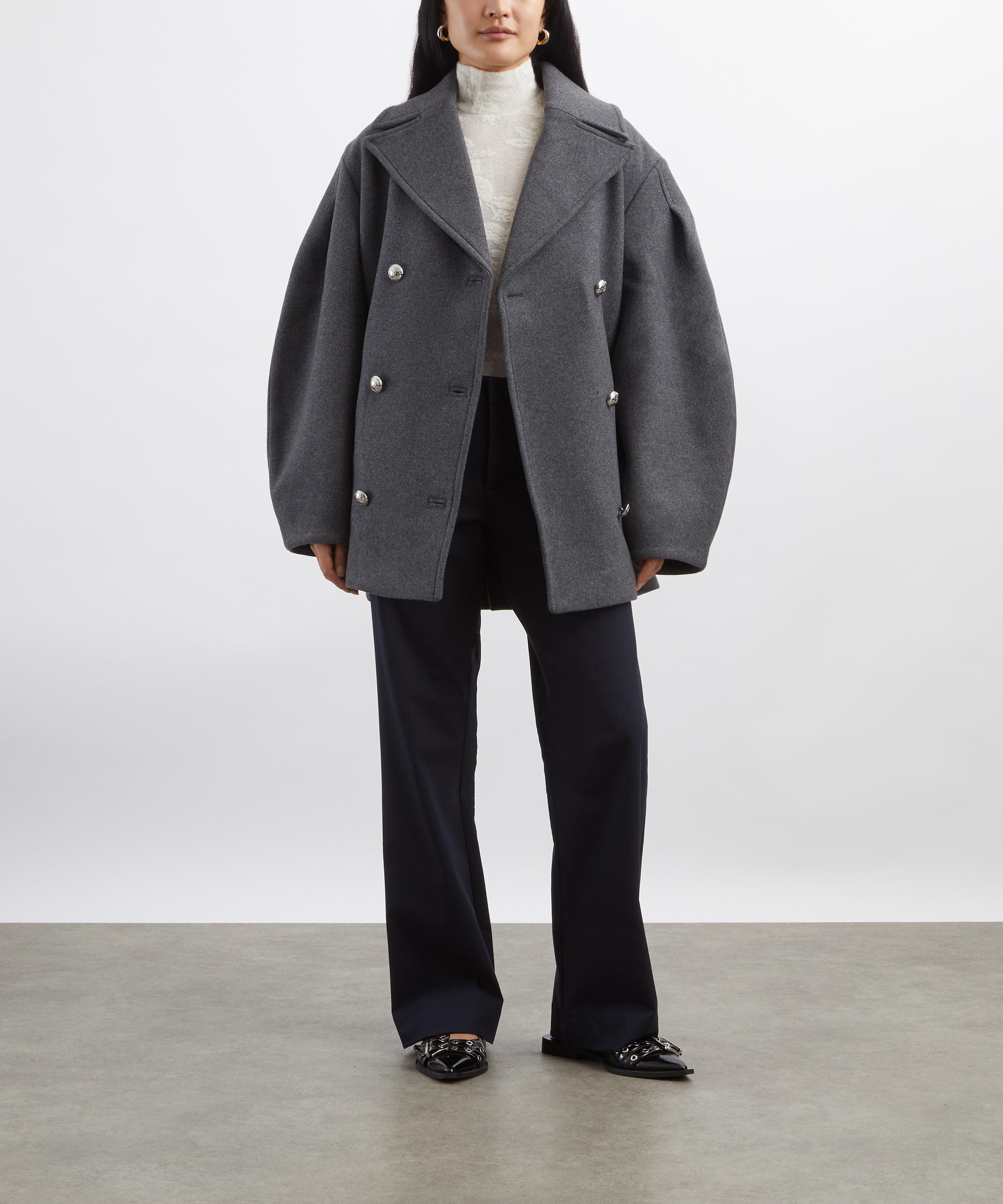 Crafted from a rich, luxurious wool blend, this contemporary take on the classic peacoat features a wide collar with notched lapels and a double-breasted closure with silver-tone buttons. Designed for an oversized fit, it's finished with long voluminous sleeves, a deep pleat at the centre back and a two side pockets that offer both practicality and style.