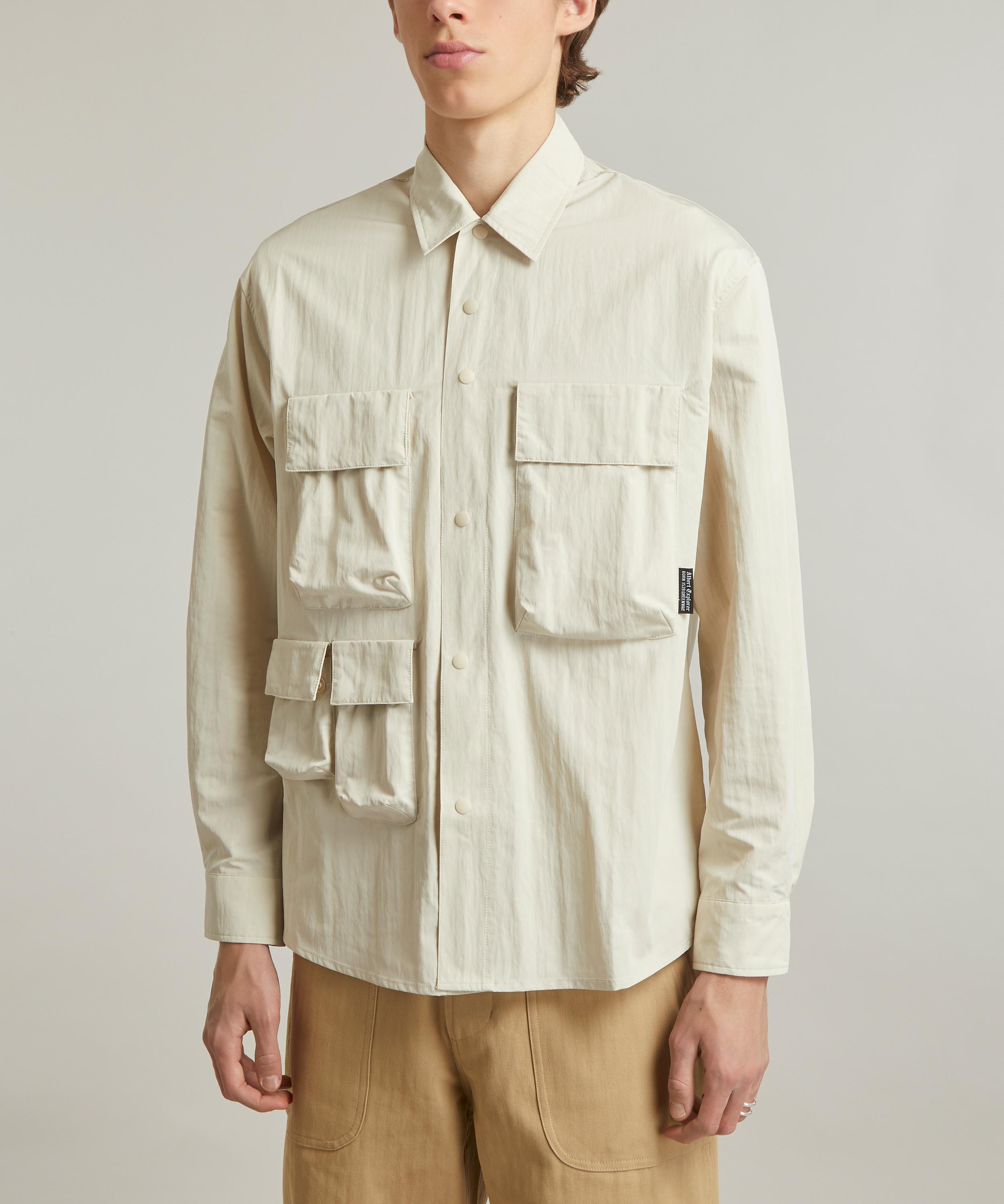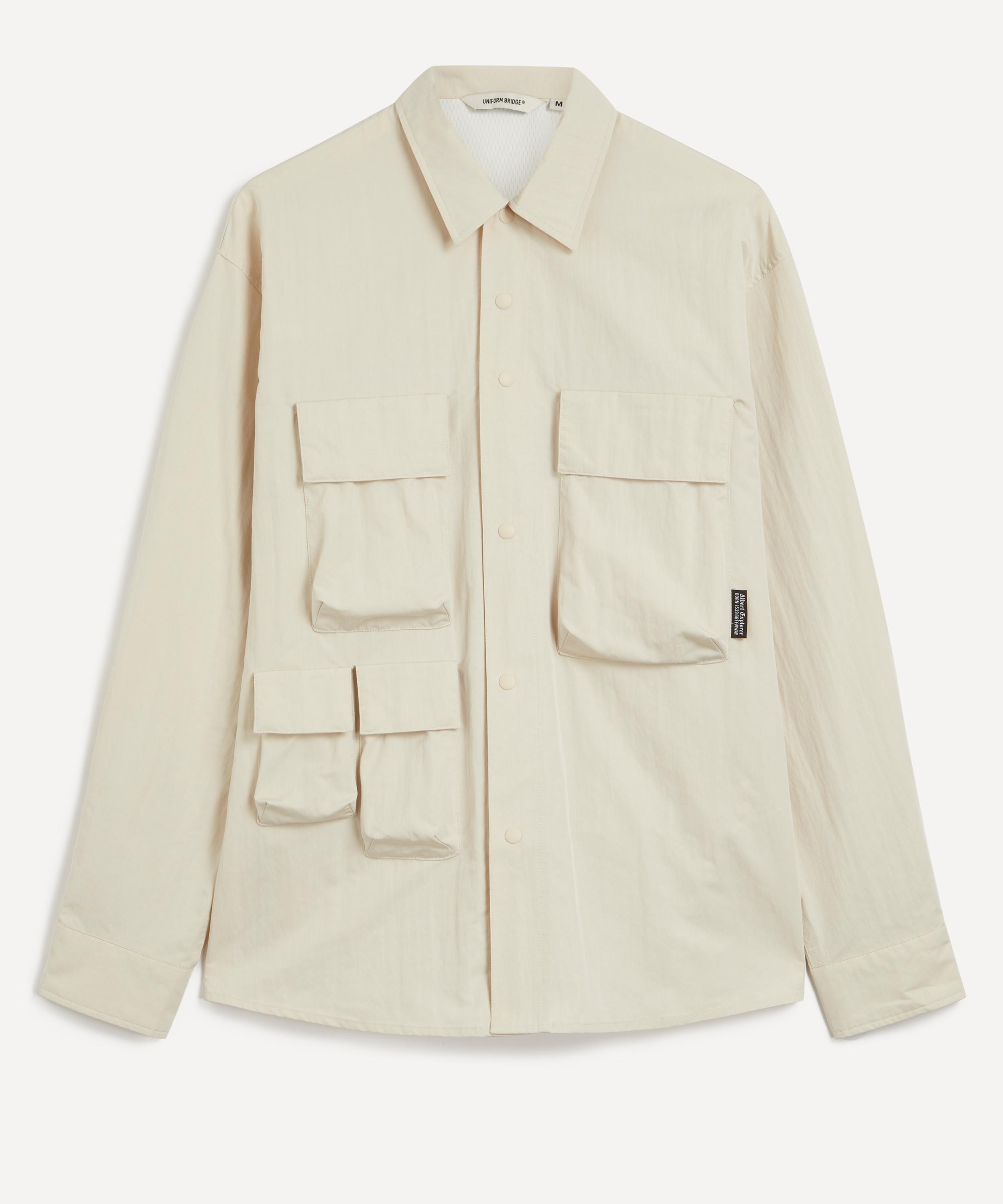 A contemporary take on American workwear with its functional, military-inspired detailing, this cotton-blend cream shirt has an oversized fit, and features multiple cargo pockets for an authentic utilitarian finish.