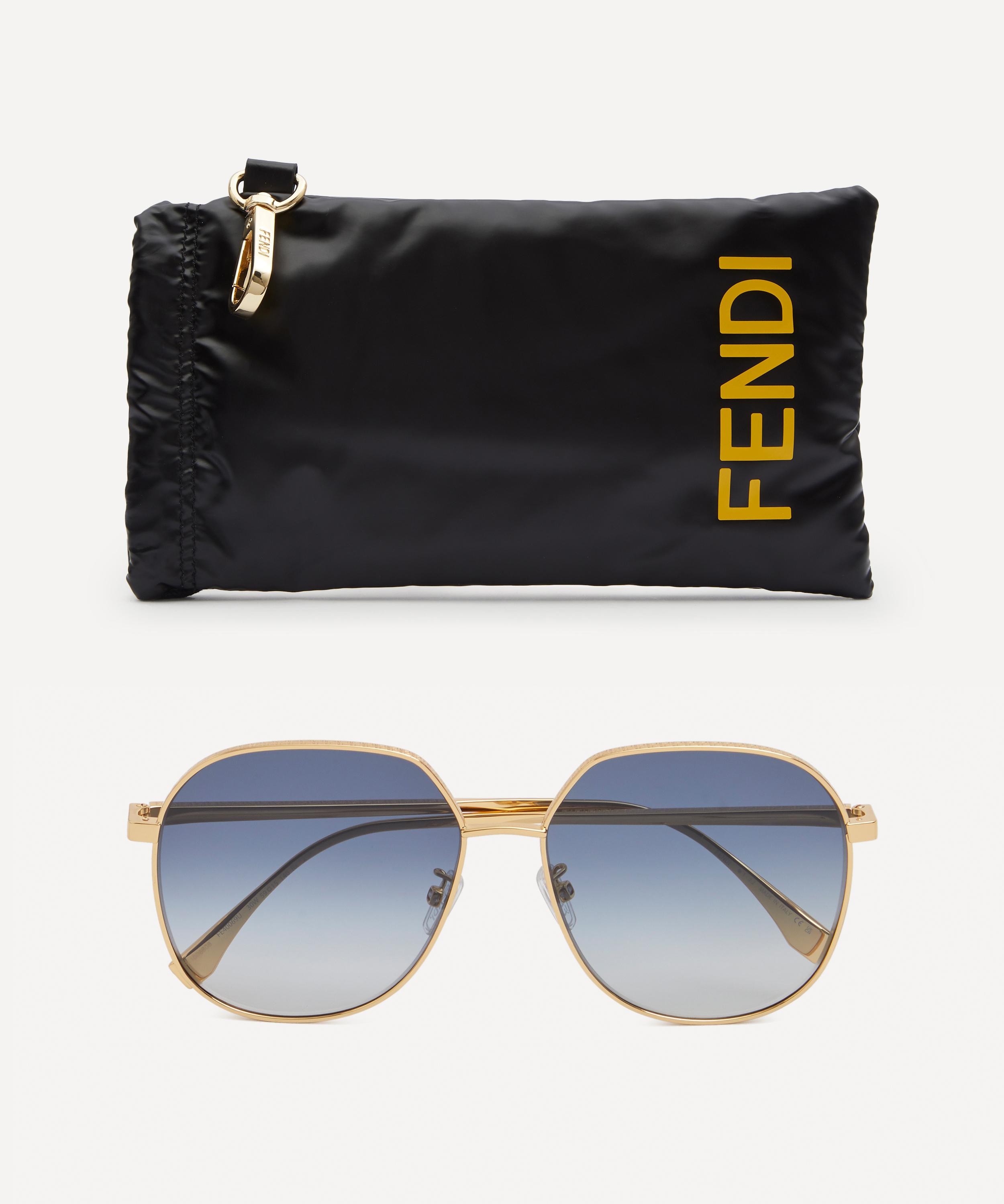 These round-frame sunglasses from Fendi offer a geometric take to the classic oversized look. Crafted from gold-tone metal, they are signed off with signature FF motif engraving on the front and temples – style with pulled-back hair to flaunt the details.