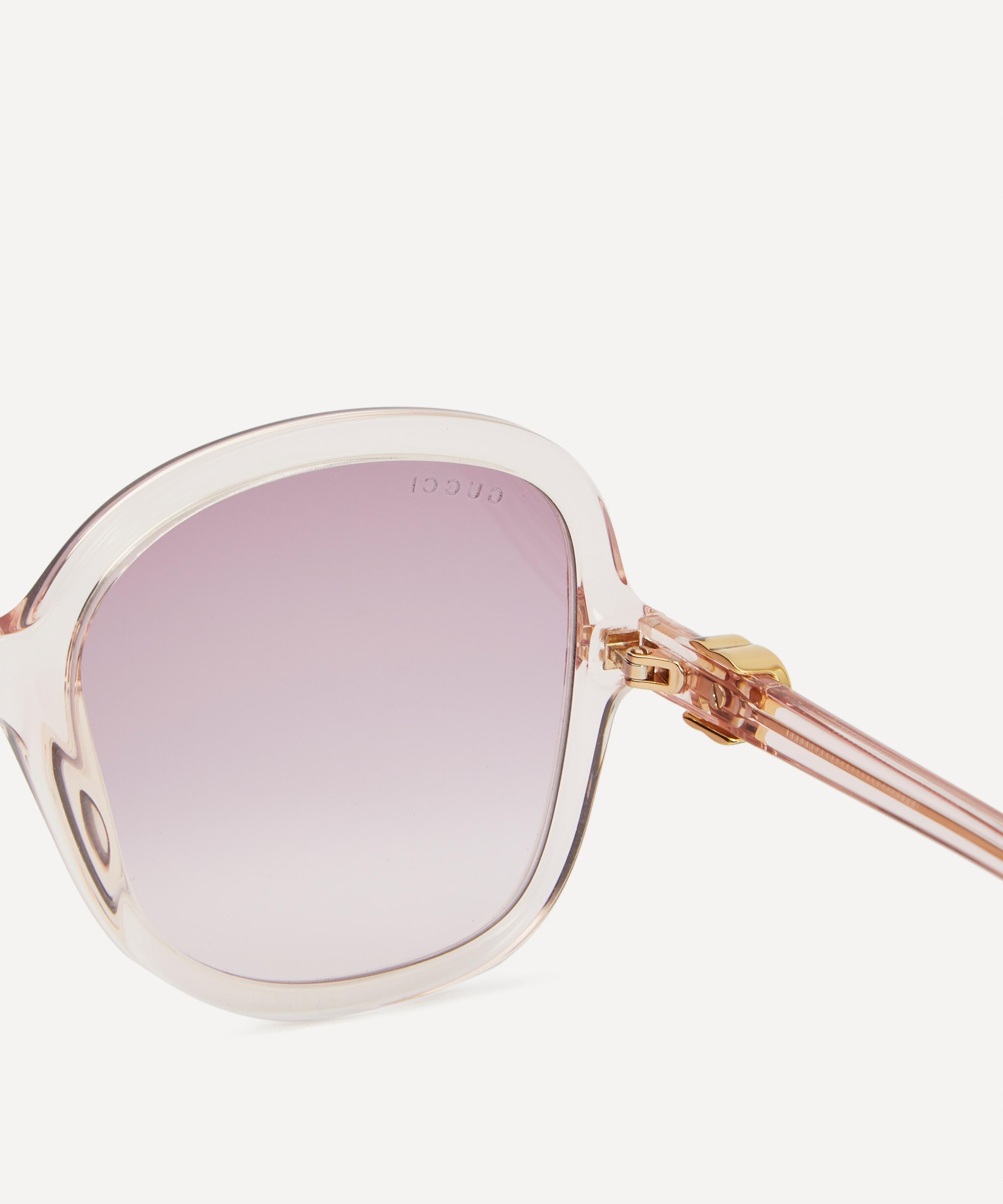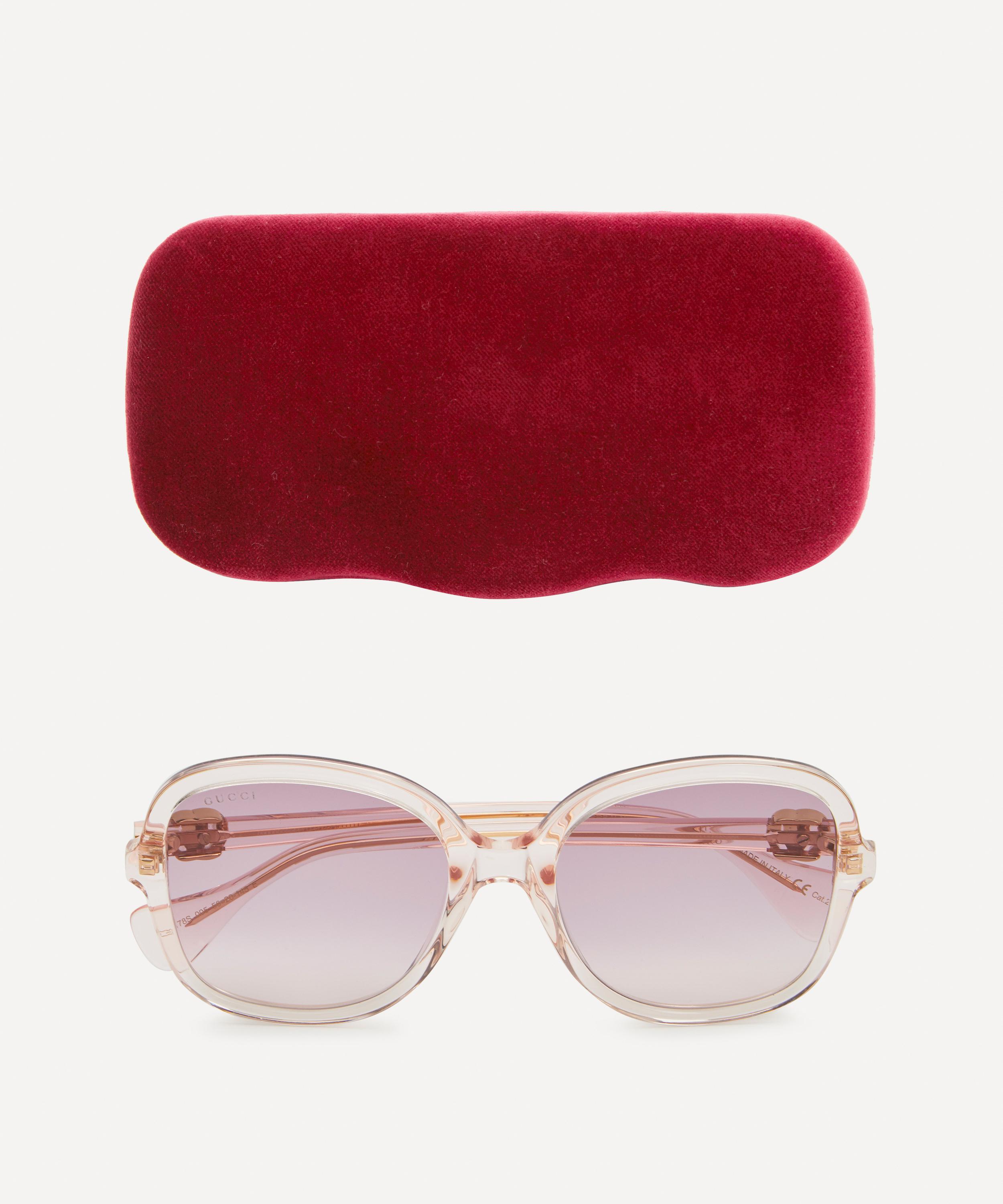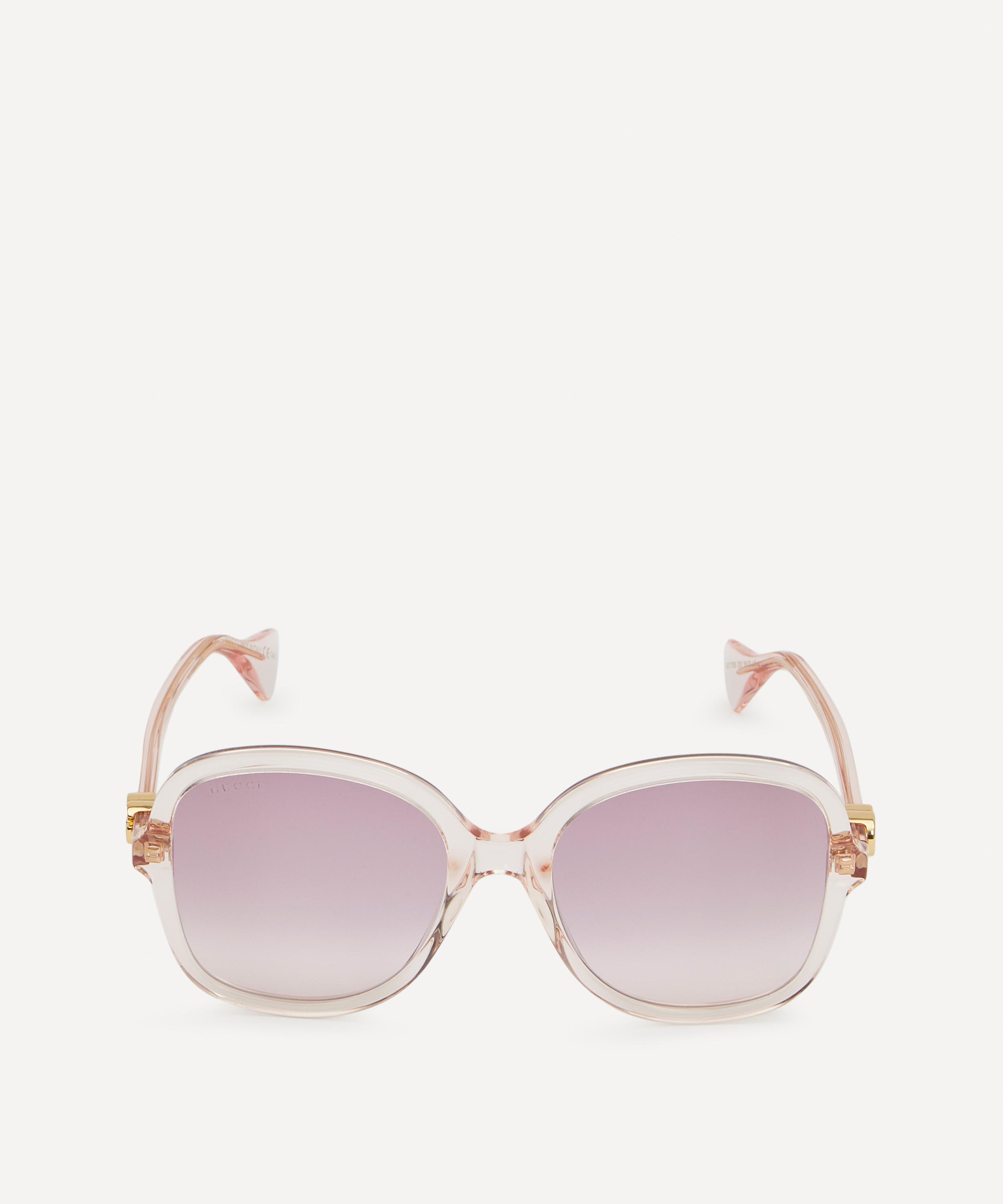 Blending retro allure and modern sophistication, these sunglasses are crafted from clear acetate to an oversized, round-frame silhouette. Hallmarked with a signature GG plaque at the temples, they are fitted with striking pink lenses for a playful mood.