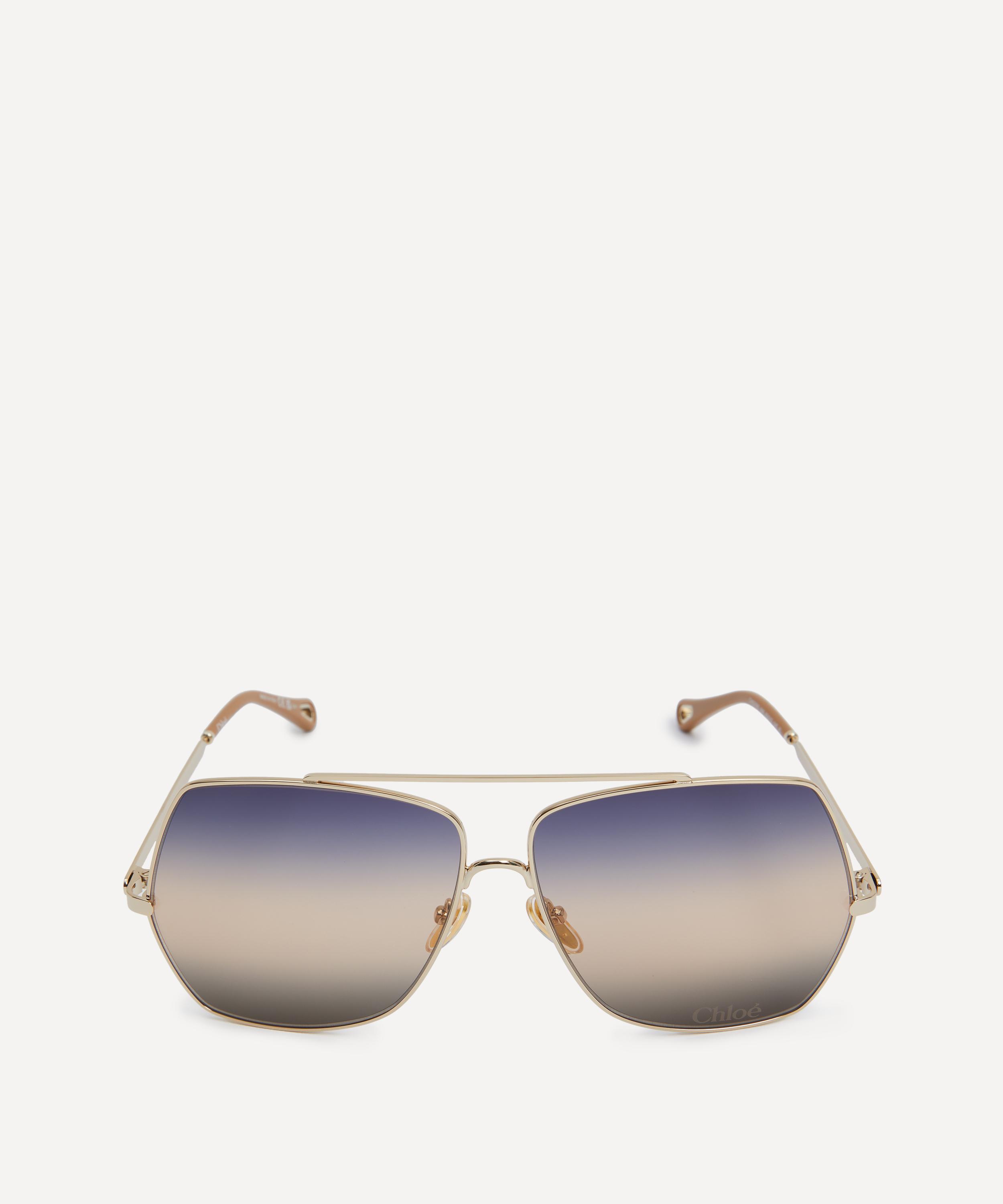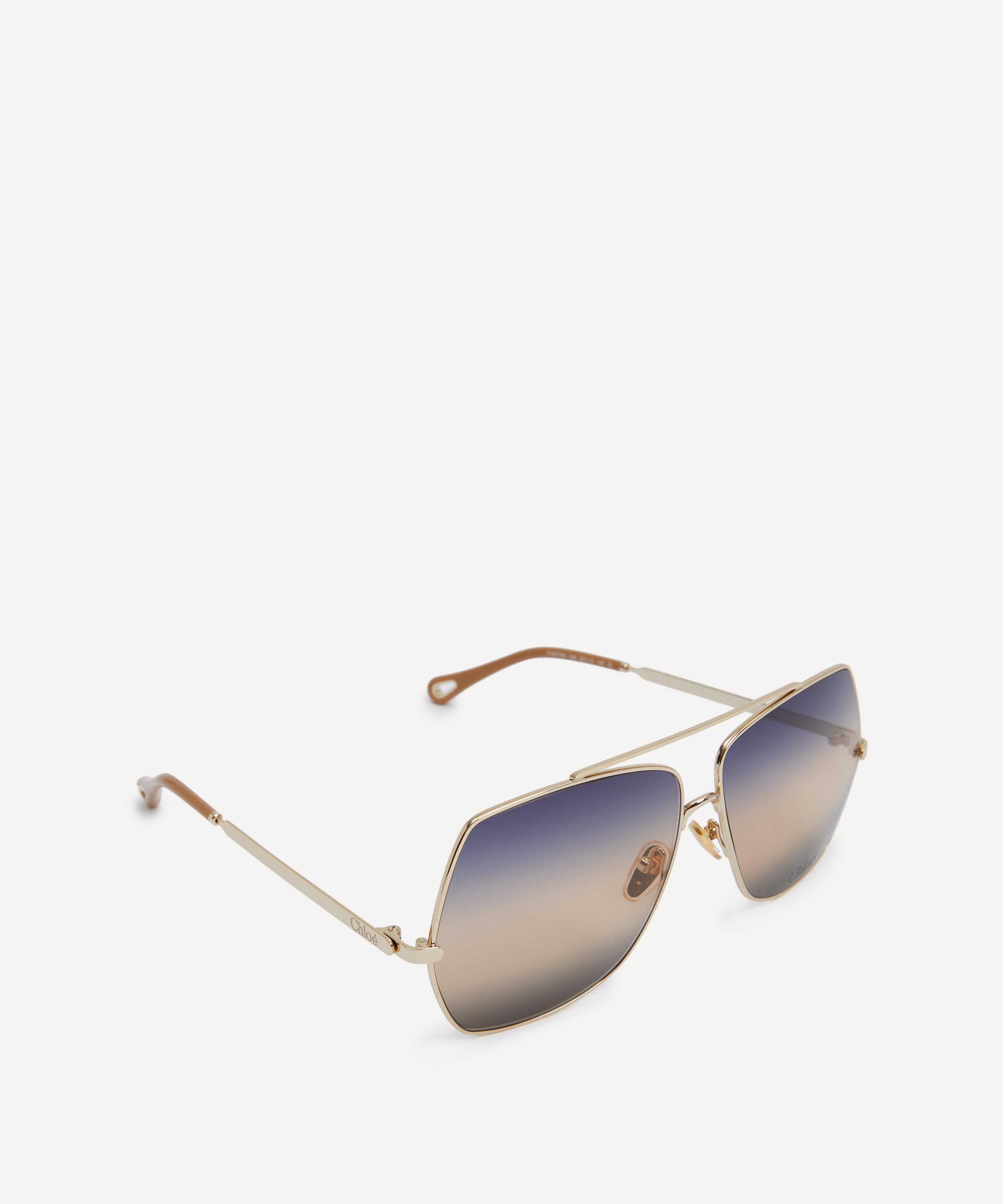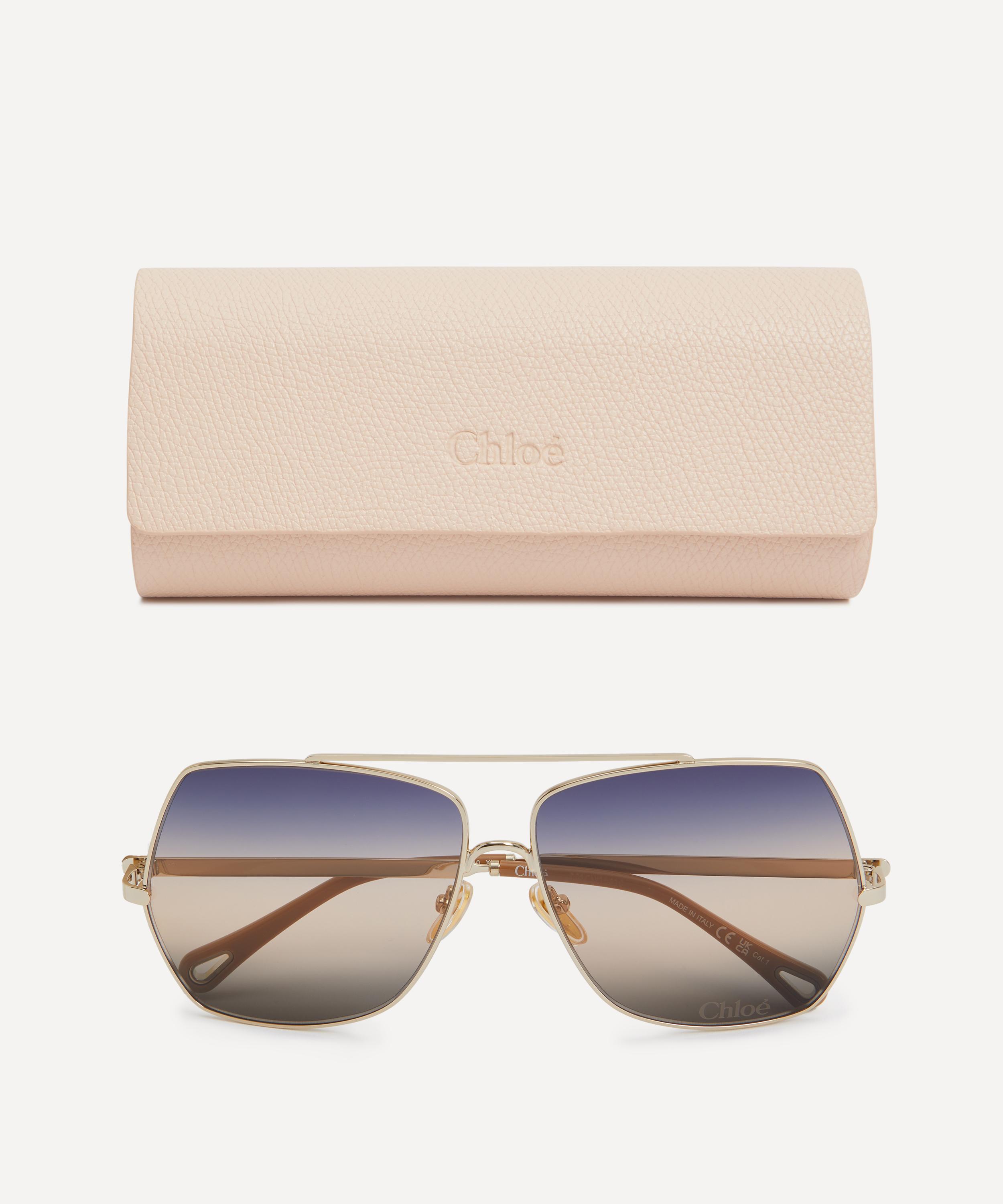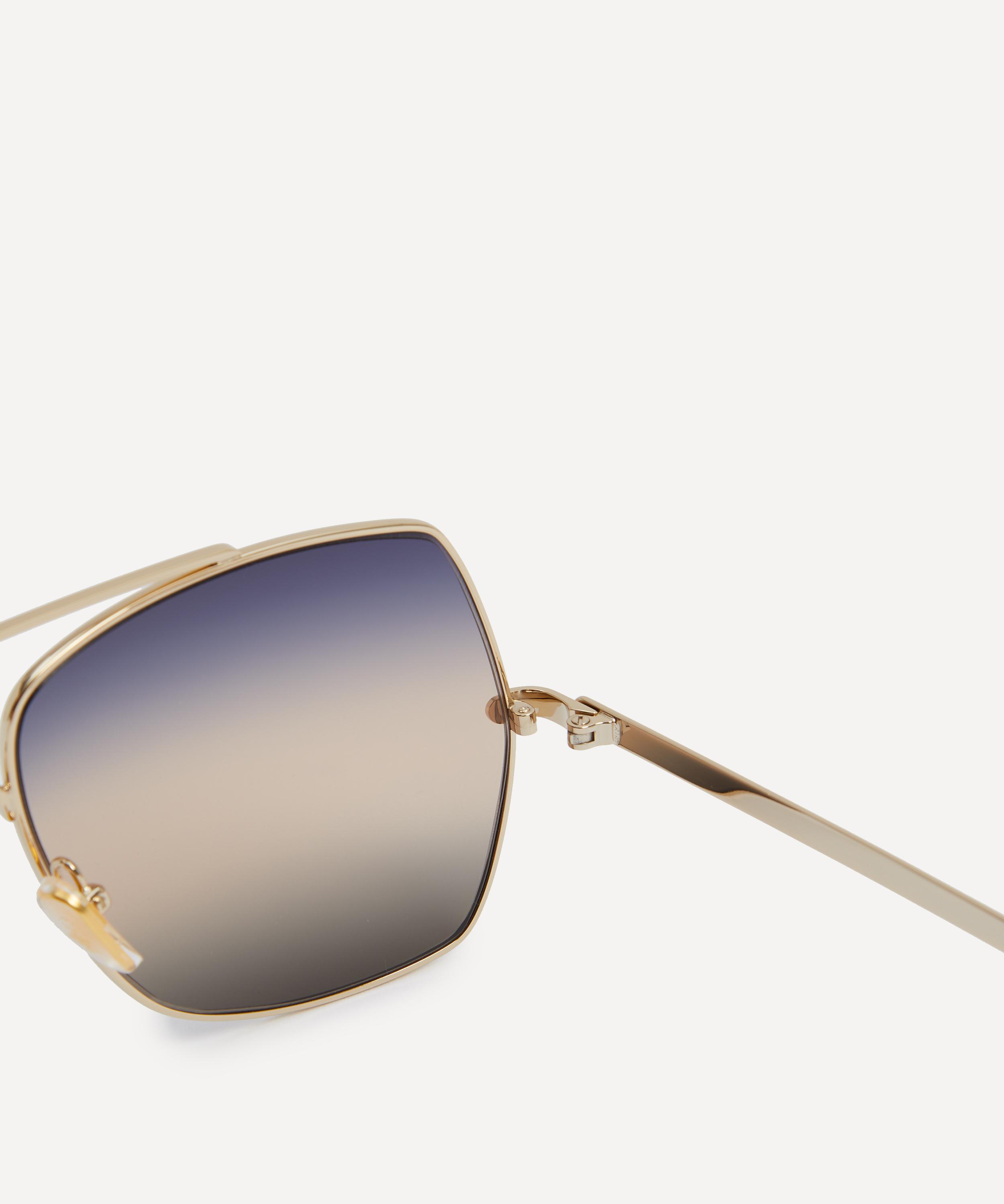 Designed for a sleek square frame, these sunglasses boast a timeless gold-tone colourway, and are complete with a double nose bridge and blue gradient lenses that further accentuate the style's glamorous, vintage flair.