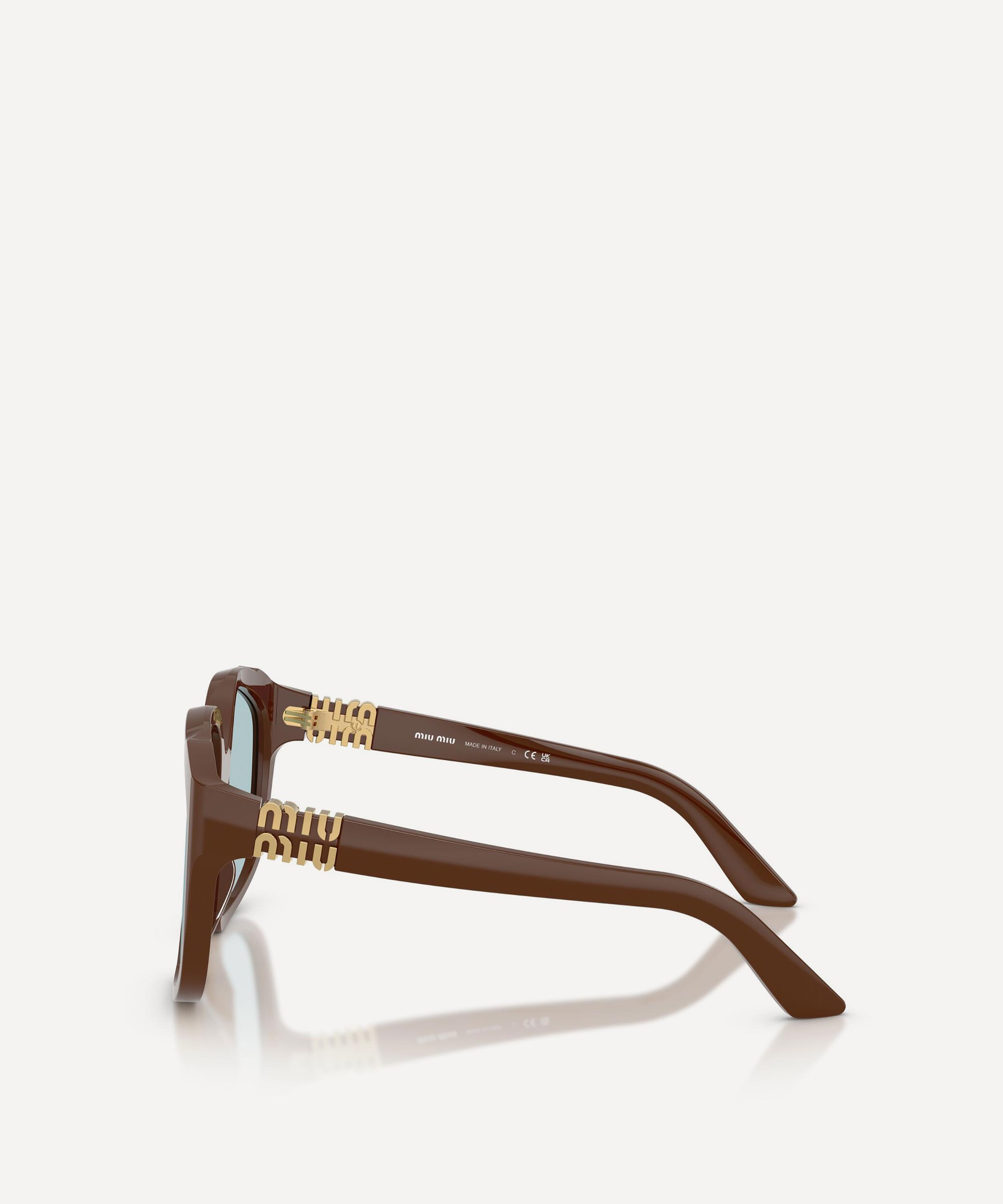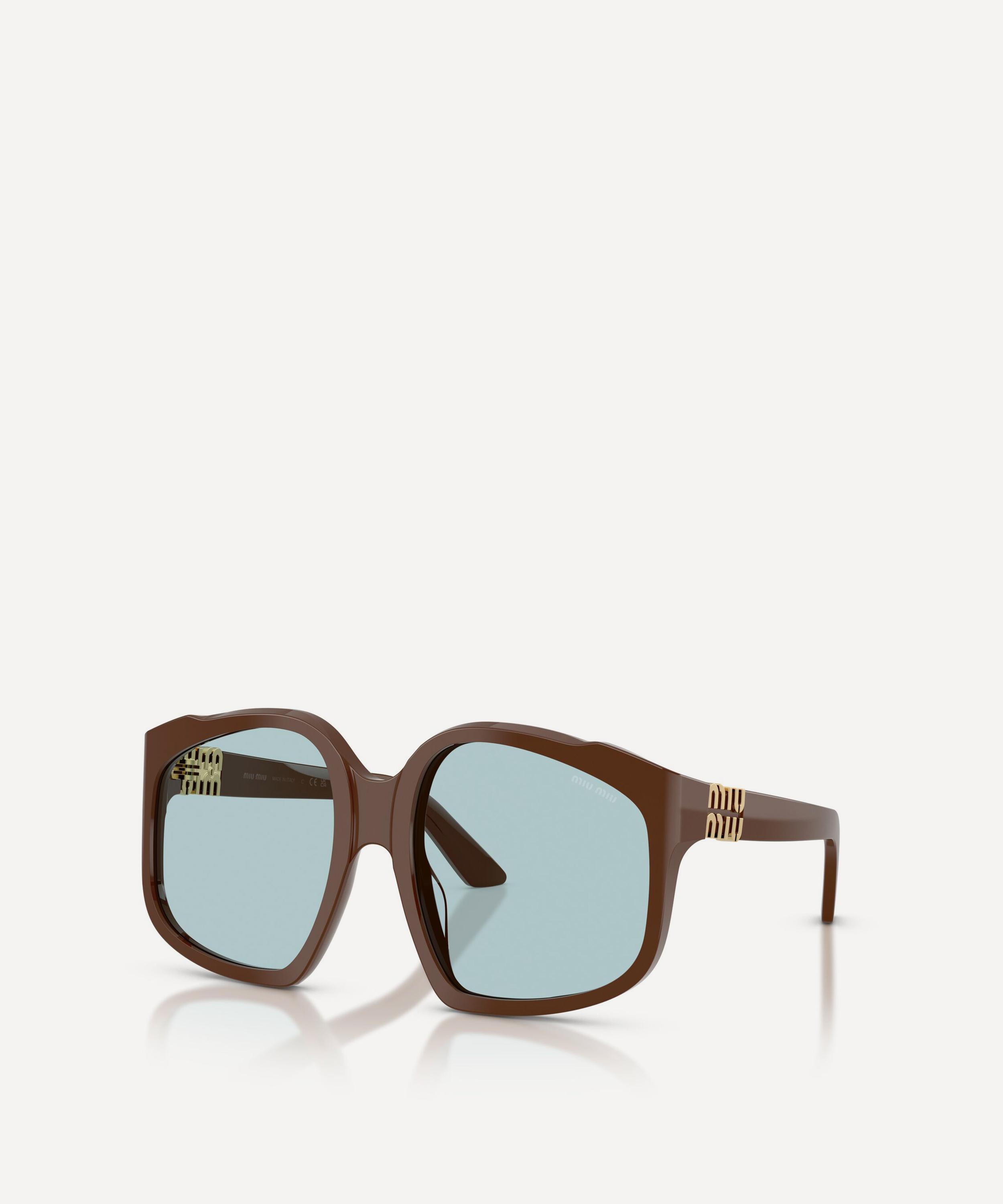 Heighten the impact of any attire with these square sunglasses from Miu Miu. Expertly crafted from brown acetate to create a statement pair that instantly draws the eye, these oversized sunnies are fitted with a comfortable saddle nose bridge and large, light-blue lenses to shade and protect your eyes from UV light. Complete with the signature branding at the temples, they make for an ultra-chic finish to your curated looks.