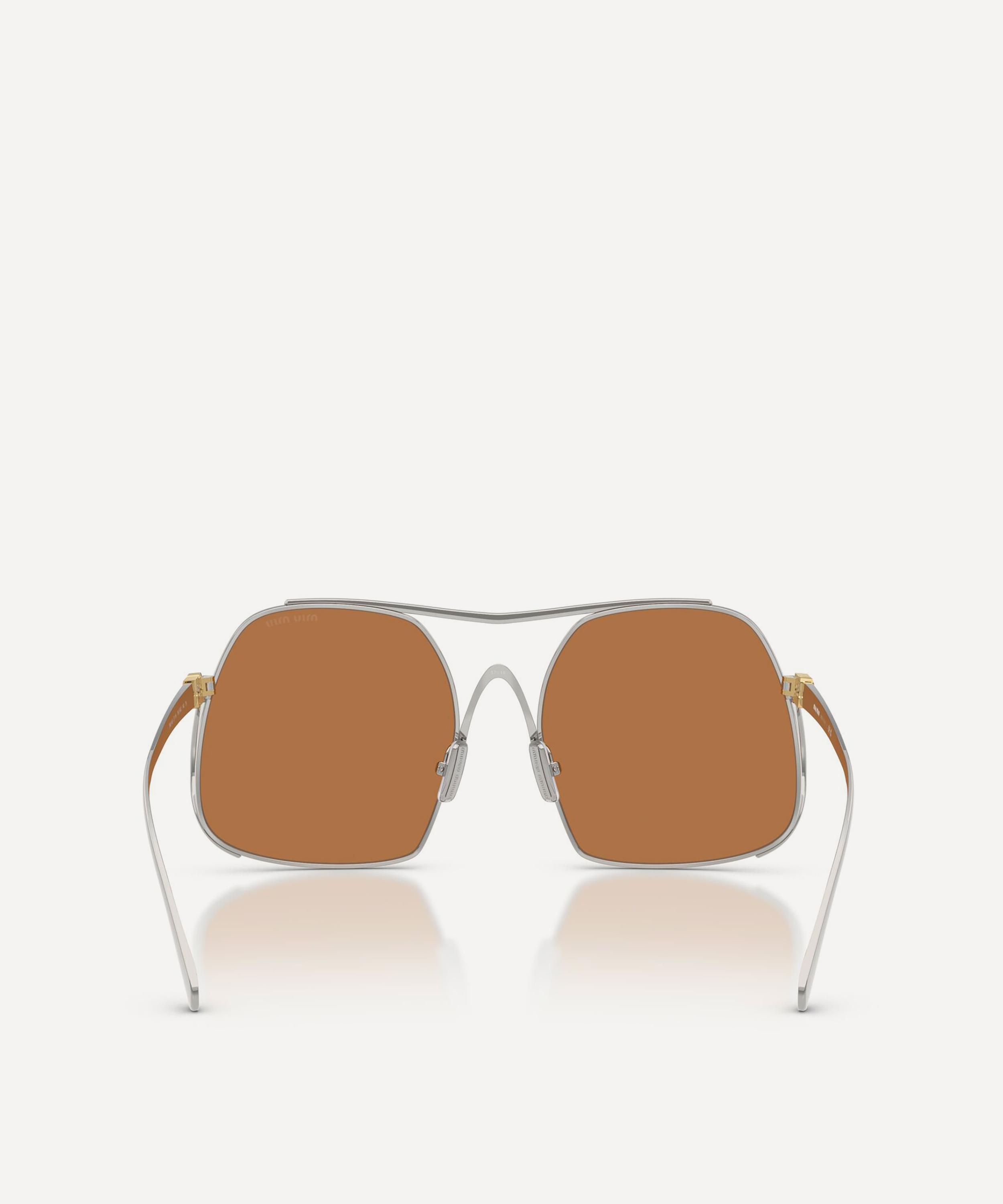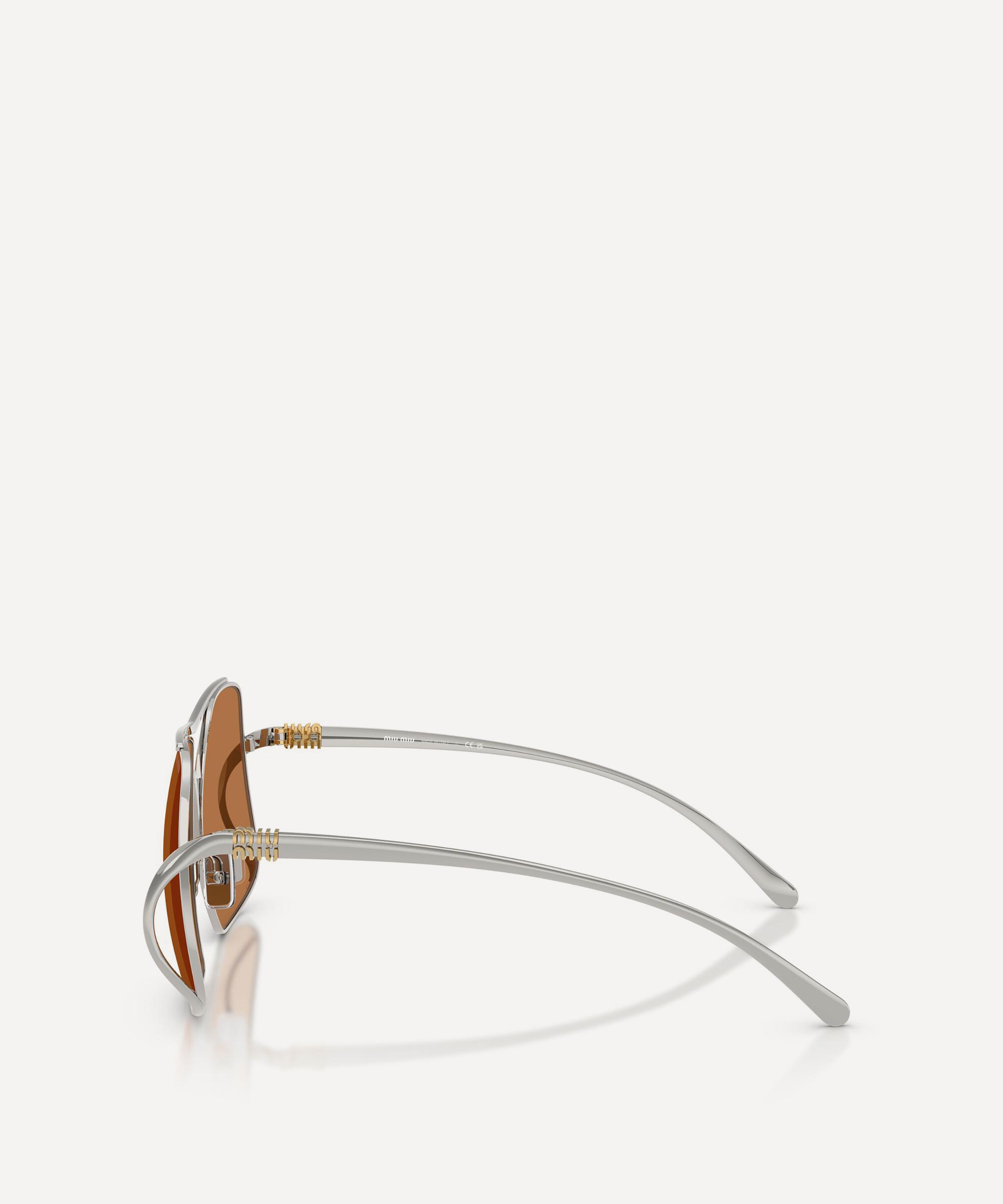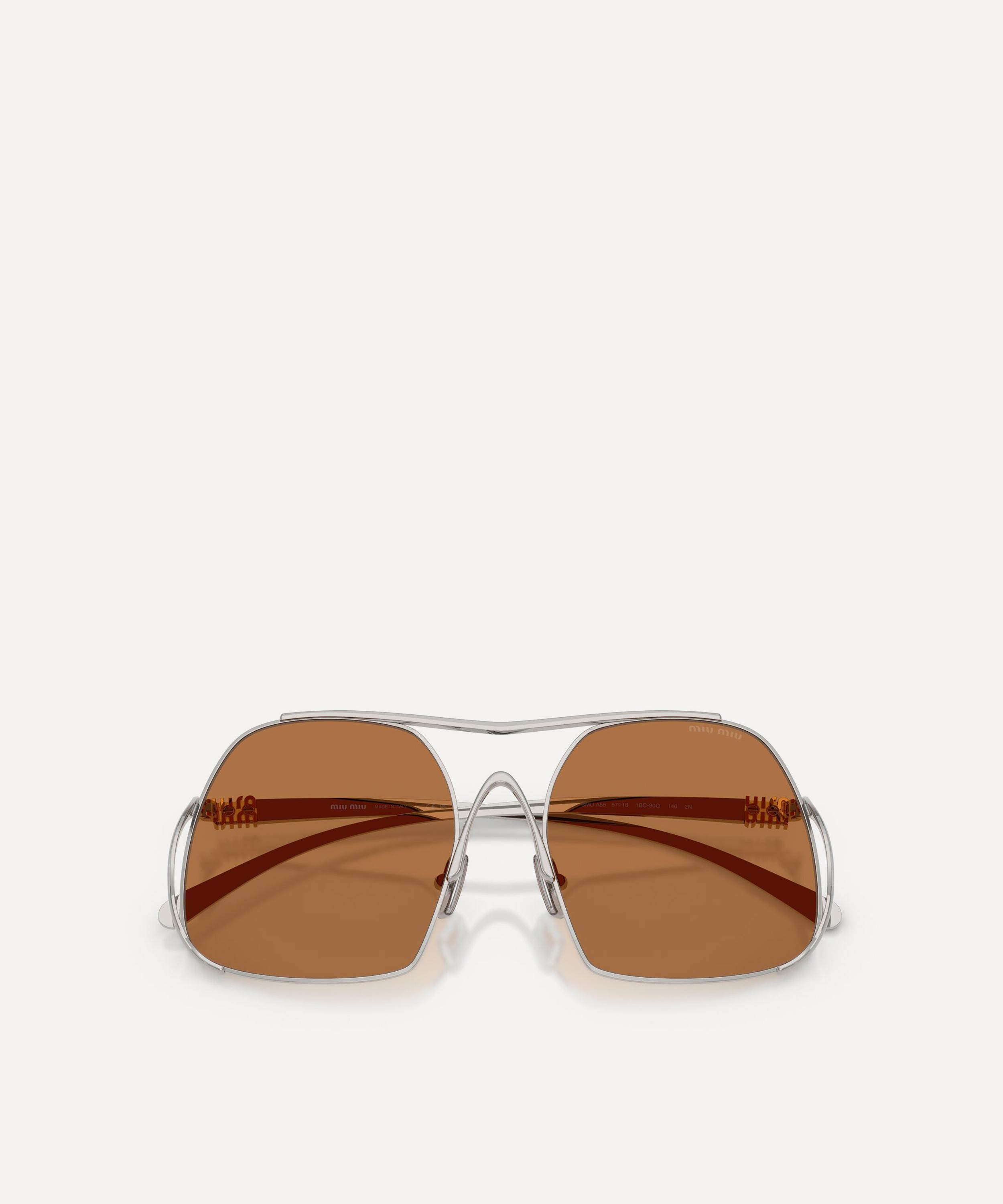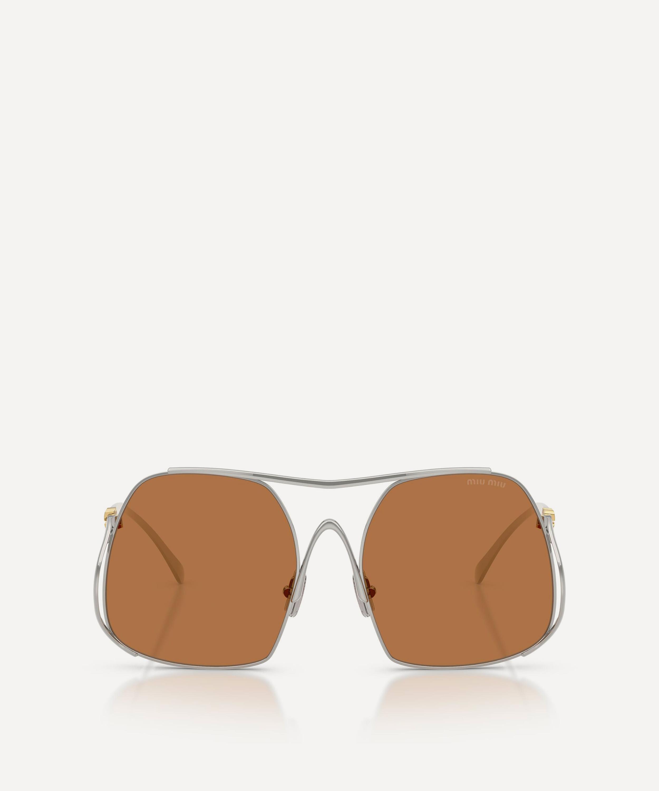Heighten the impact of any attire with these square sunglasses from Miu Miu. Expertly crafted from silver-tone metal, to create a statement pair that instantly draws the eye, these oversized sunnies are fitted with adjustable nose pads and tinted lenses to shade and protect your eyes from UV light. Complete with a decorative top bar and the signature branding at the temples, they make for an ultra-chic finish to your curated looks.